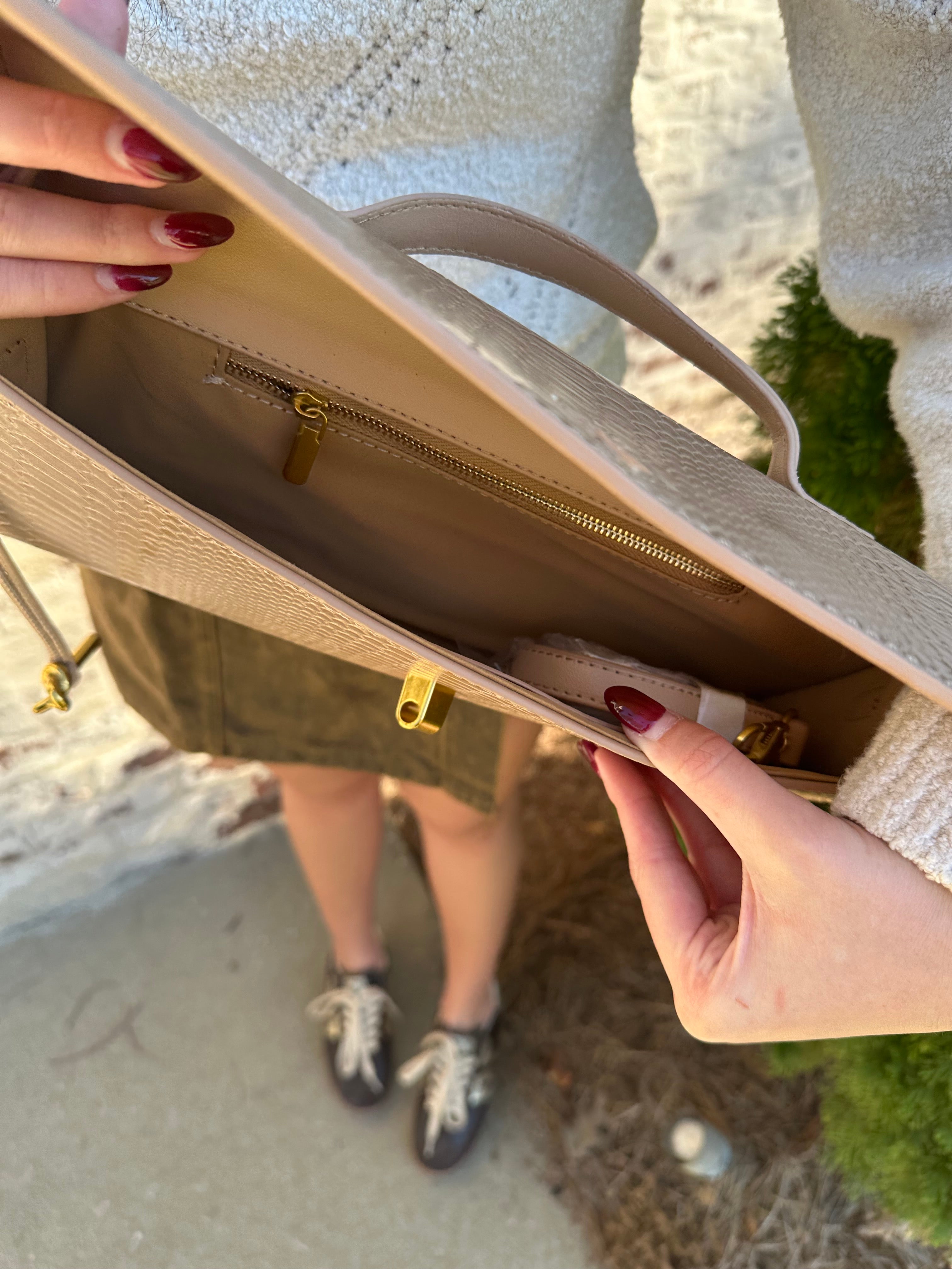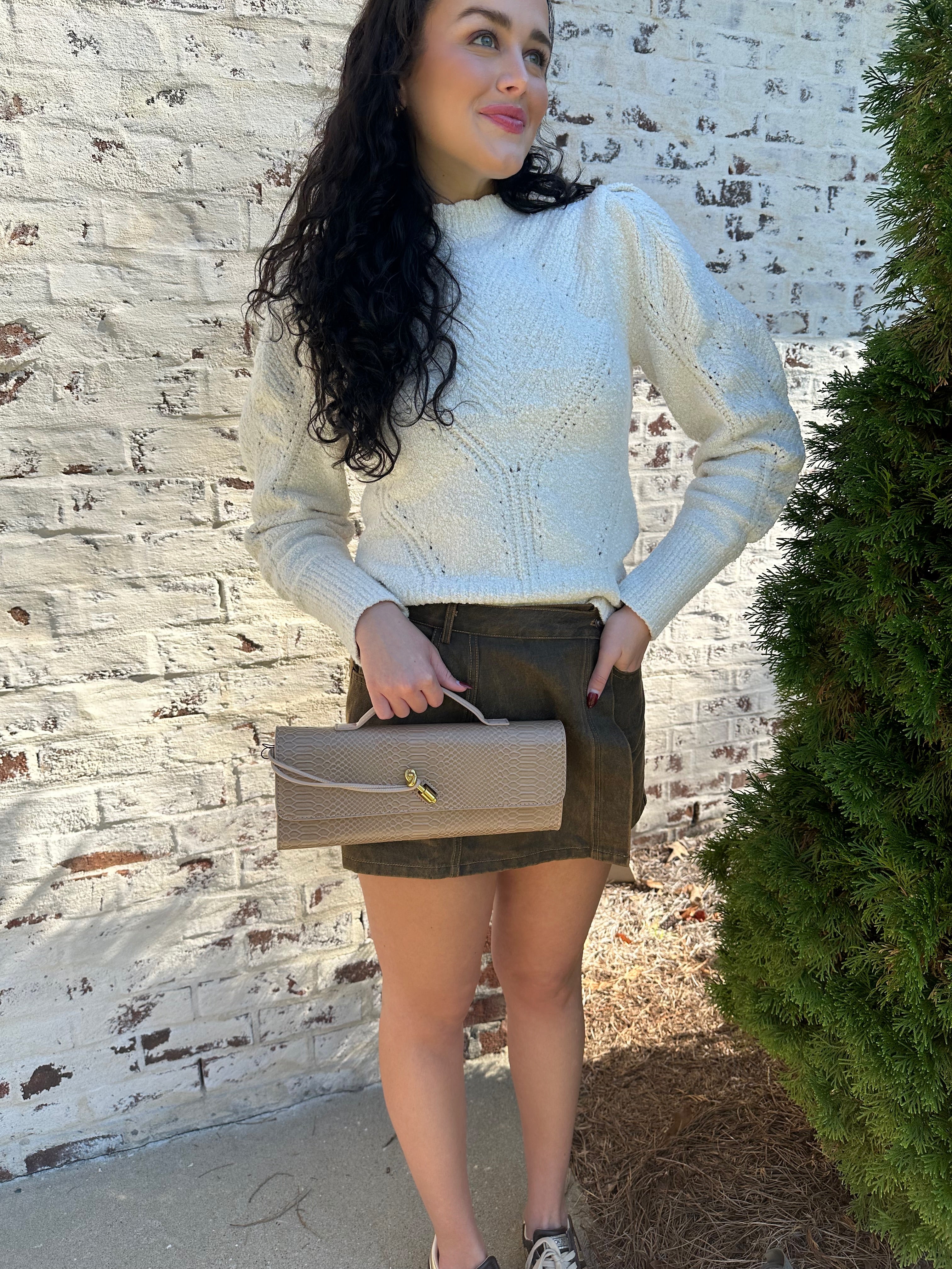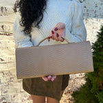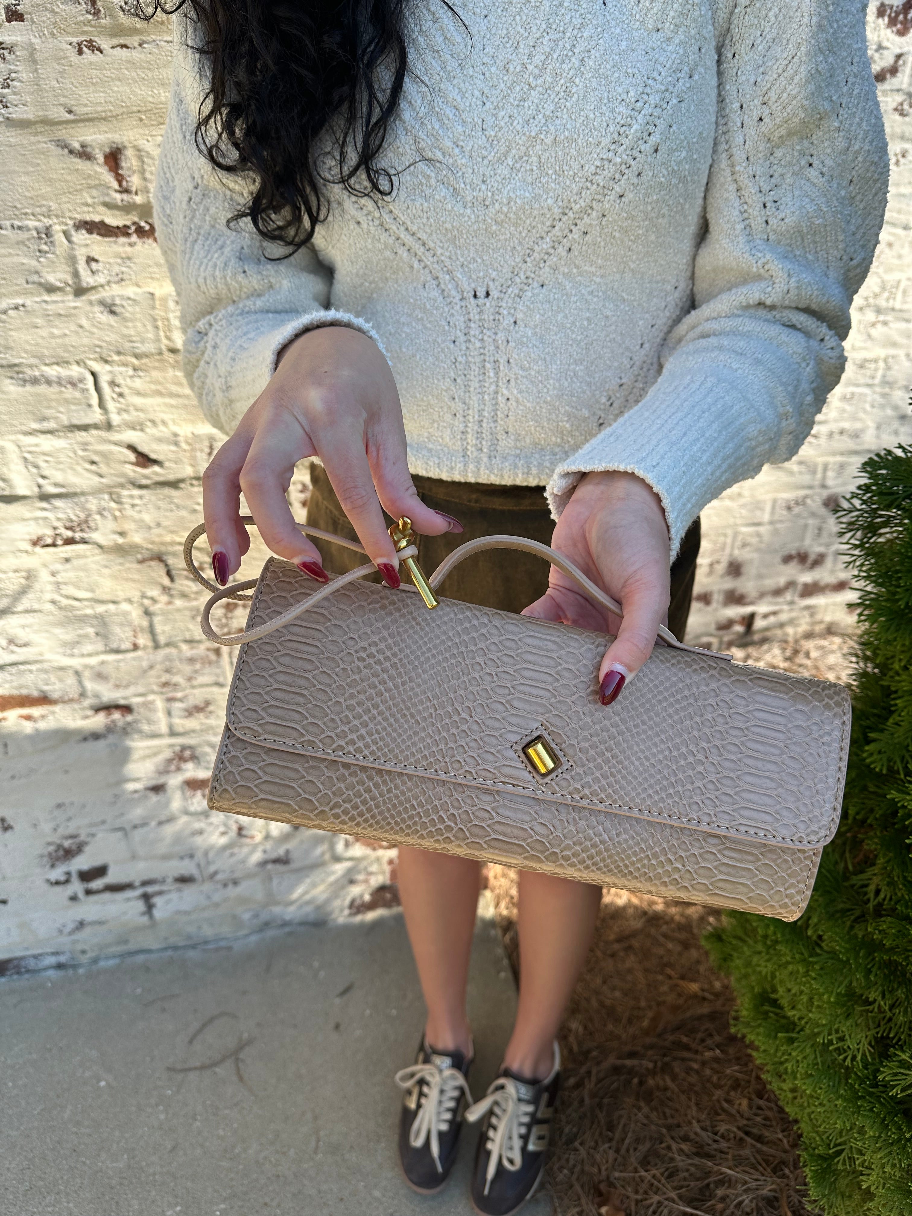 Make a statement with the Andi Crocodile Long Clutch in Beige. Featuring a rich crocodile texture and a sleek silhouette, this clutch offers both elegance and practicality. Designed with an optional strap, it can be carried as a graceful hand clutch or worn for hands-free convenience. Its roomy interior is perfect for keeping your essentials organized, making it an ideal accessory for any occasion where style meets function.