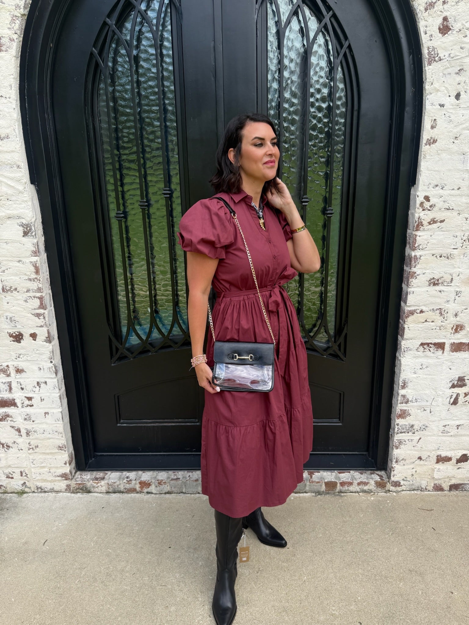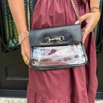 Stay stylish and secure at game days and concerts with this Clear Purse in Black. Its transparent design meets venue requirements for easy entry, while the sleek black trim adds a touch of sophistication. Lightweight and compact, it keeps your essentials visible and accessible, so you never miss a moment of the action. Perfect for hands-free fun without sacrificing fashion.