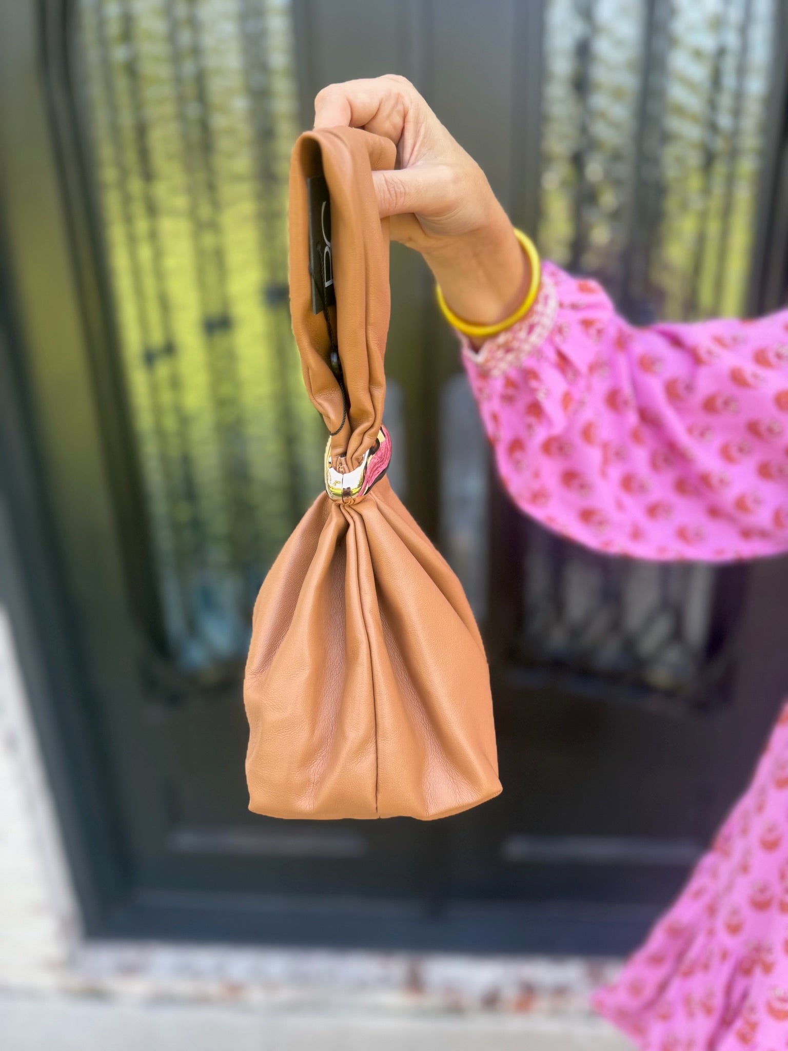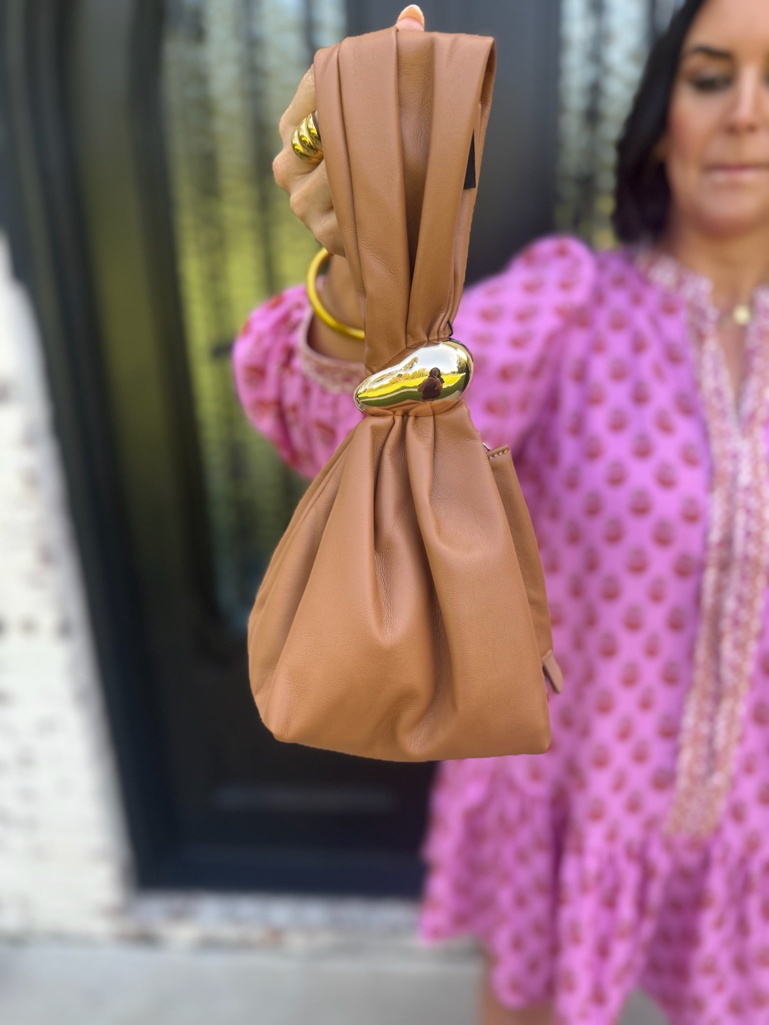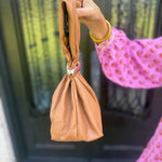 Make a stunning statement with this Tan Evening Bag featuring an exquisite gold accent. Crafted to complement your formal attire, its compact size holds essentials securely while enhancing your look with a touch of luxury. Perfect for evenings when elegance matters most, this bag is your ideal accessory to shine effortlessly.