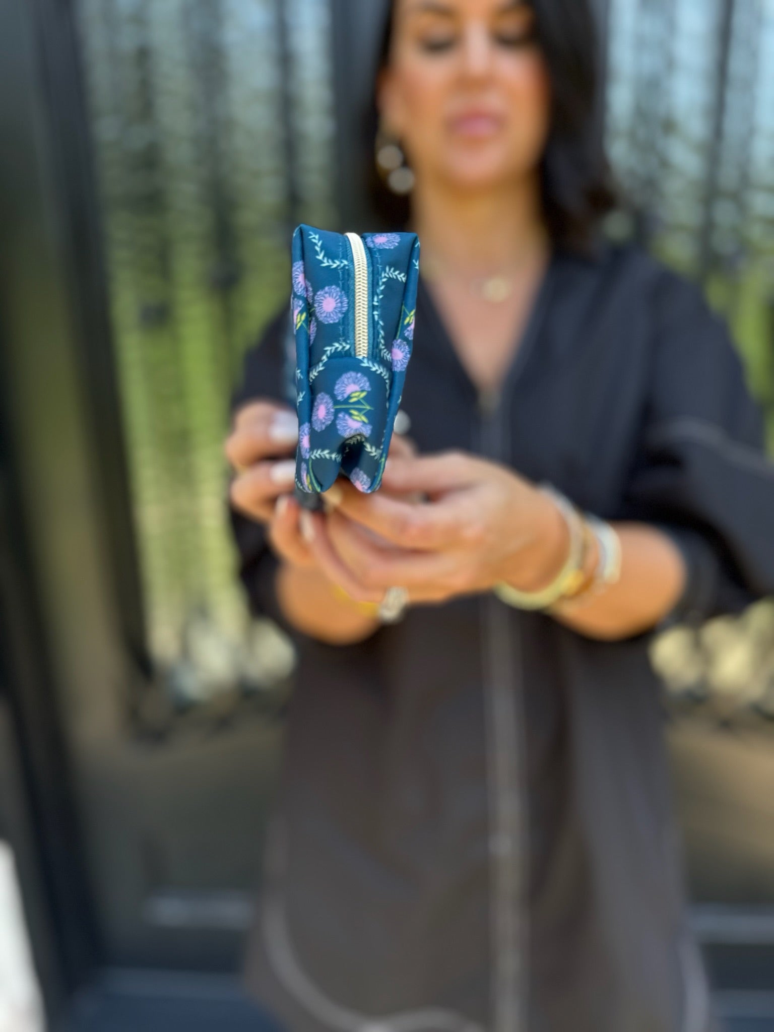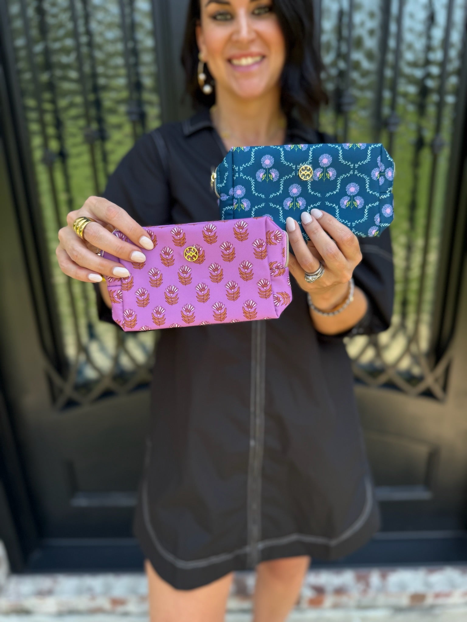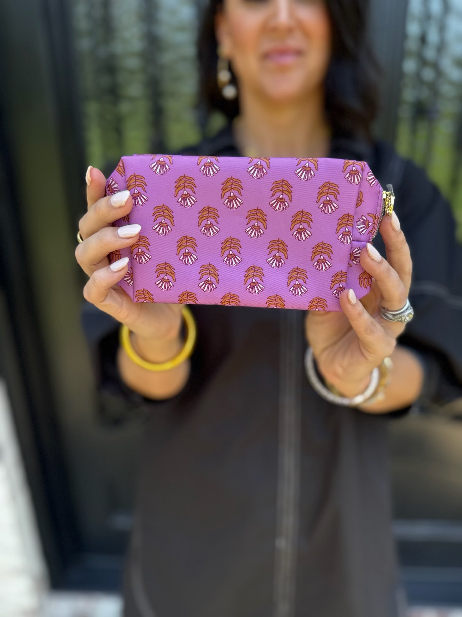 Keep your essentials organized in style with the Mary Square Let’s Face It Mini Bag in Pink Floral and Venice Vines. This compact toiletry bag combines charming floral patterns with a sleek design, making it perfect for travel or daily use. Durable and easy to carry, it ensures your cosmetics and necessities are neatly stored and easily accessible wherever you go. Elevate your routine with this beautiful, practical accessory that blends convenience with a touch of elegance.