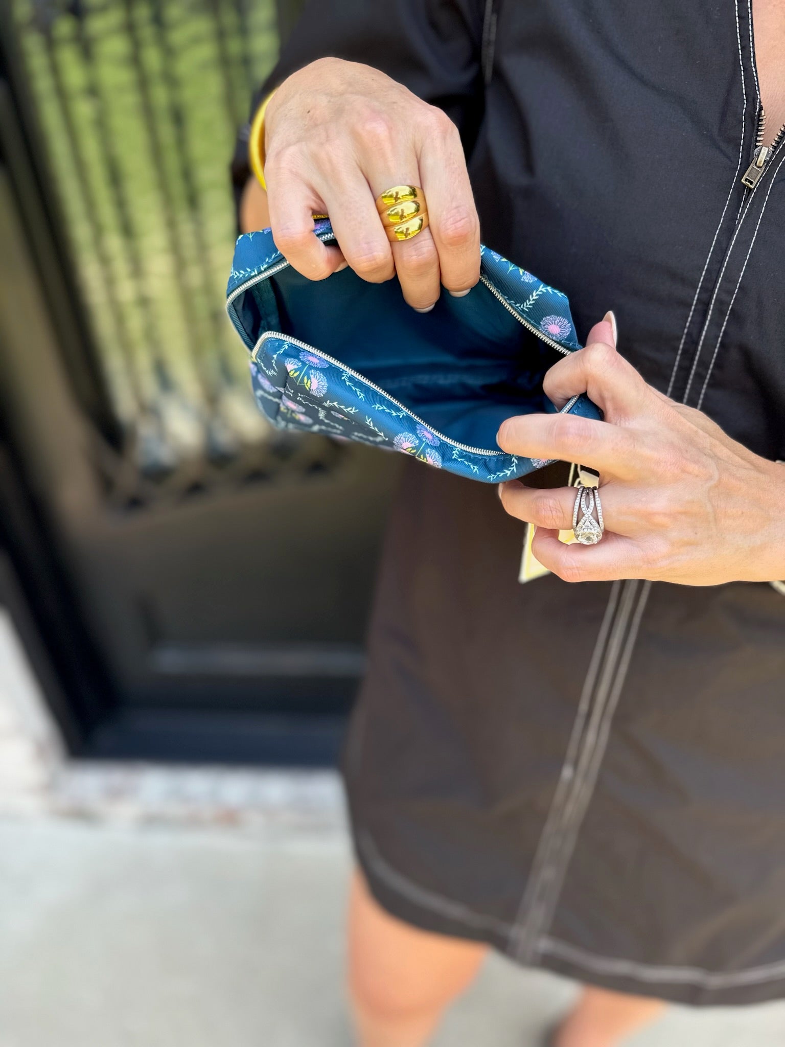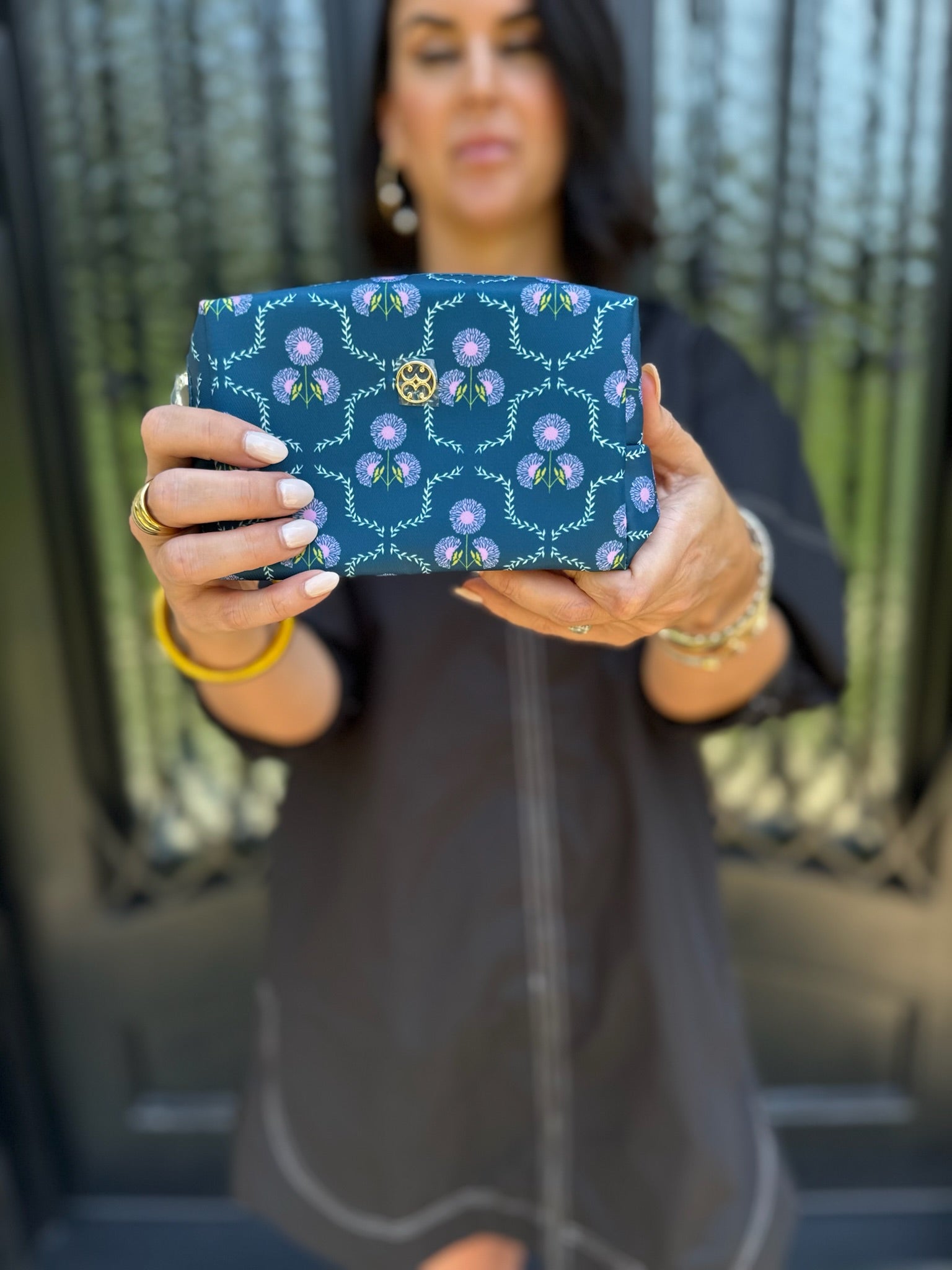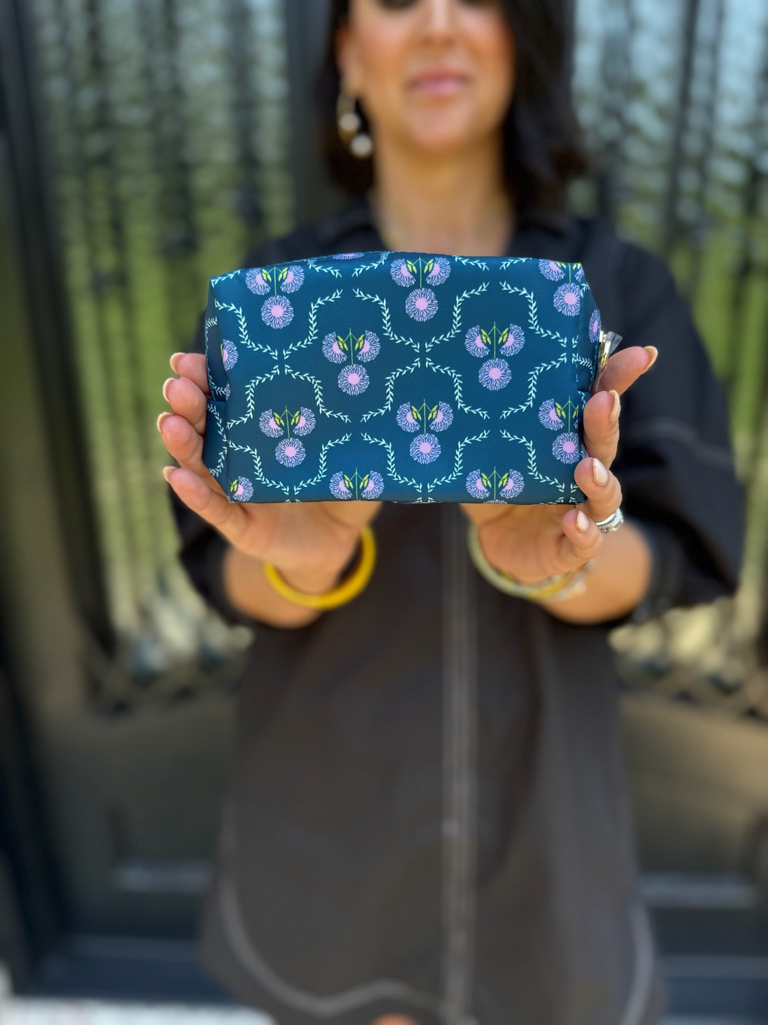 Keep your essentials organized in style with the Mary Square Let’s Face It Mini Bag in Pink Floral and Venice Vines. This compact toiletry bag combines charming floral patterns with a sleek design, making it perfect for travel or daily use. Durable and easy to carry, it ensures your cosmetics and necessities are neatly stored and easily accessible wherever you go. Elevate your routine with this beautiful, practical accessory that blends convenience with a touch of elegance.