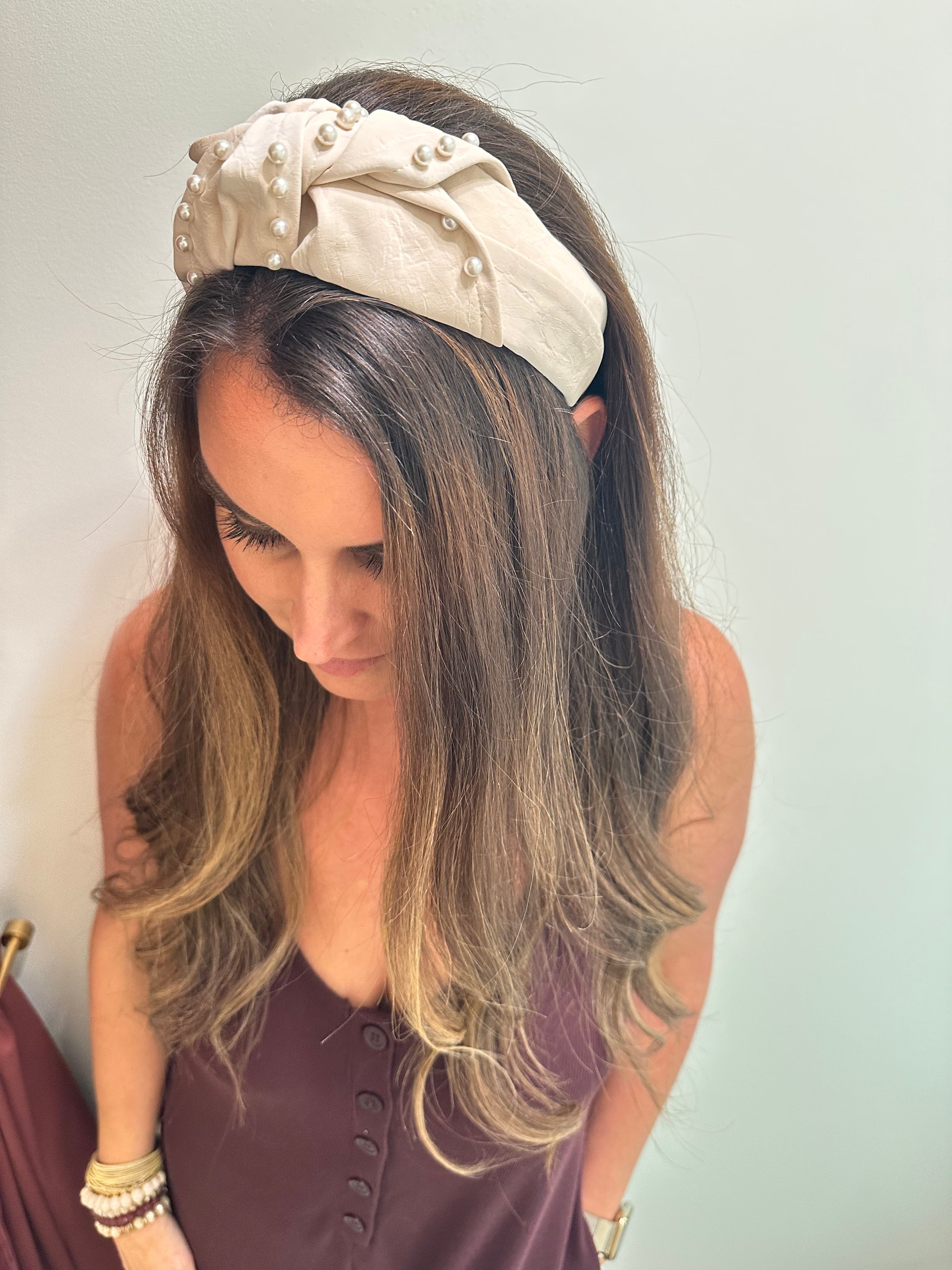 Glam up any look with this stylish Pearl Leather Headband. This natural leather headband is accented with beautiful pearls for a classically chic look. Its comfortable fit ensures all-day luxury - perfect for an elegant night out, or everyday sophistication.