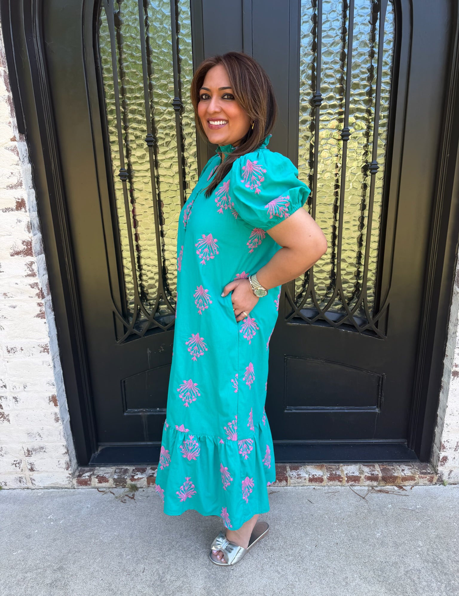 Molly Mock Neck Puff Sleeve in Mint