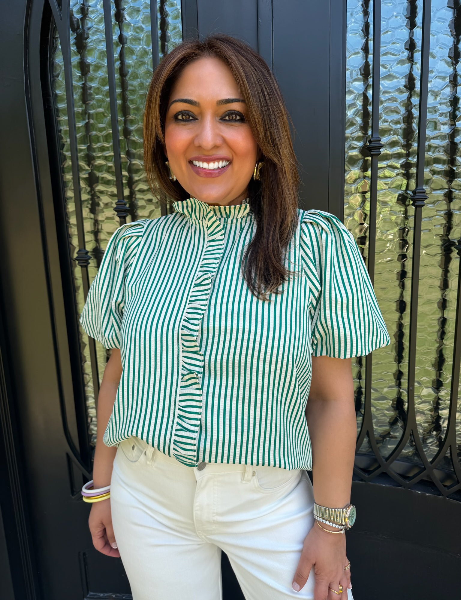 Tammy Puff Sleeve V Neck In Mint