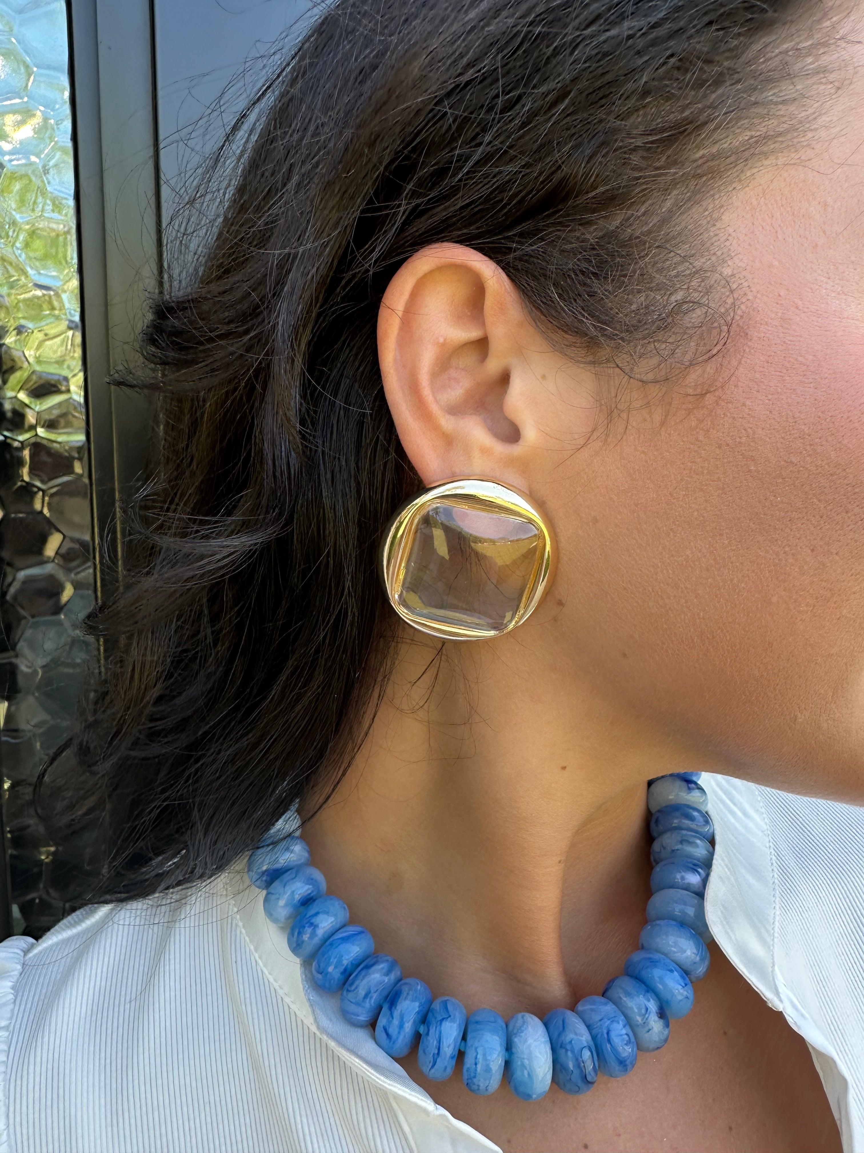 Clear & Gold Big Square Ice Earrings