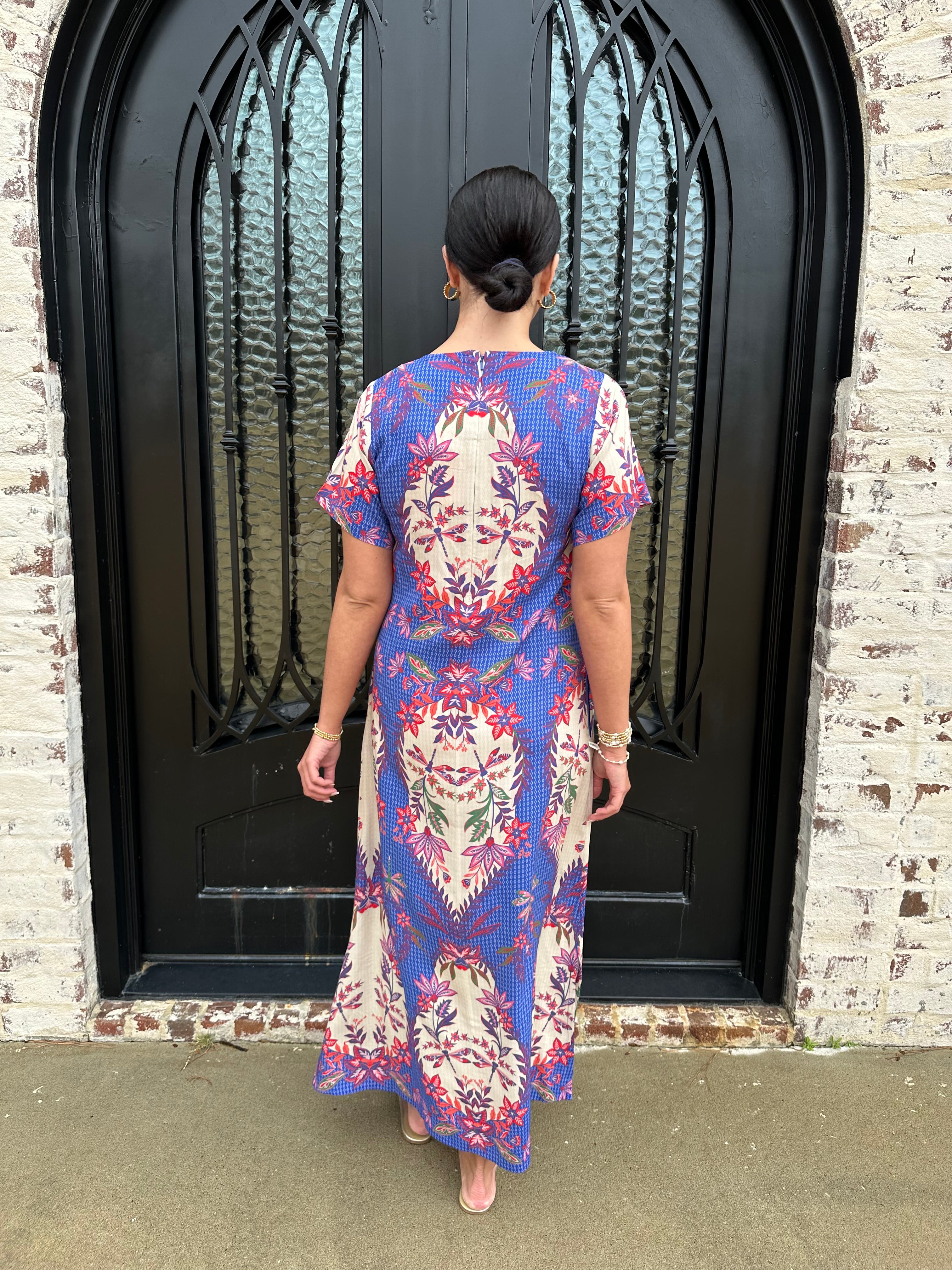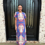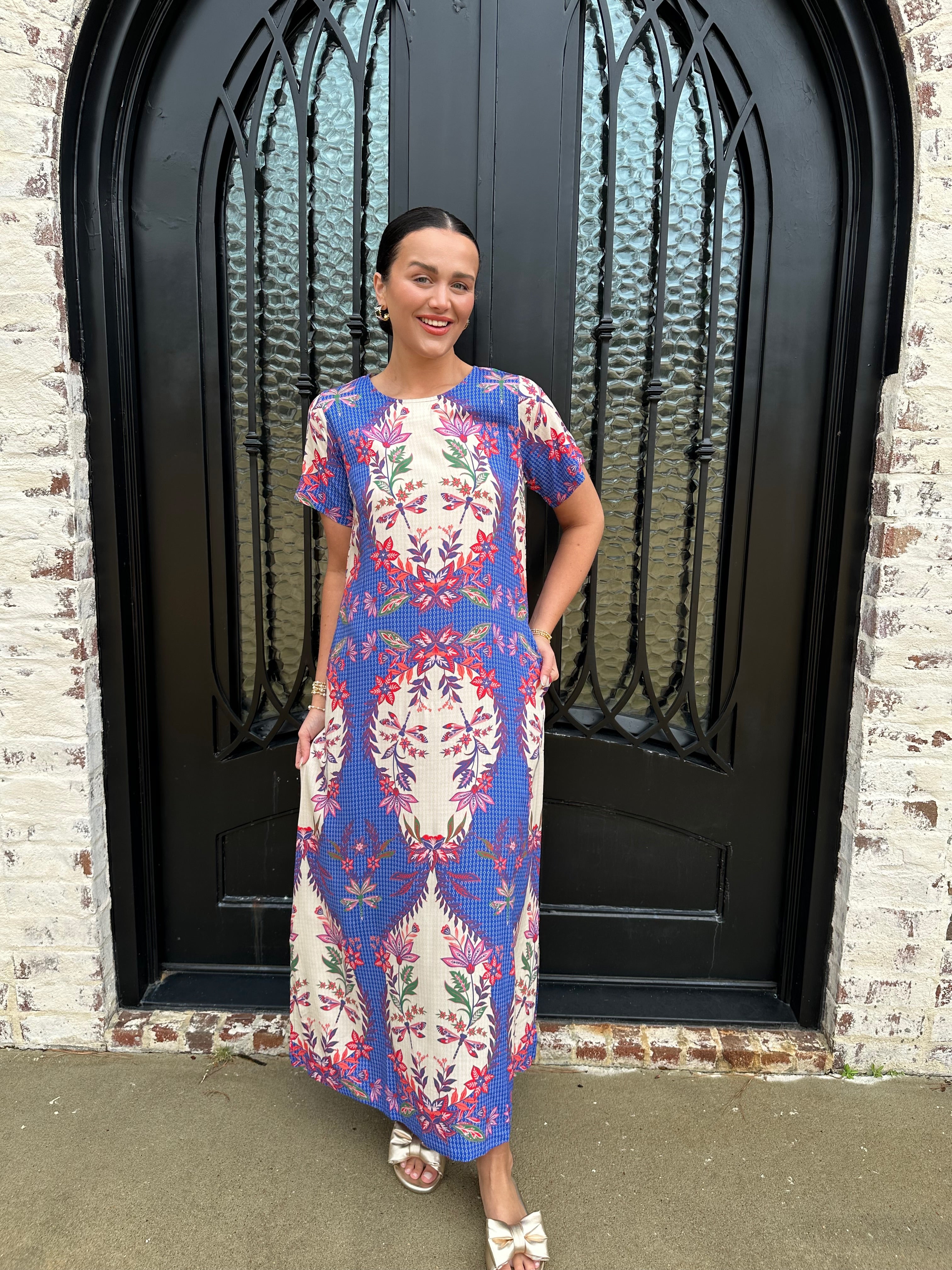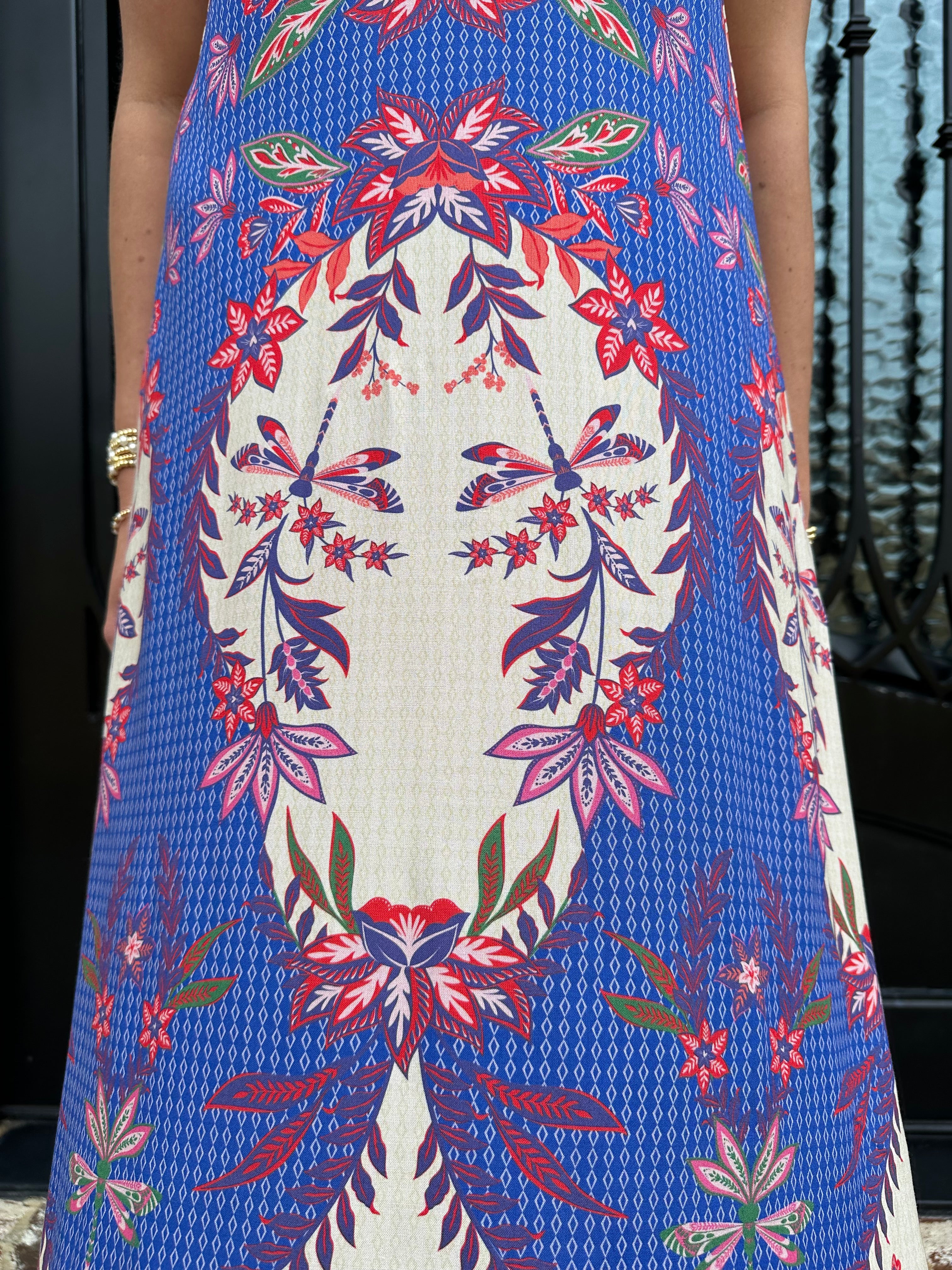 Embrace elegance and whimsy with the Diana Maxi Dress, adorned with enchanting dragonflies in vibrant blue, pink, and white. The flattering design features a convenient zipper at the back, ensuring a perfect fit. Step into this dress and let your unique style take flight!