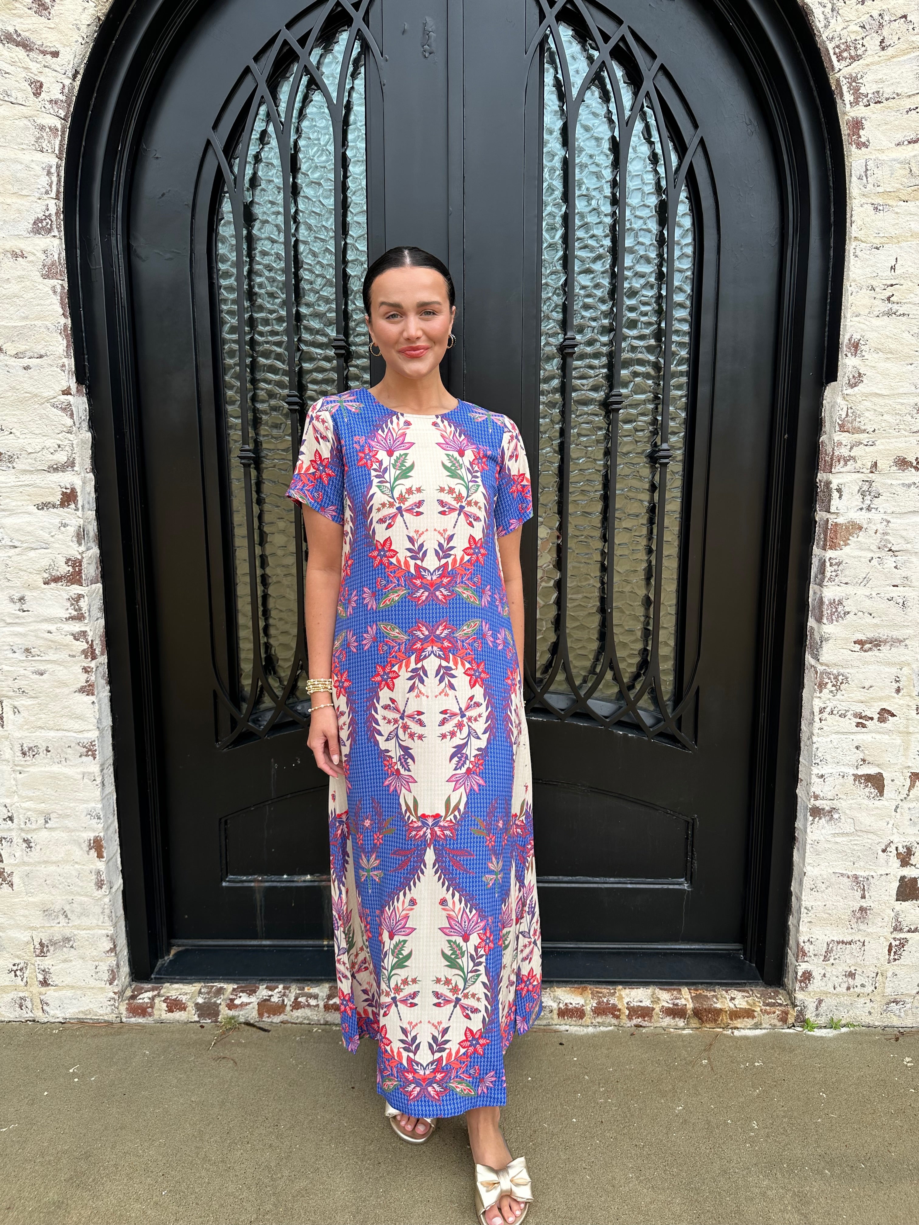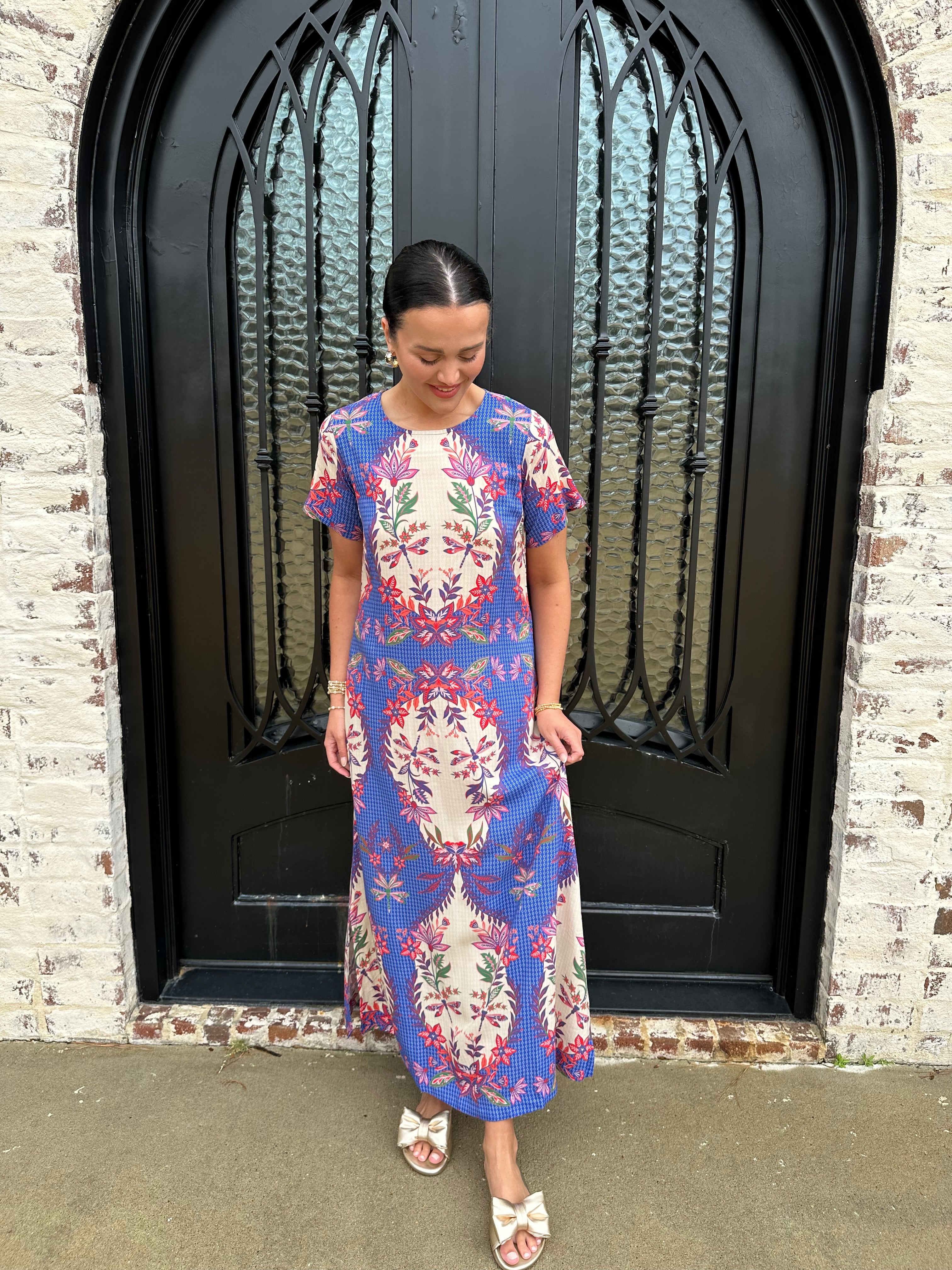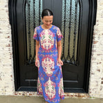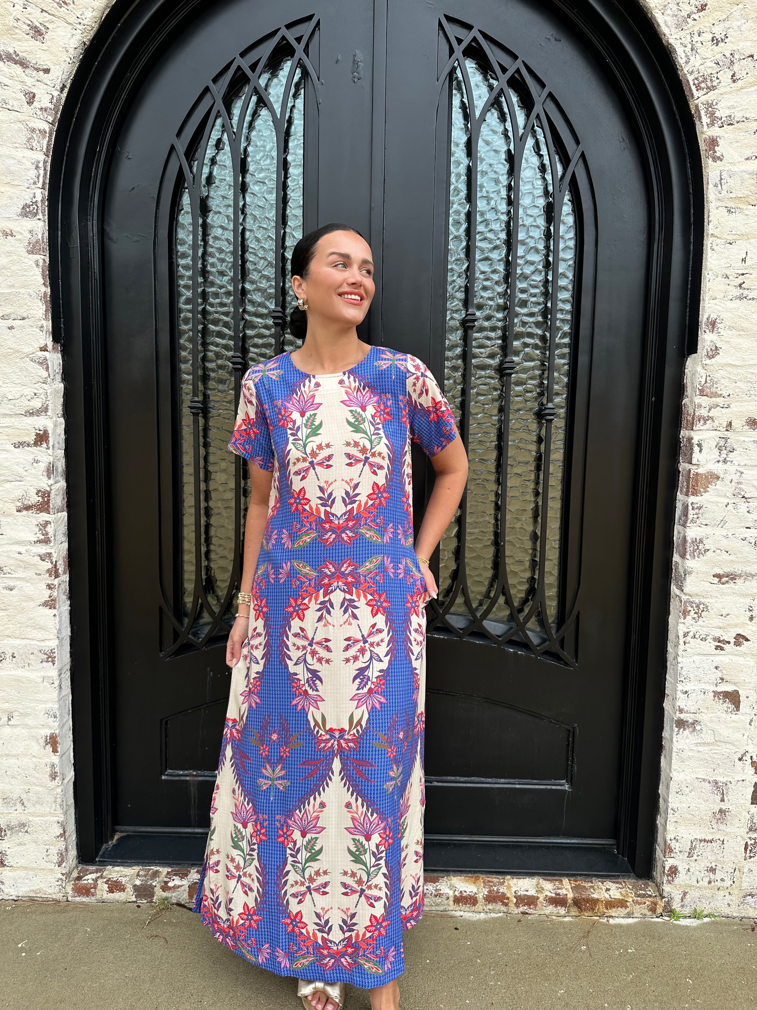 Embrace elegance and whimsy with the Diana Maxi Dress, adorned with enchanting dragonflies in vibrant blue, pink, and white. The flattering design features a convenient zipper at the back, ensuring a perfect fit. Step into this dress and let your unique style take flight!