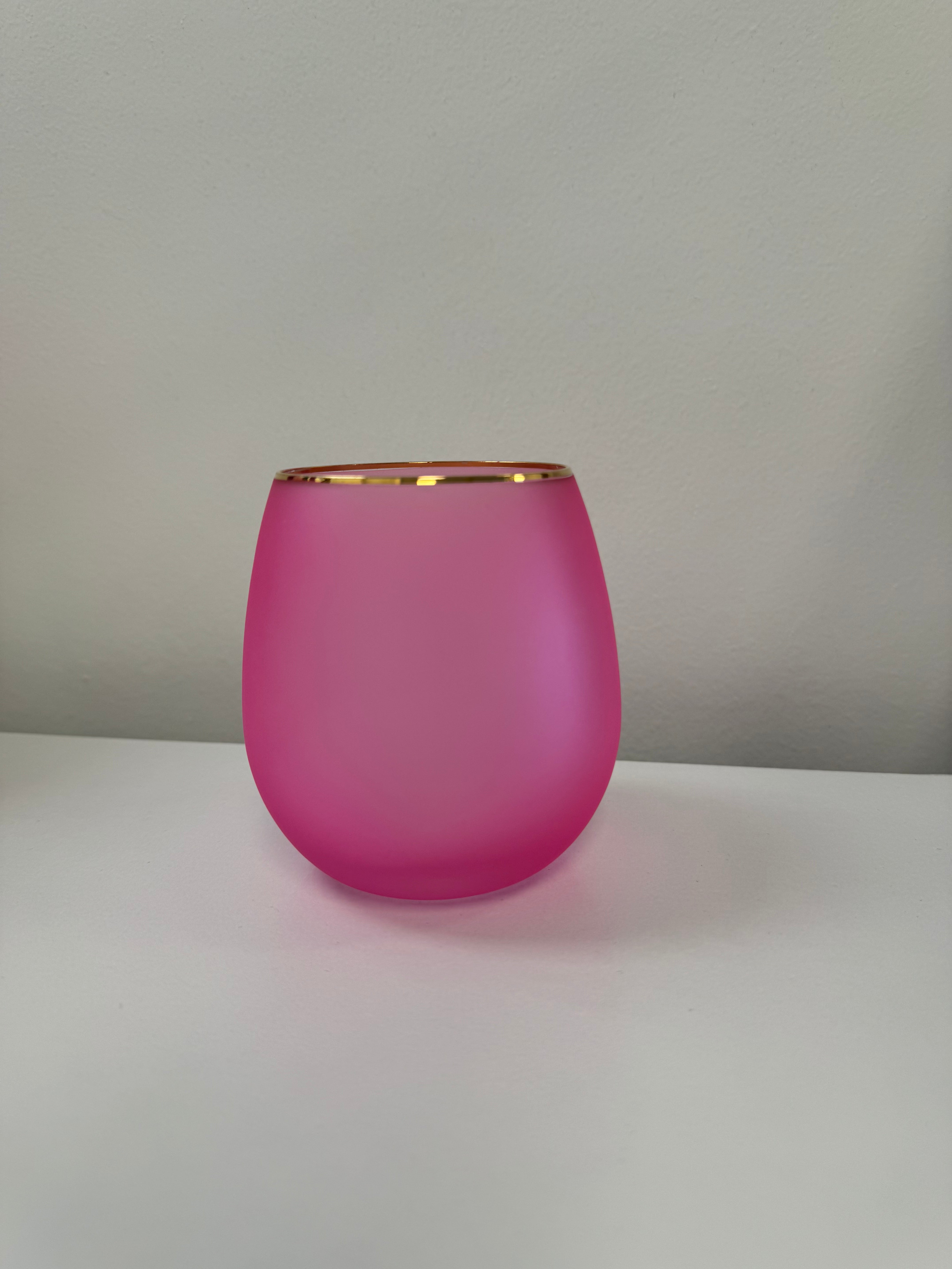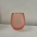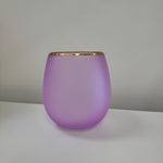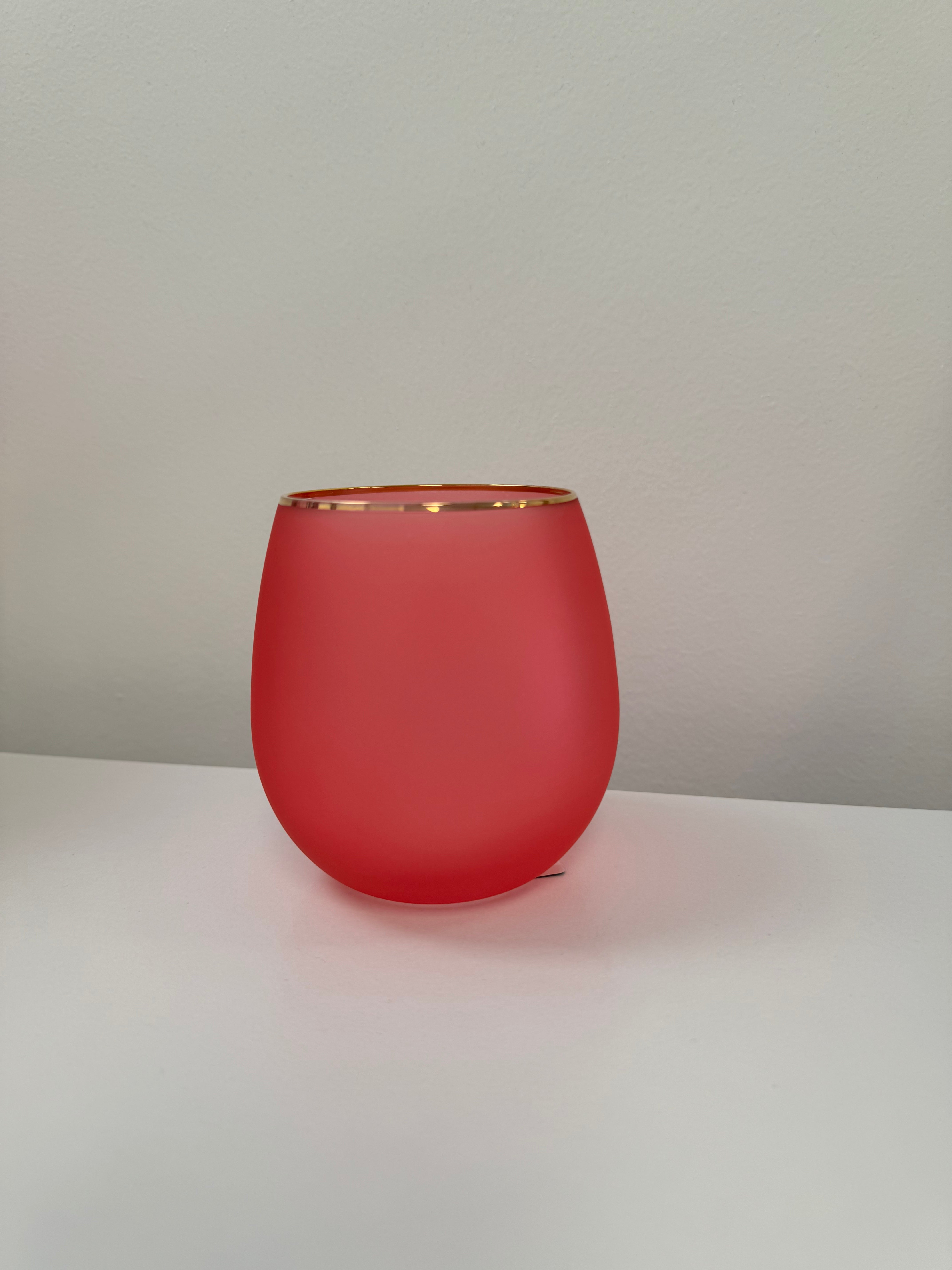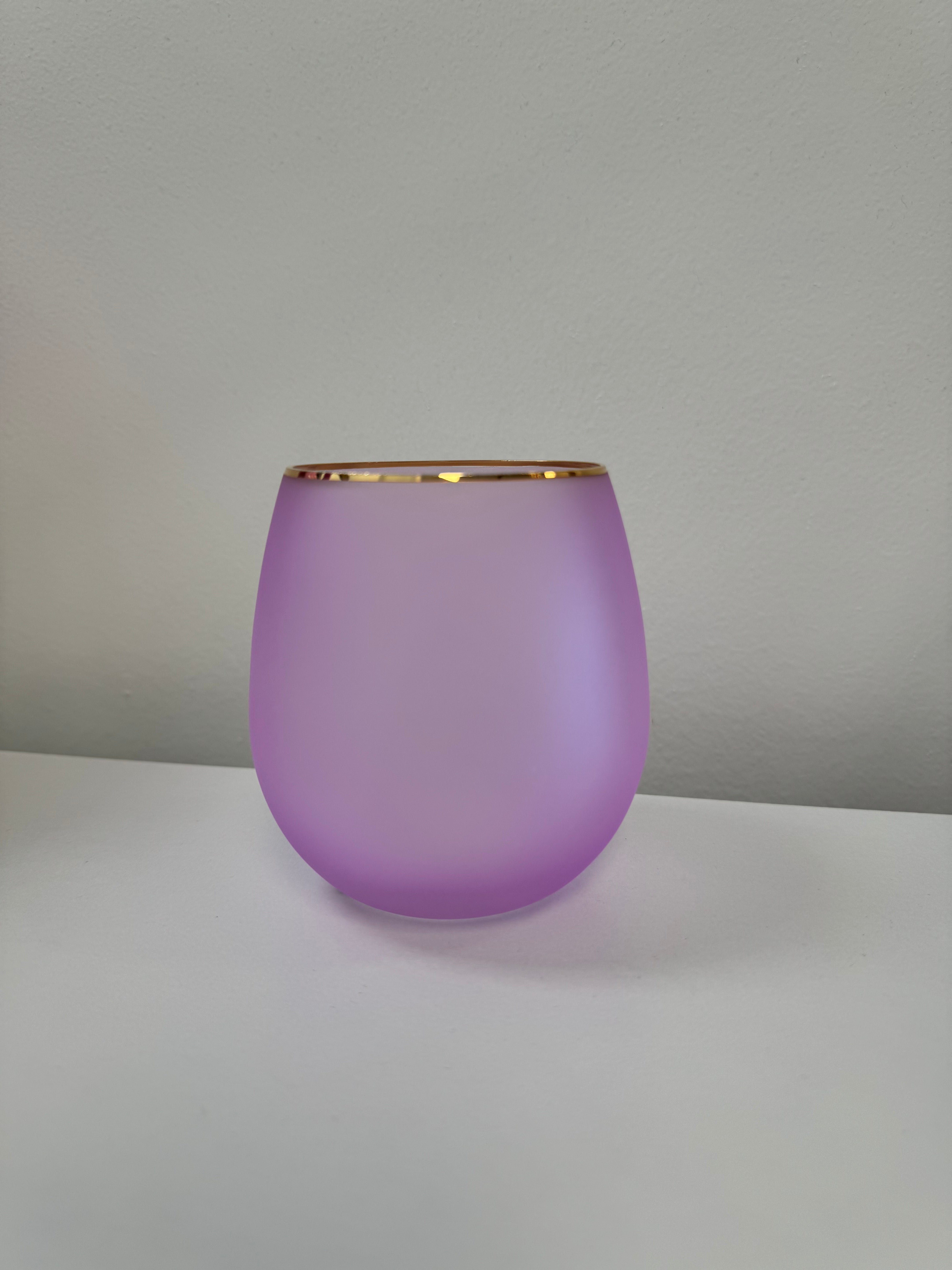 Savor your wine in style with our Frosted Sipper Glasses. These stemless glasses are both elegant and functional, featuring a sleek frosted design and a luxurious gold rim. Enjoy your favorite beverage without worrying about spills or broken stems. Elevate your drinking experience with our Frosted Sipper Glasses! Handwash only.