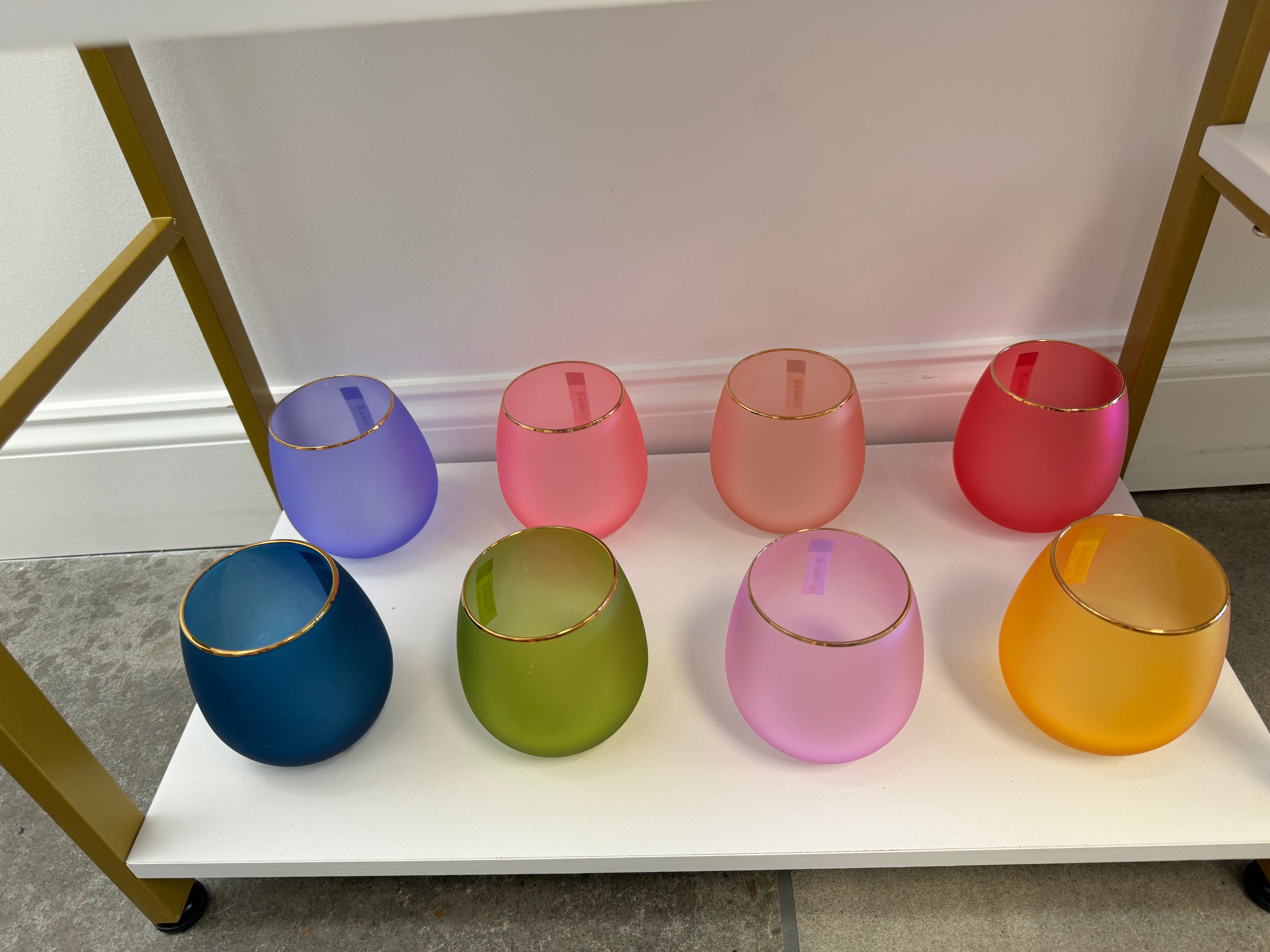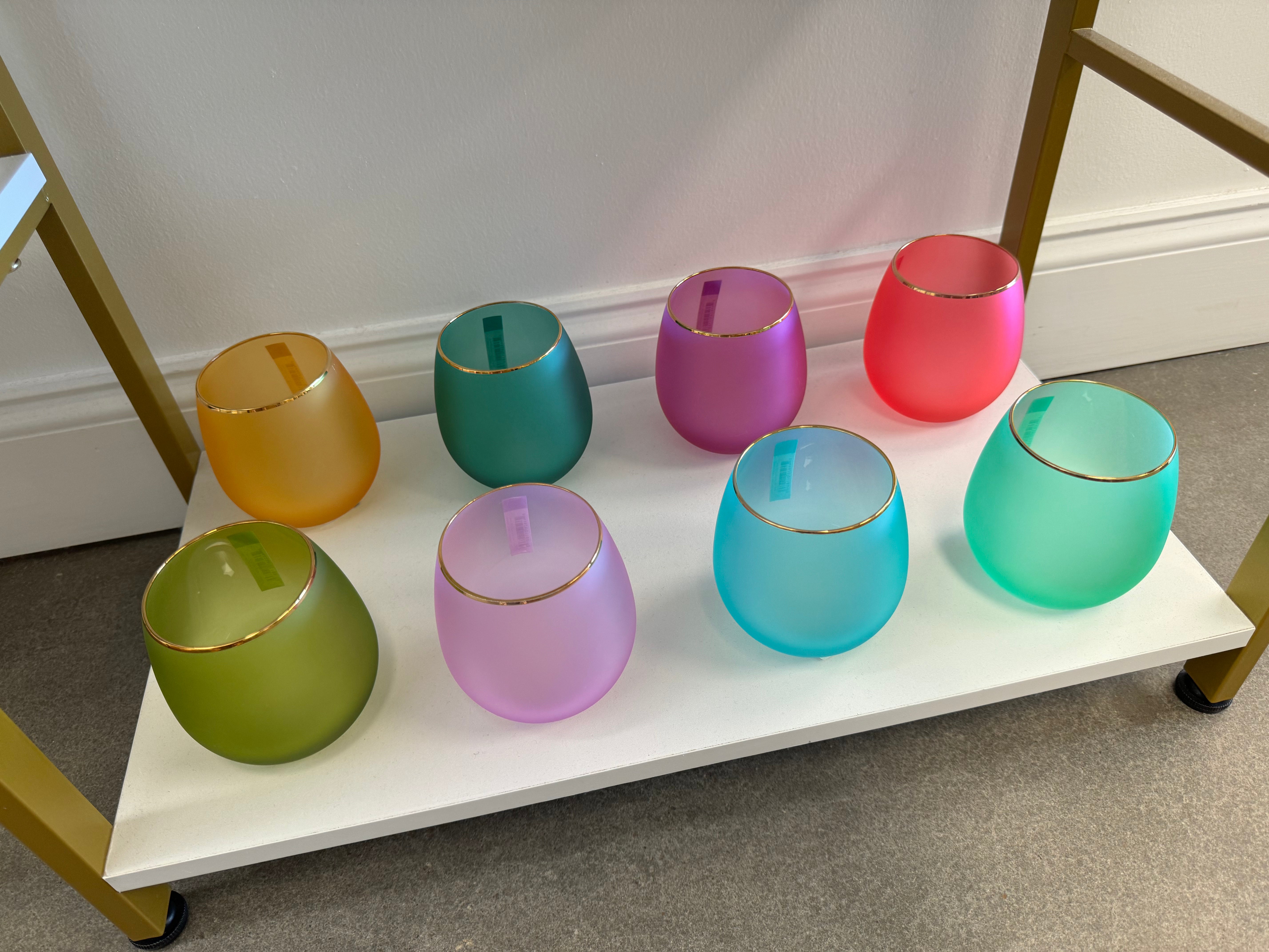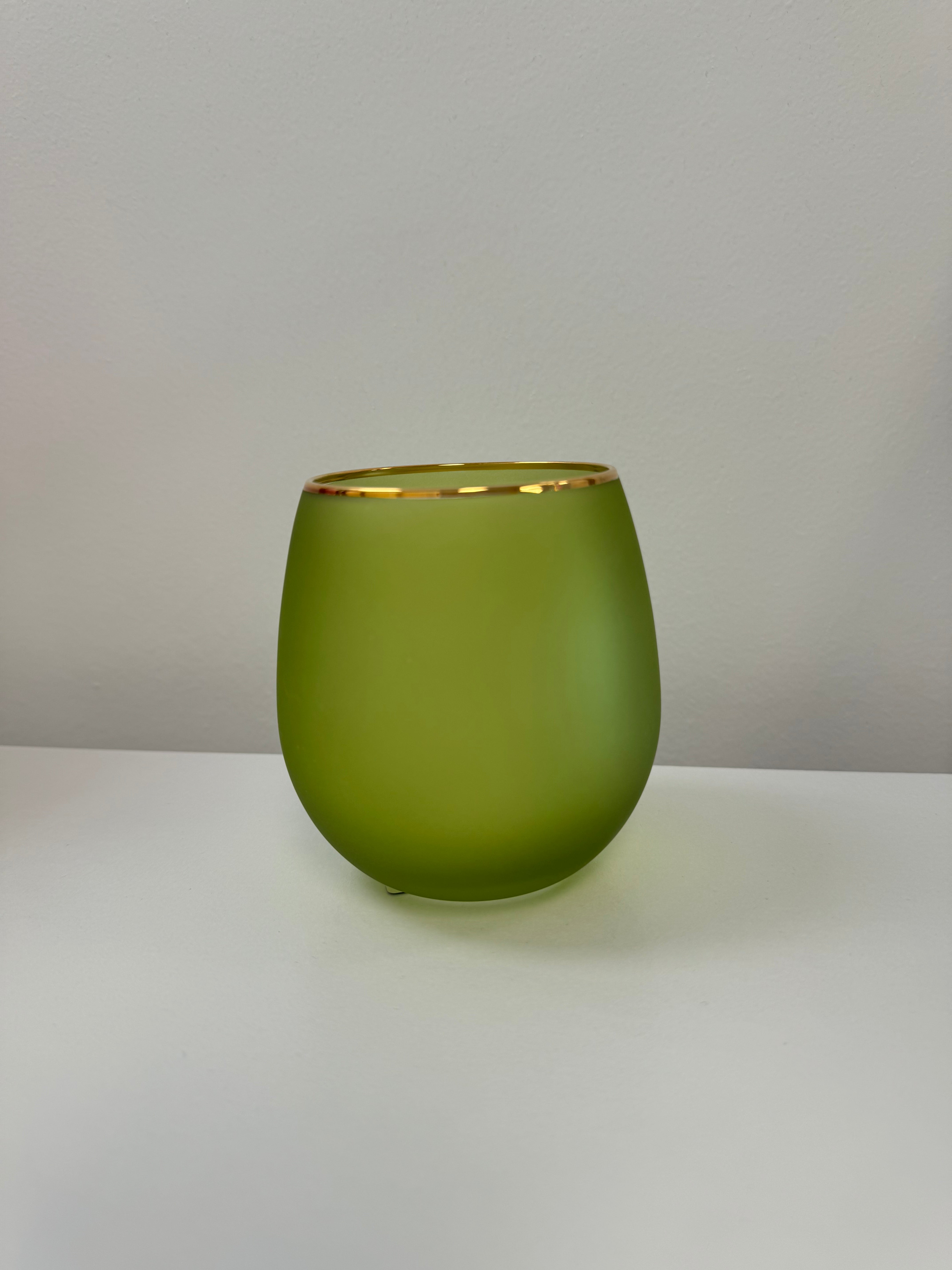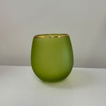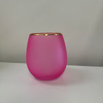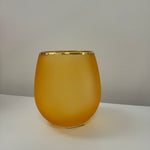 Savor your wine in style with our Frosted Sipper Glasses. These stemless glasses are both elegant and functional, featuring a sleek frosted design and a luxurious gold rim. Enjoy your favorite beverage without worrying about spills or broken stems. Elevate your drinking experience with our Frosted Sipper Glasses! Handwash only.