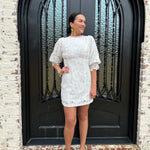 Step into elegance with the Harrison Crochet Lace Shift Dress! This enchanting mini dress features delicate eyelet detailing, making it the perfect choice for brides and graduates alike. Embrace the spirit of spring and summer with this dreamy white dress that exudes charm and sophistication!