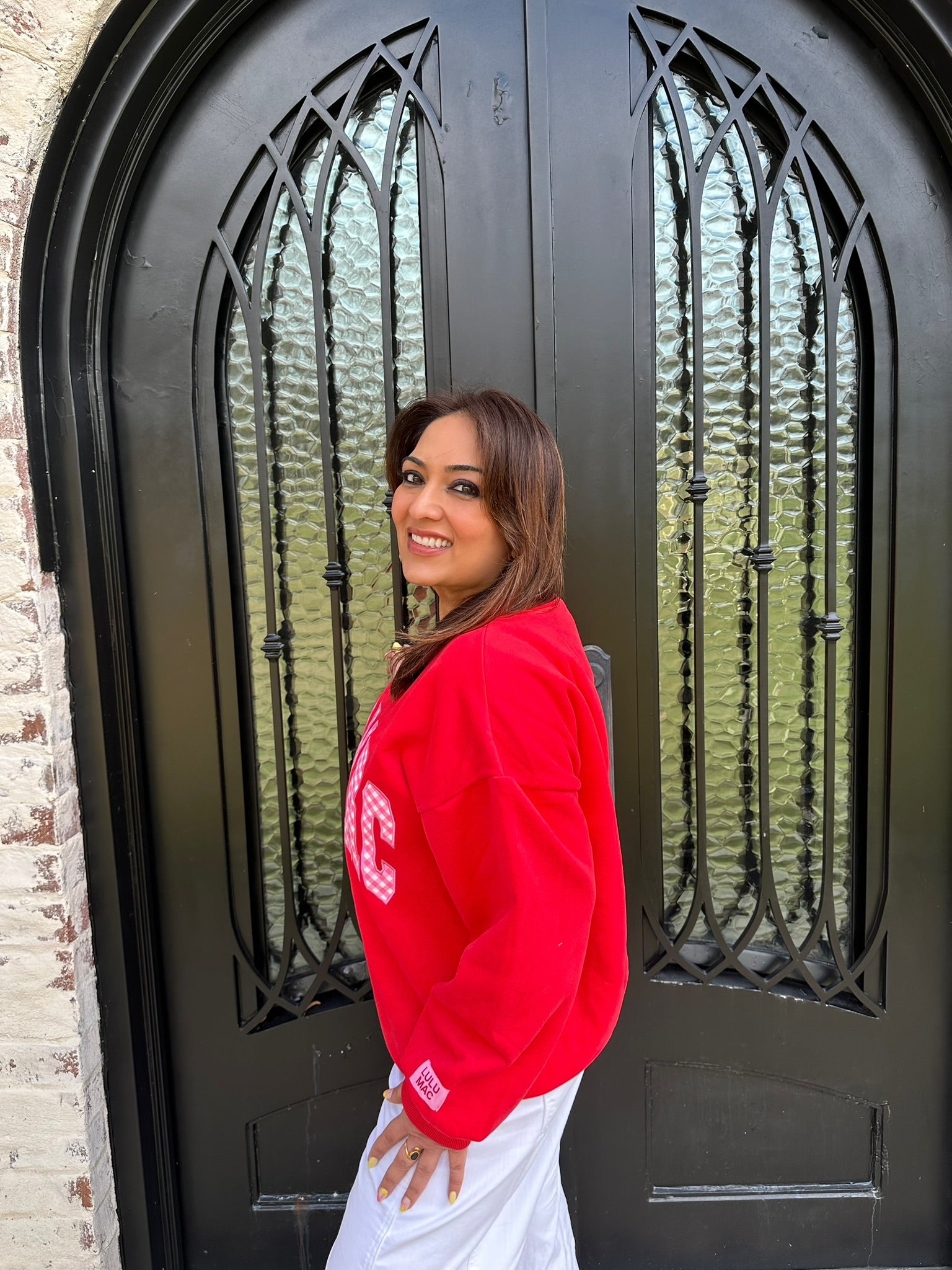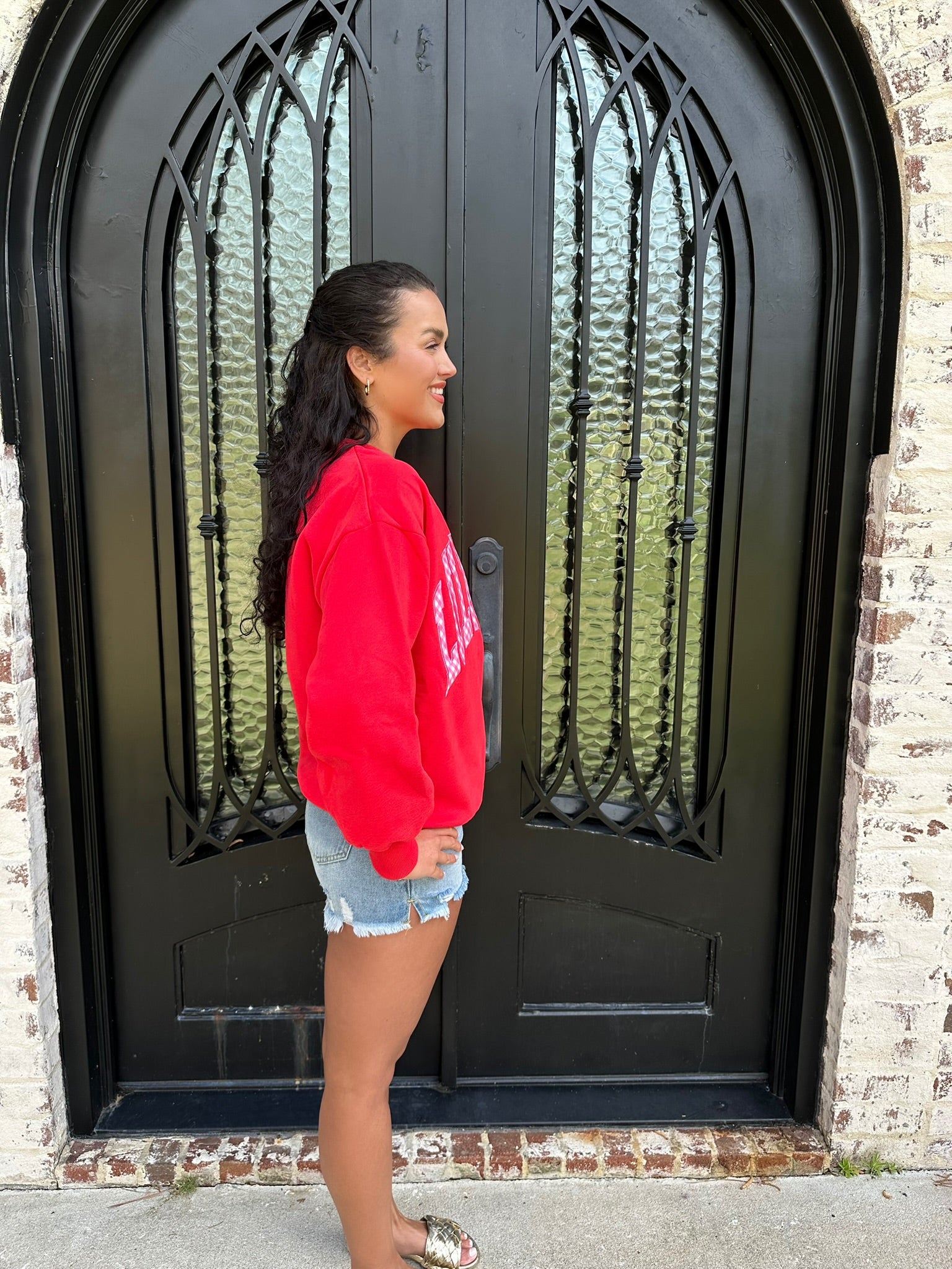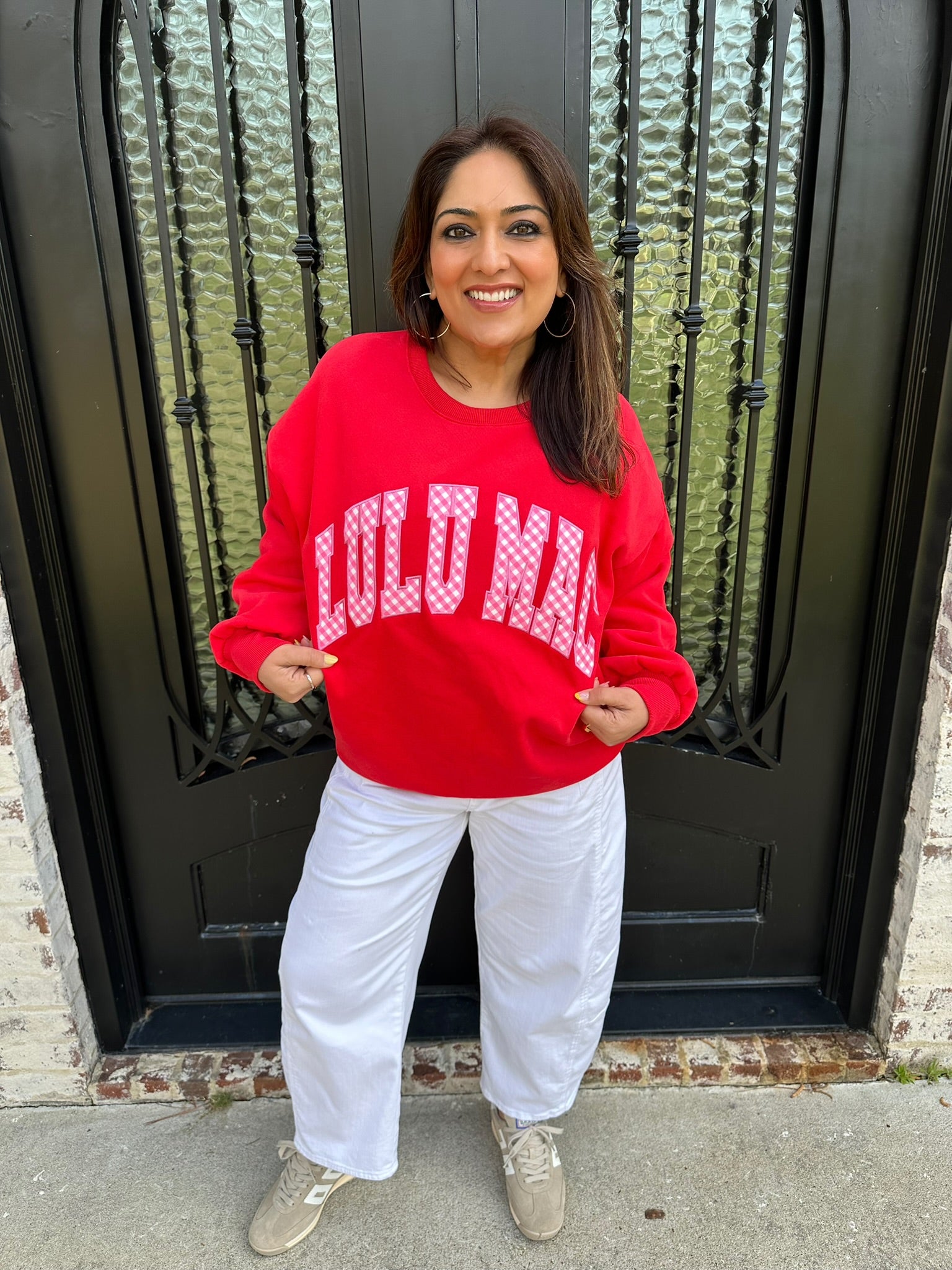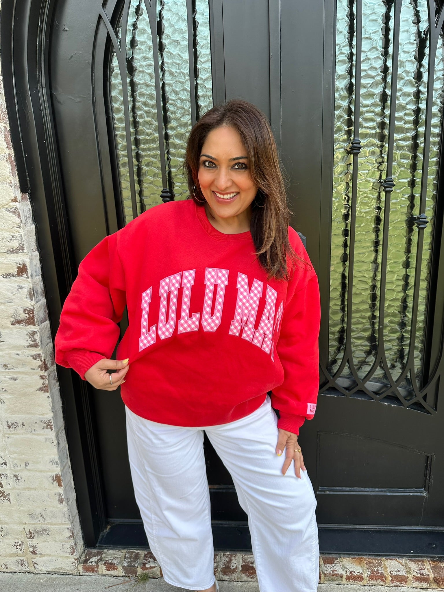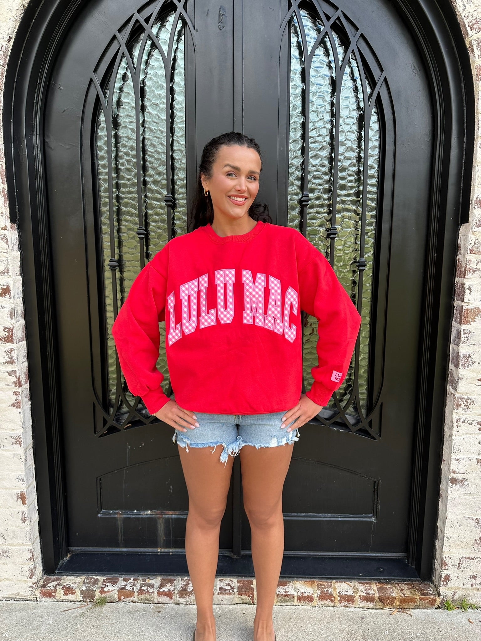 Lulu Mac Red Sweatshirt with Pink Gingham