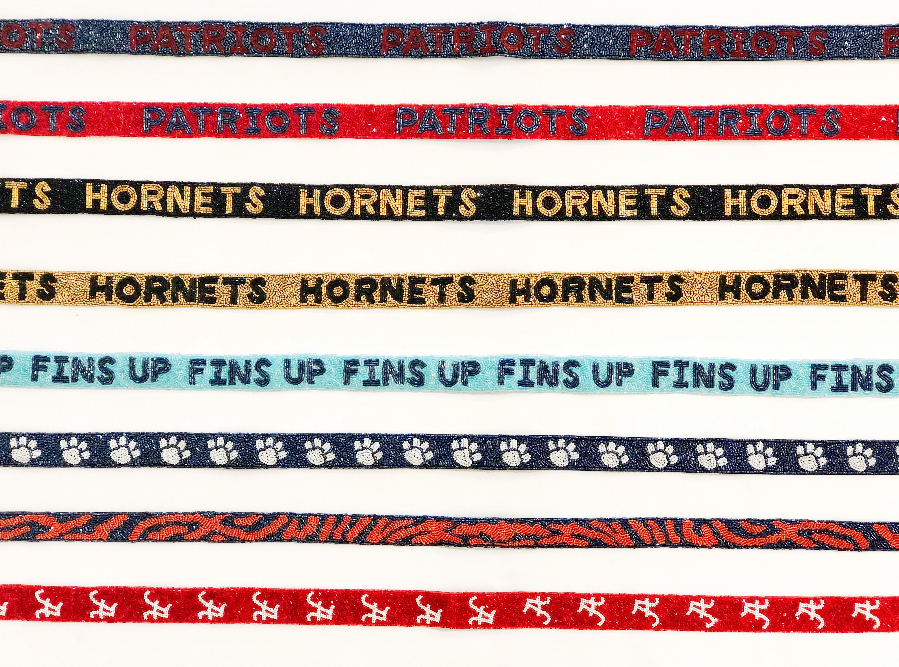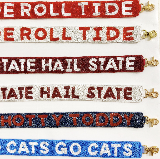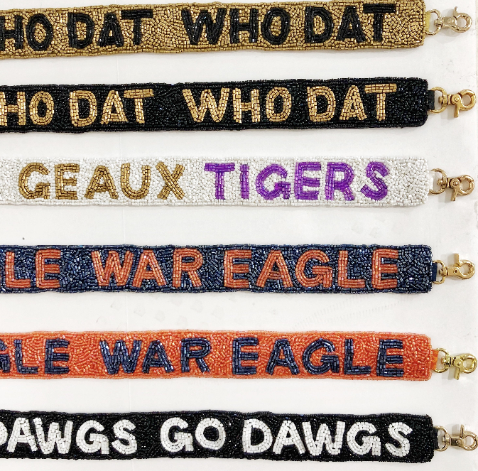 Hand beaded purse straps. Made in India. Attach this beaded strap to any of your clear bags for an extra POP of team spirit!