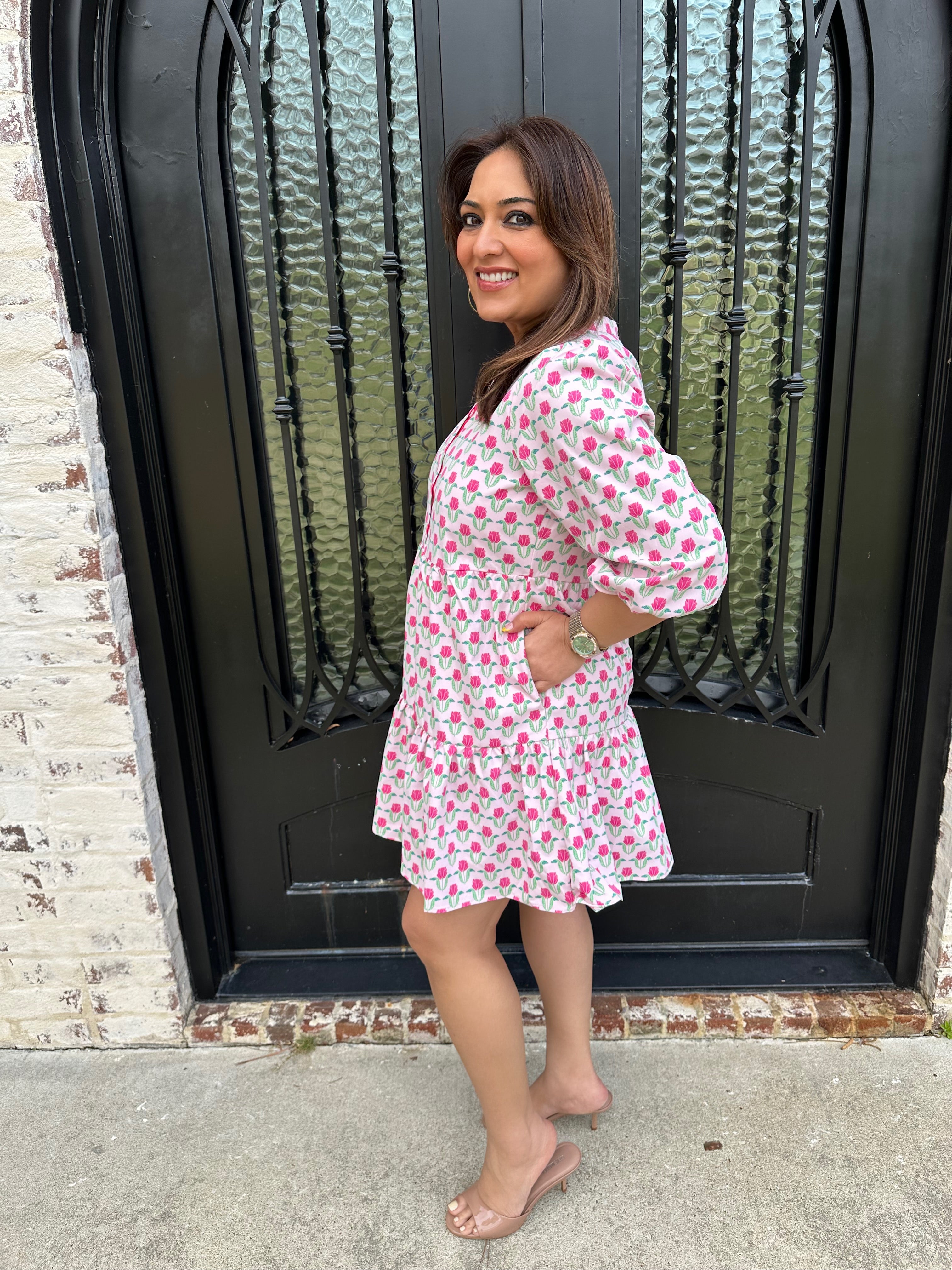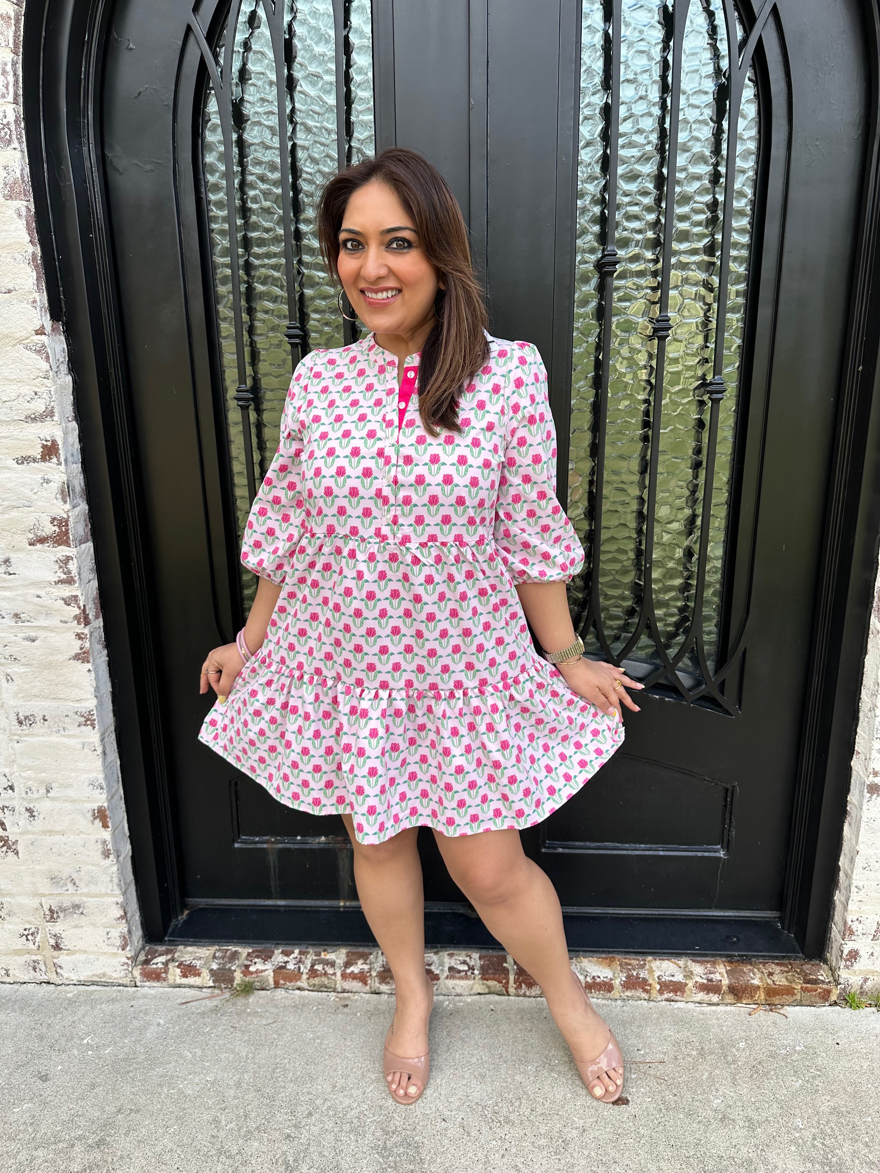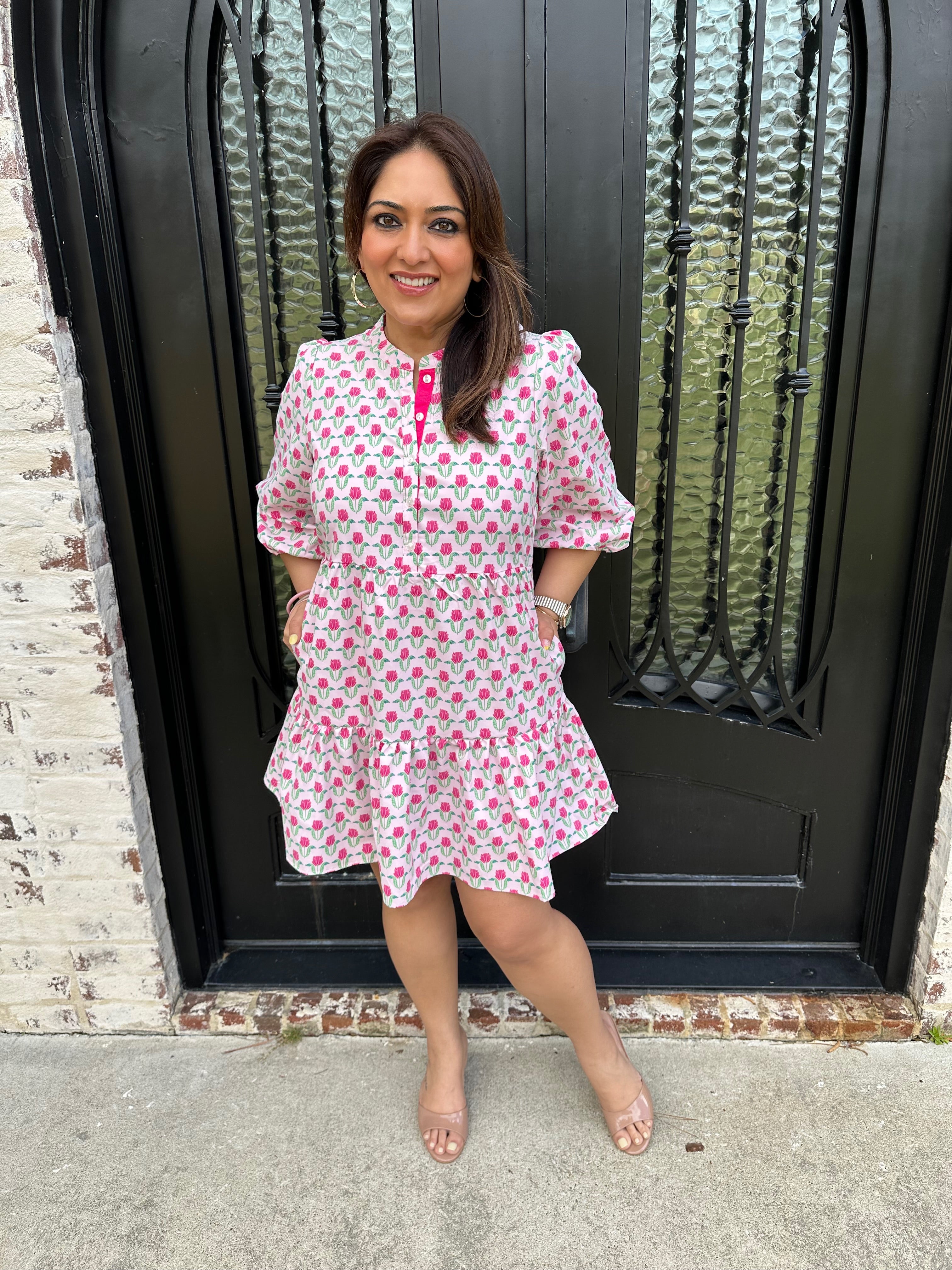 Meet the Riley Mini Dress: easygoing, charming, and ready for anything. Designed with comfy 3/4 sleeves finished with elastic and contrast grosgrain trim along the button placket, it’s all about thoughtful details. The tiered mini skirt adds soft movement and shape, while side pockets keep things effortlessly practical. A feel-good favorite you’ll reach for on repeat