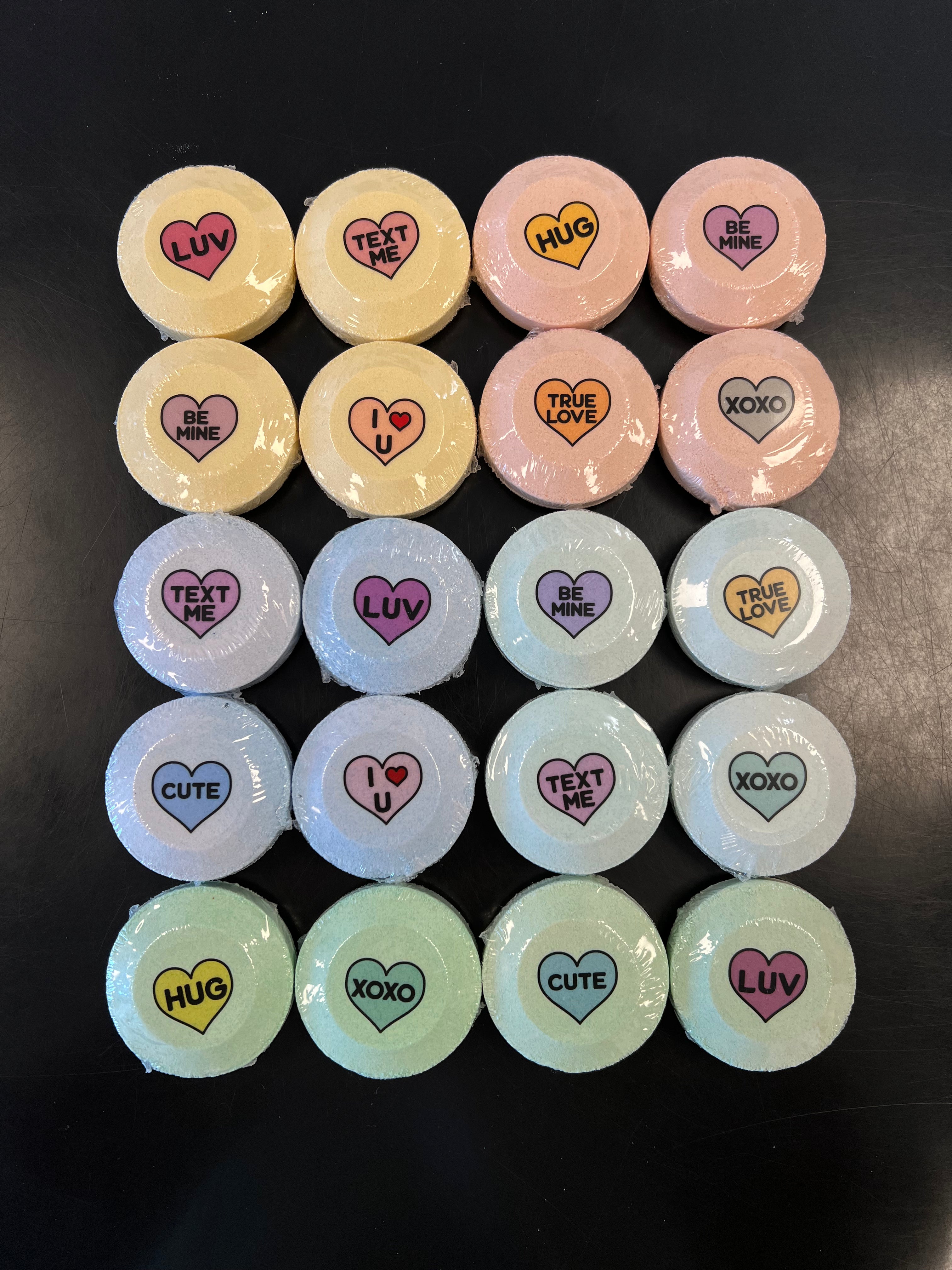 Valentie Conversation Heart Bath Bombs and Shower Steamers