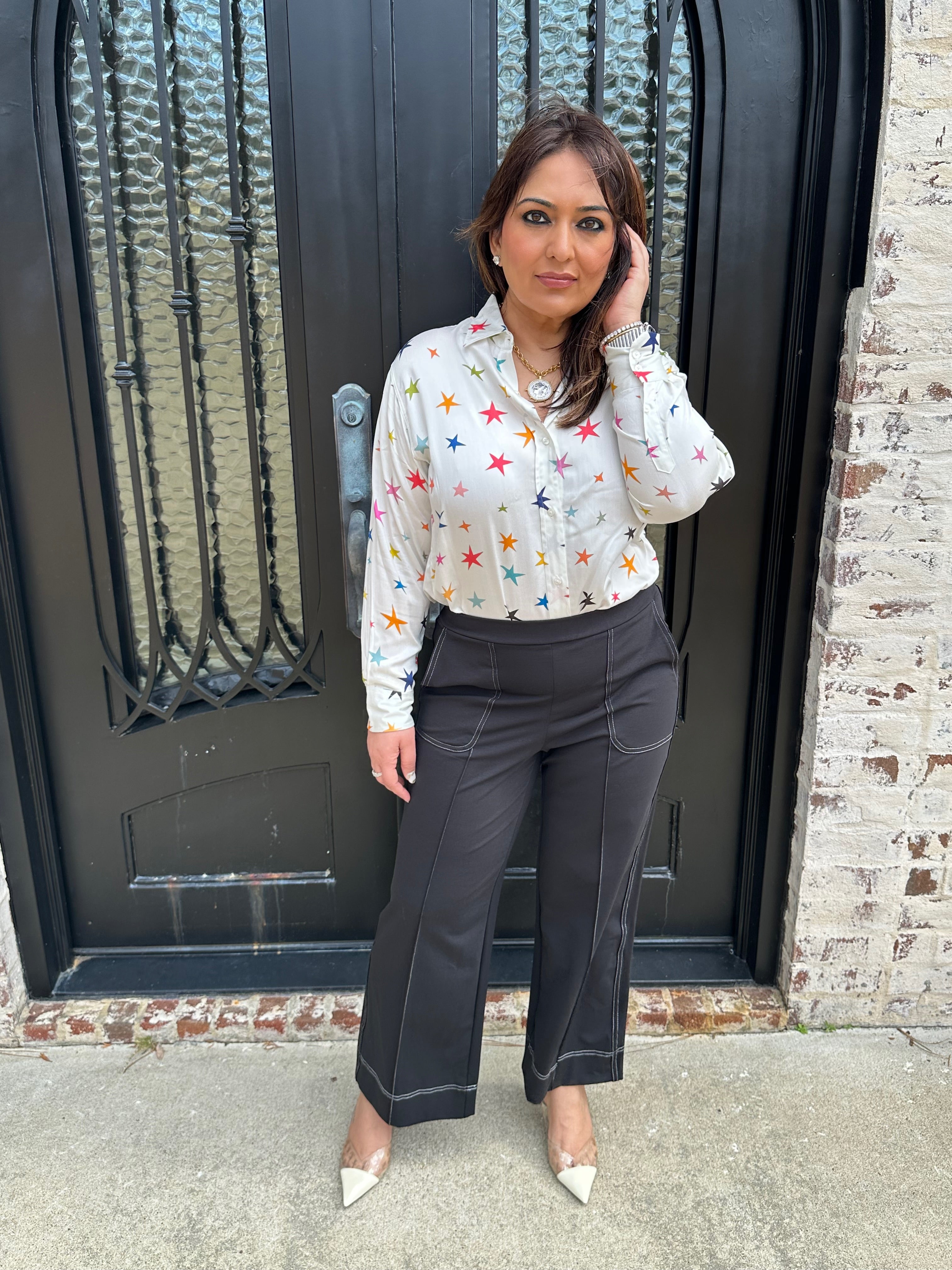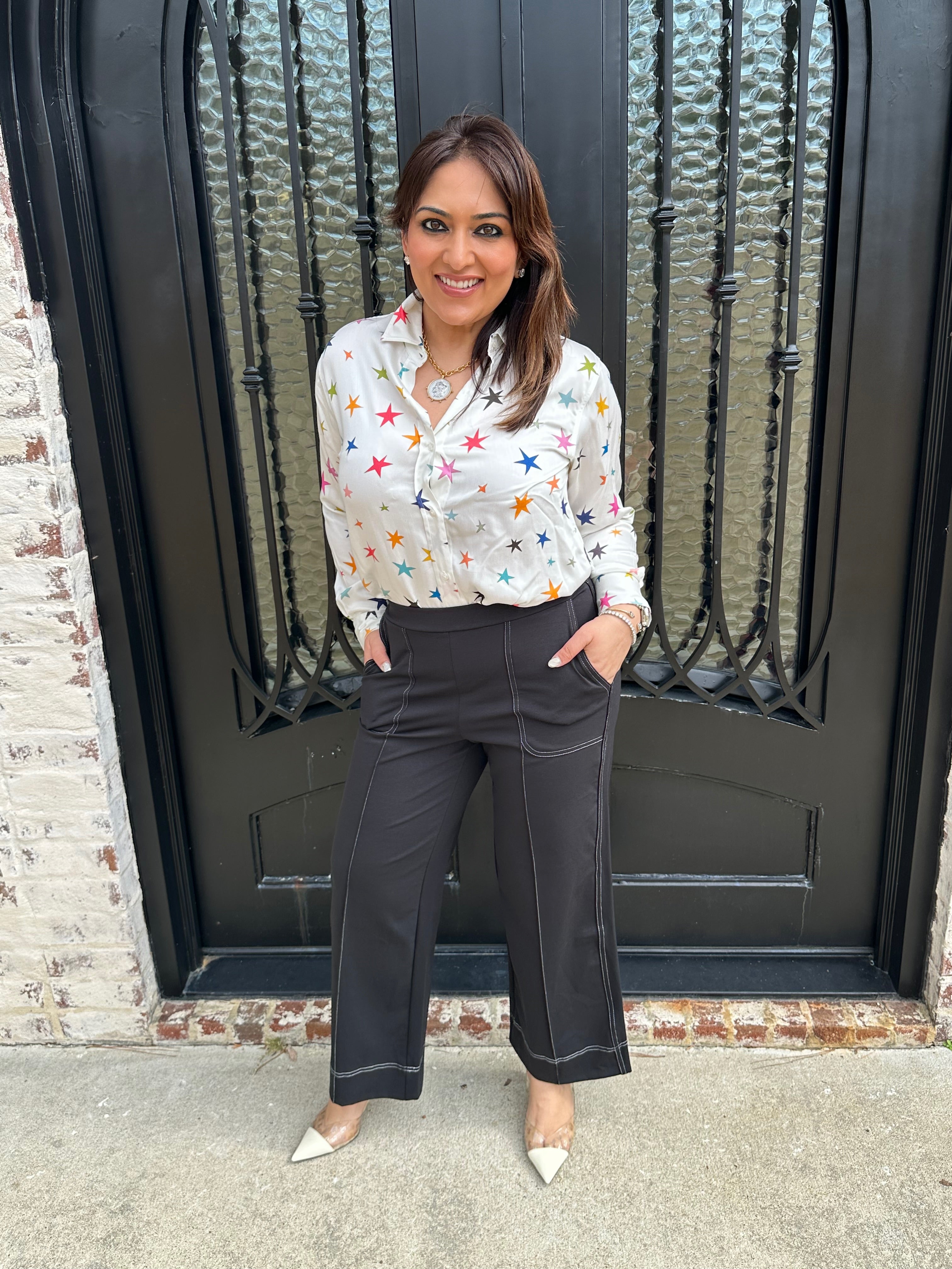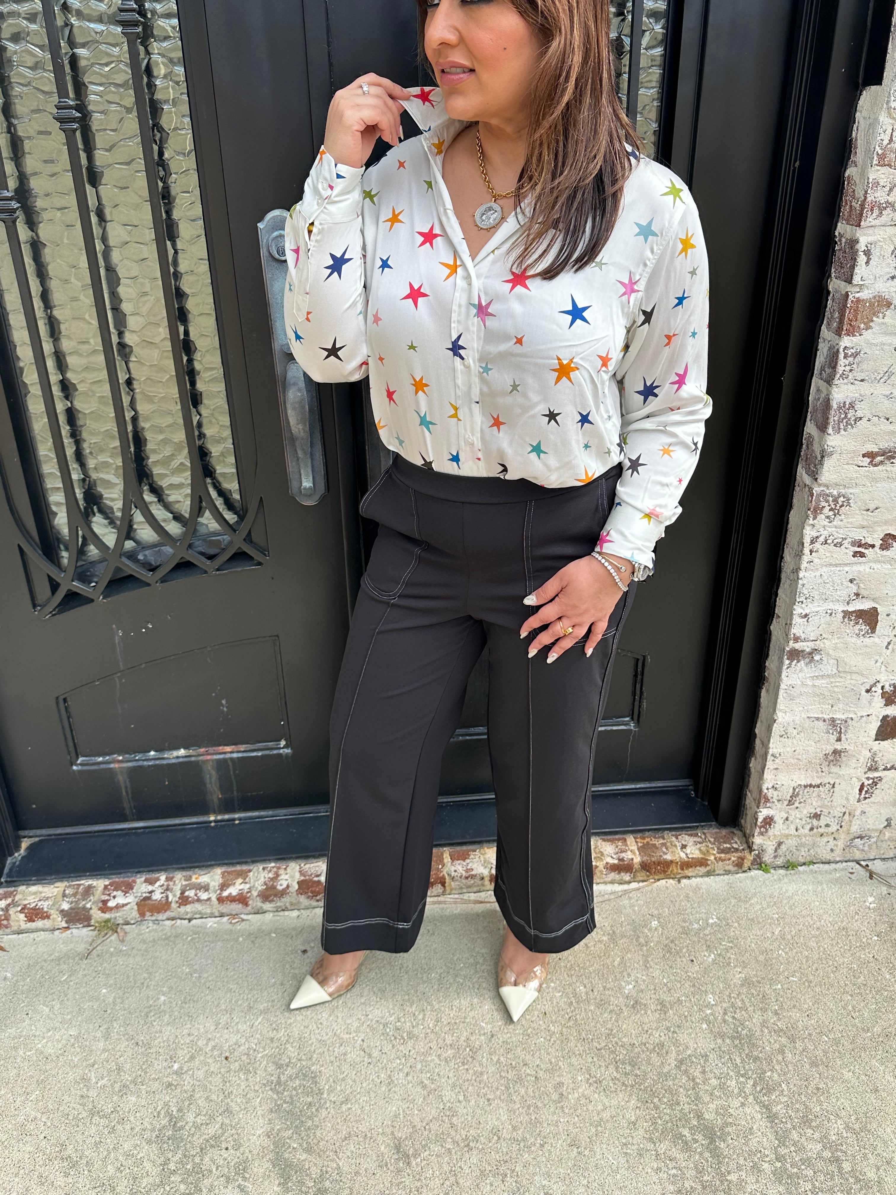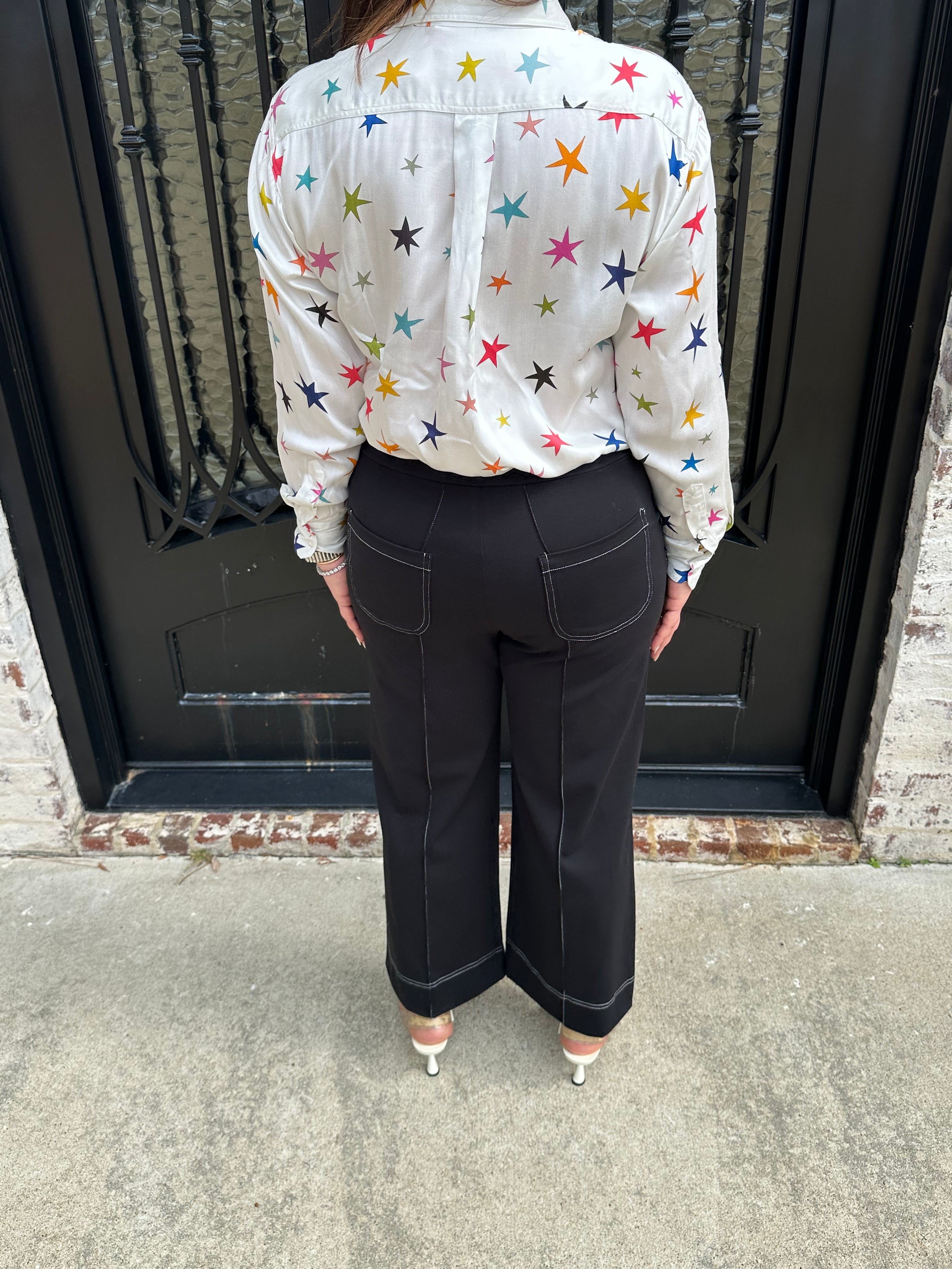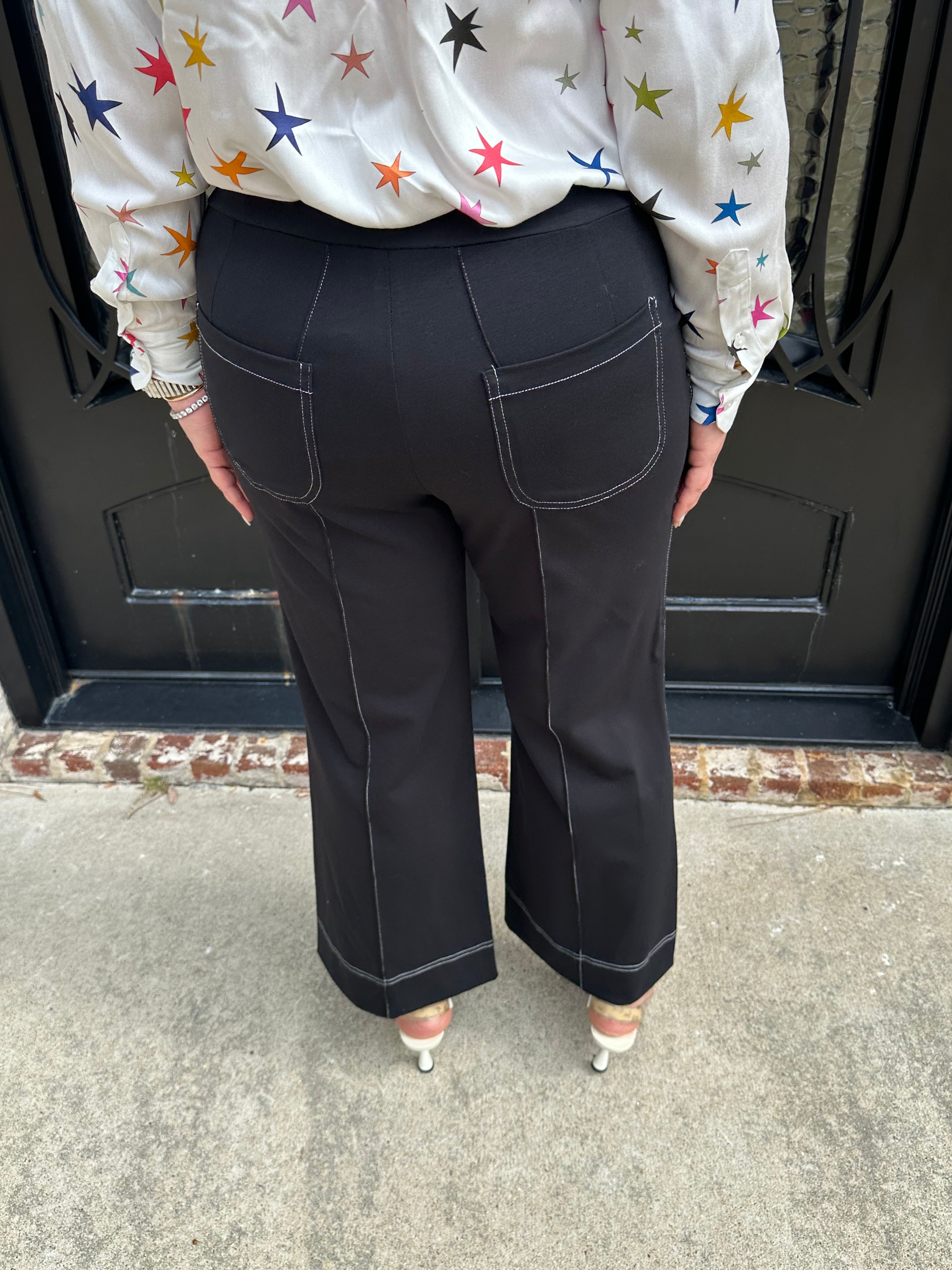 Experience effortless style with the Vilagallo Wide Leg Trousers. The black color is easy to pair with any color top. The elastic back makes it comfortable for all day wear! Embrace a chic silhouette that empowers your every step! These trousers are a versatile addition to your wardrobe. Pair with any of our Vilagallo Tops for the perfect fit!