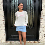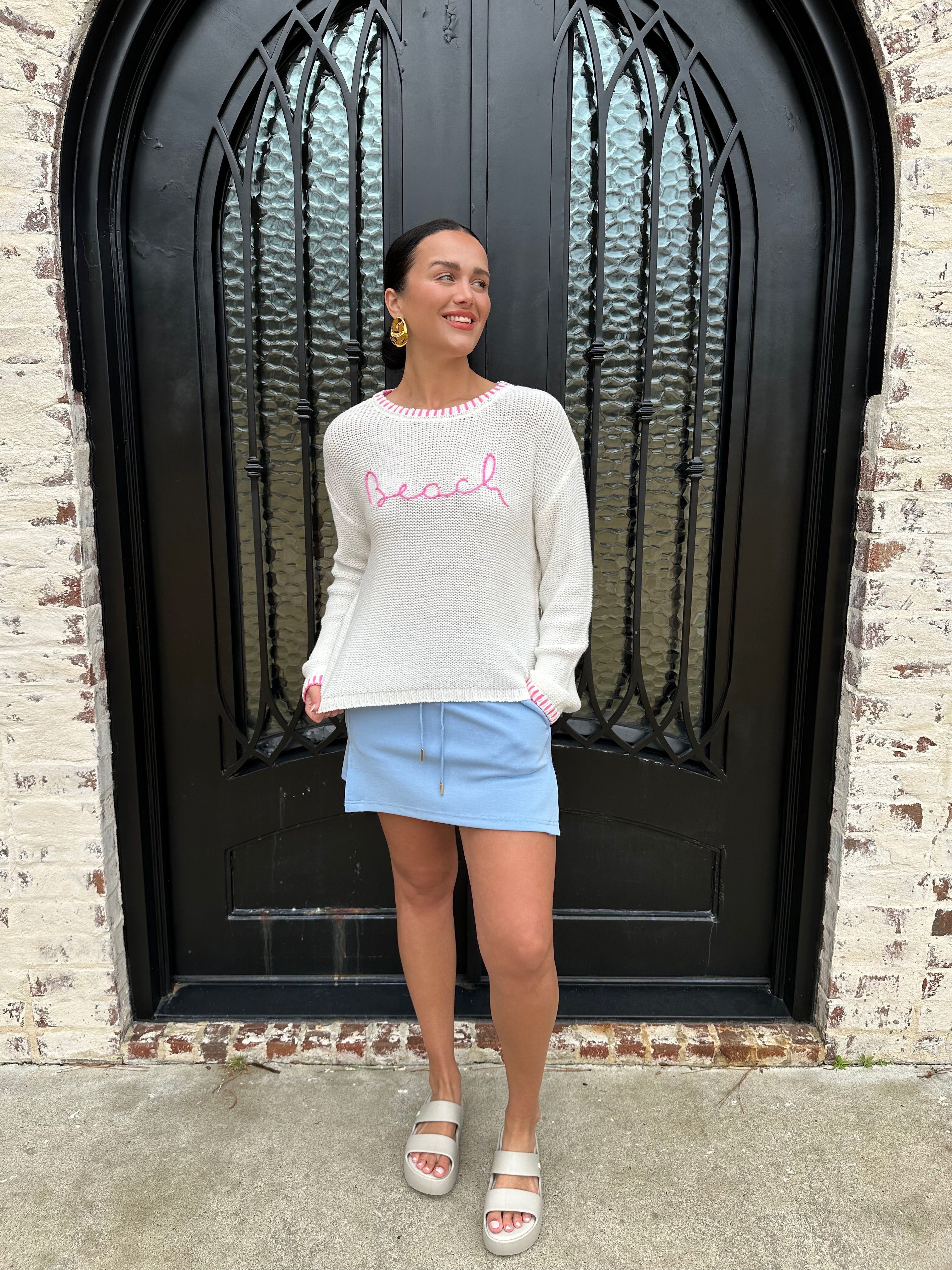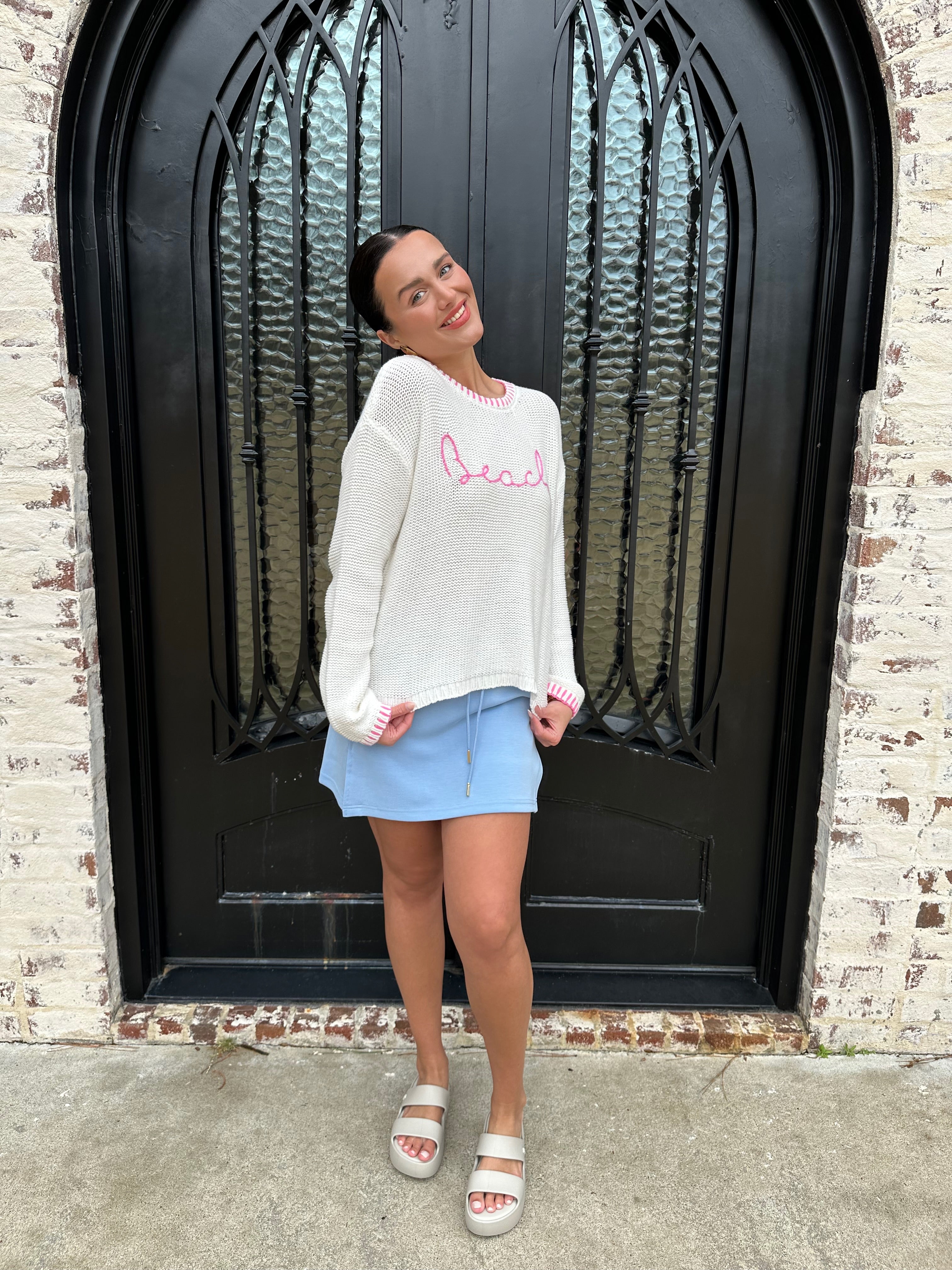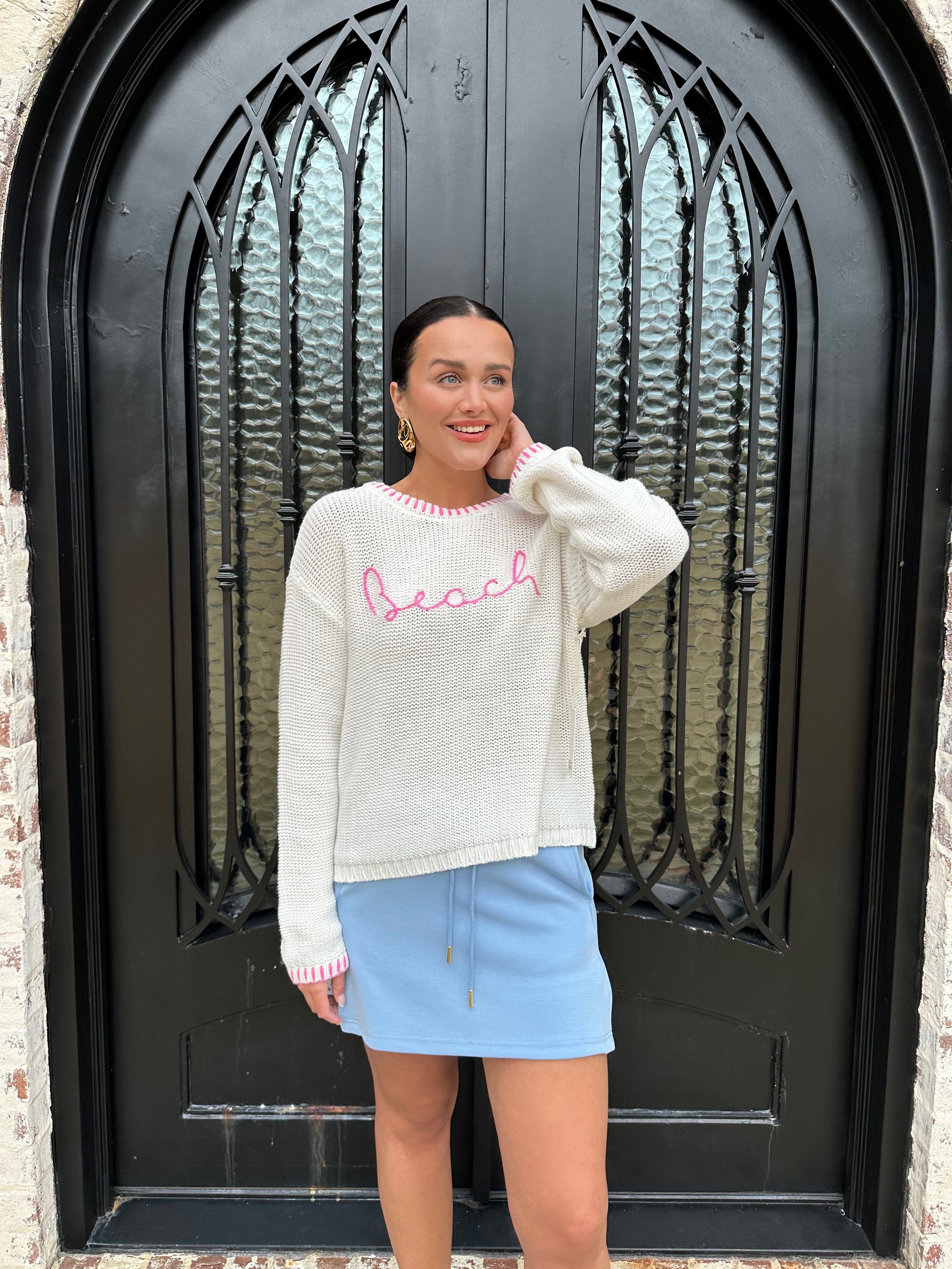 Effortlessly transition from sand to sunset in this lightweight beach sweater, crafted with a relaxed fit that moves with you. The distinctive whip stitch detailing adds artisanal charm and visual interest, while breathable fabric keeps you cool during warm coastal days. Perfect for layering over your swimsuit or pairing with linen pants for an easy, breezy look that captures that laid-back seaside vibe.