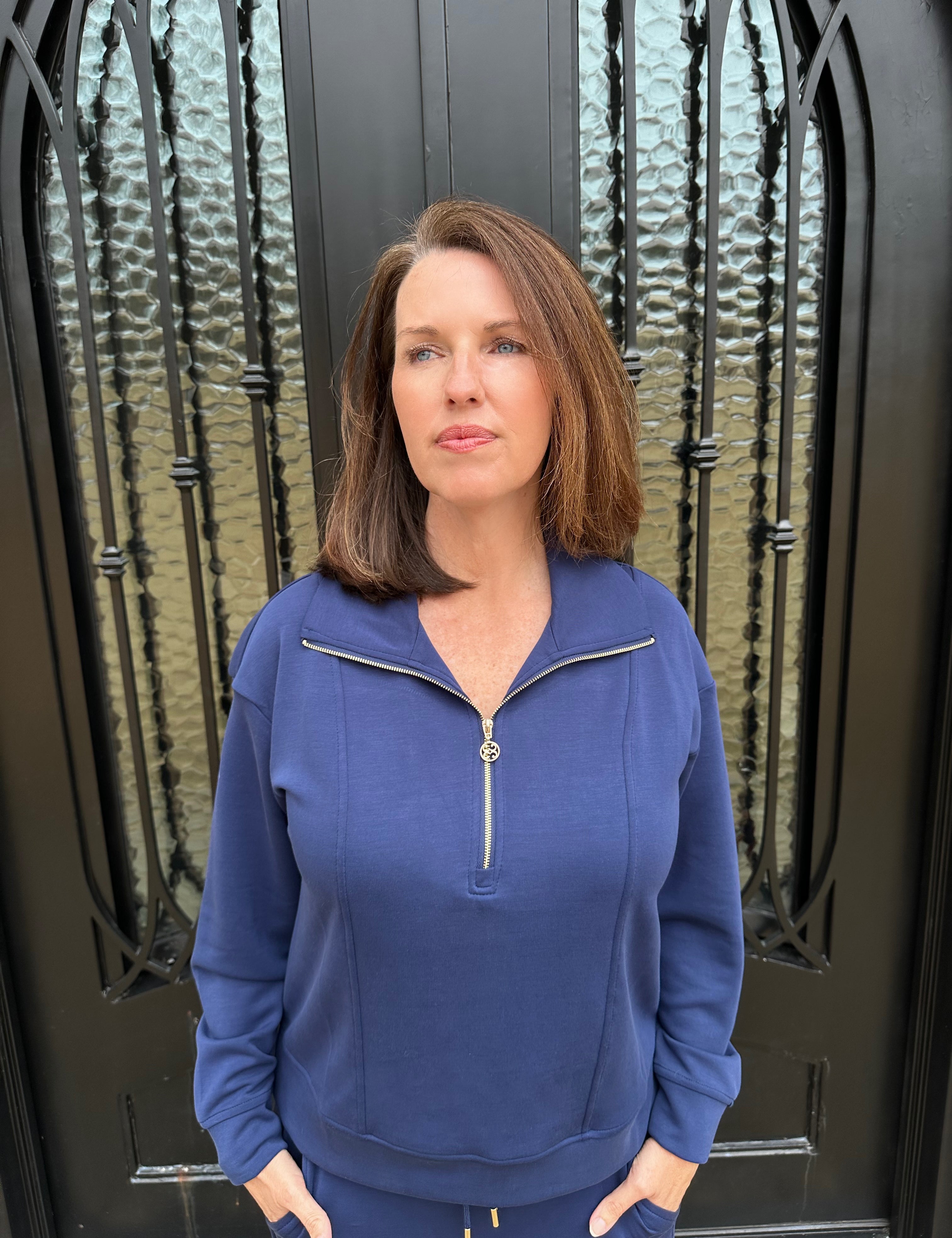 Regan Half Zip Top in Navy