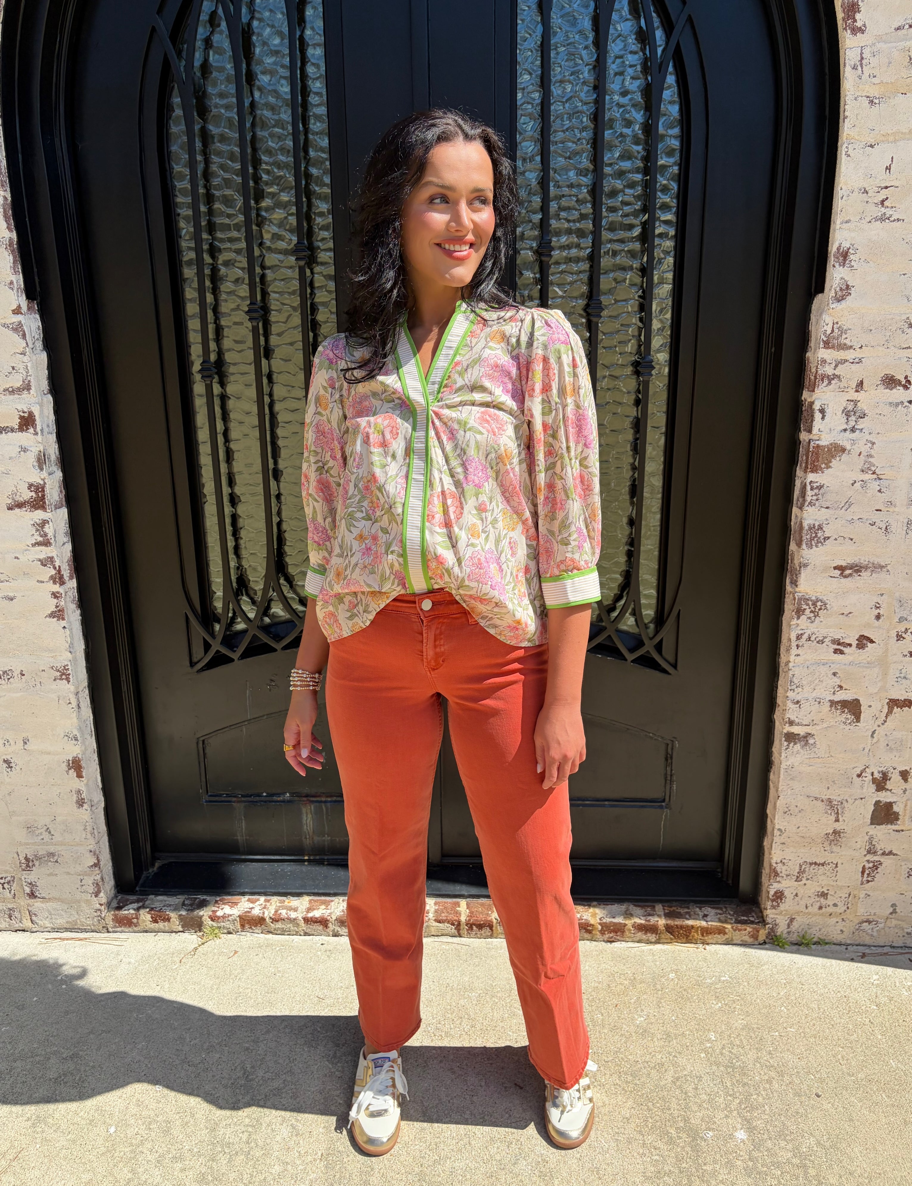 Sunny Days Stripe Button Up Puff Sleeve Top in Pink