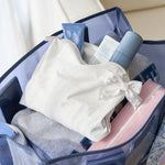 The Crinkle Makeup Bag is your new go-to bikini bag, makeup bag, tote bag organizer and more! Stash sunscreen, a wet bathing suit, or tanning oil inside to keep your tote dry, clean, and organized. Crafted from waterproof material, the zip pouch also protects your phone, e-reader, or wallet from sand and splashes. This pouch features a statement bow that's as sweet as it is sophisticated Toss it in your tote for beach trips, pool days, or travel, then cold wash and air dry when it needs a refresh.