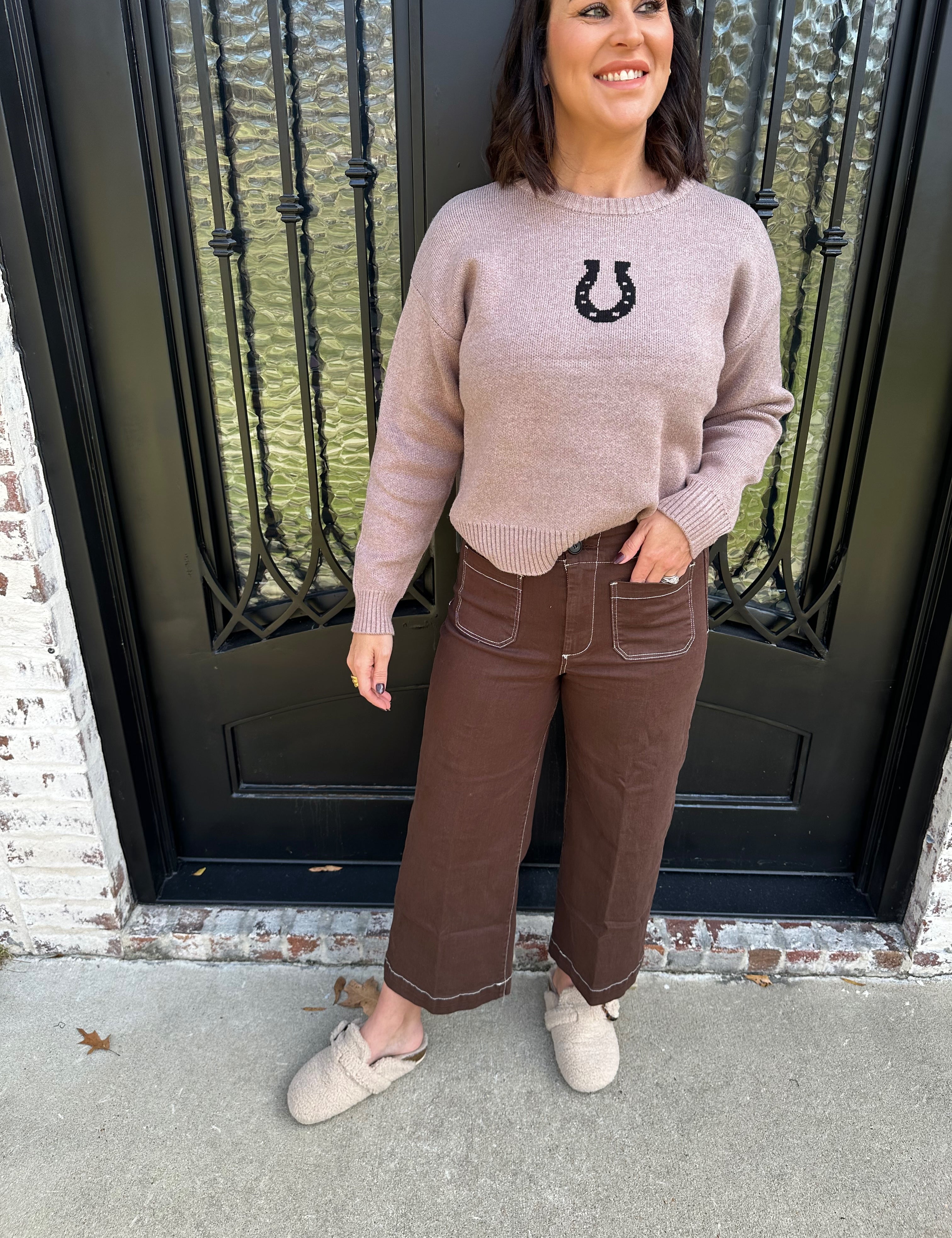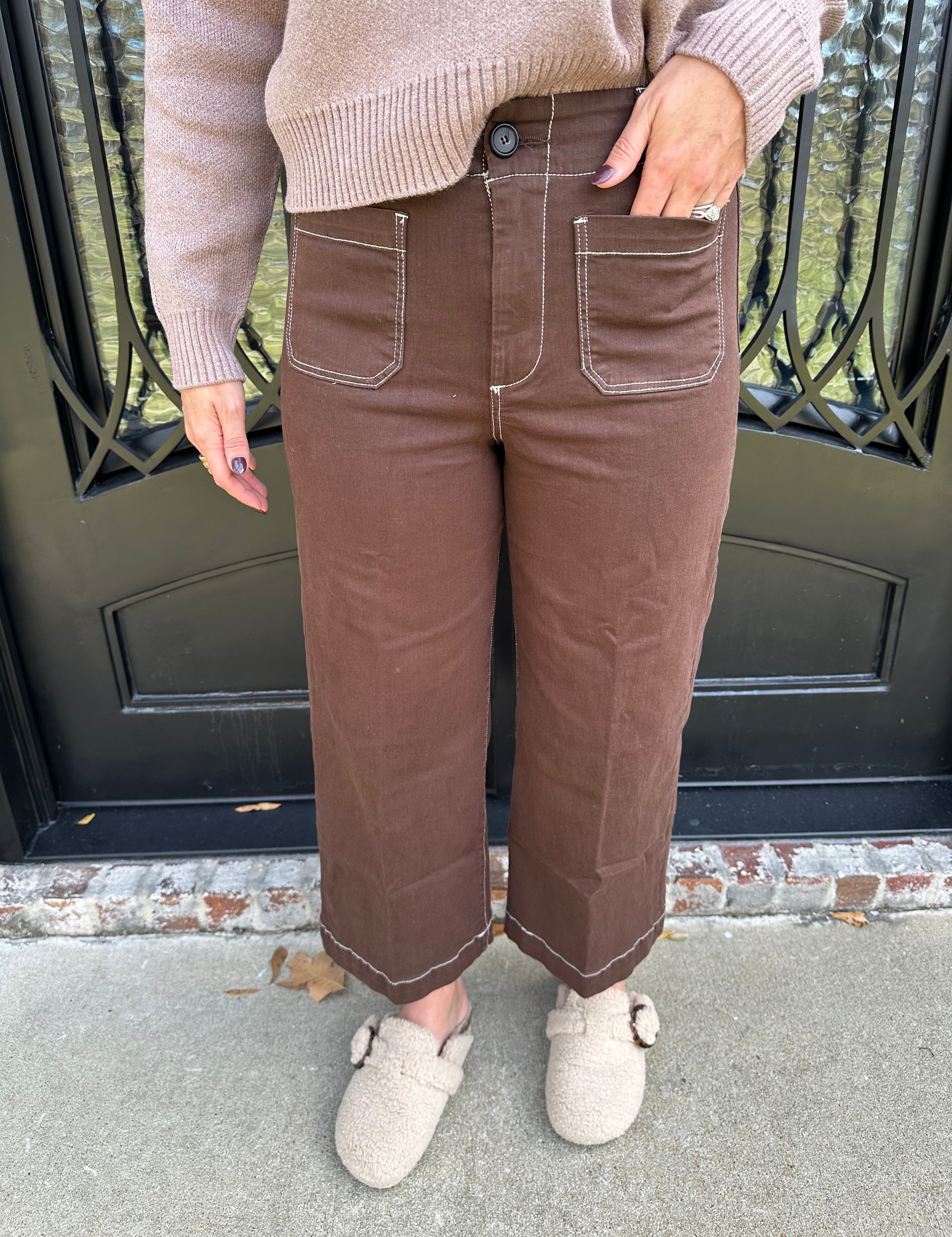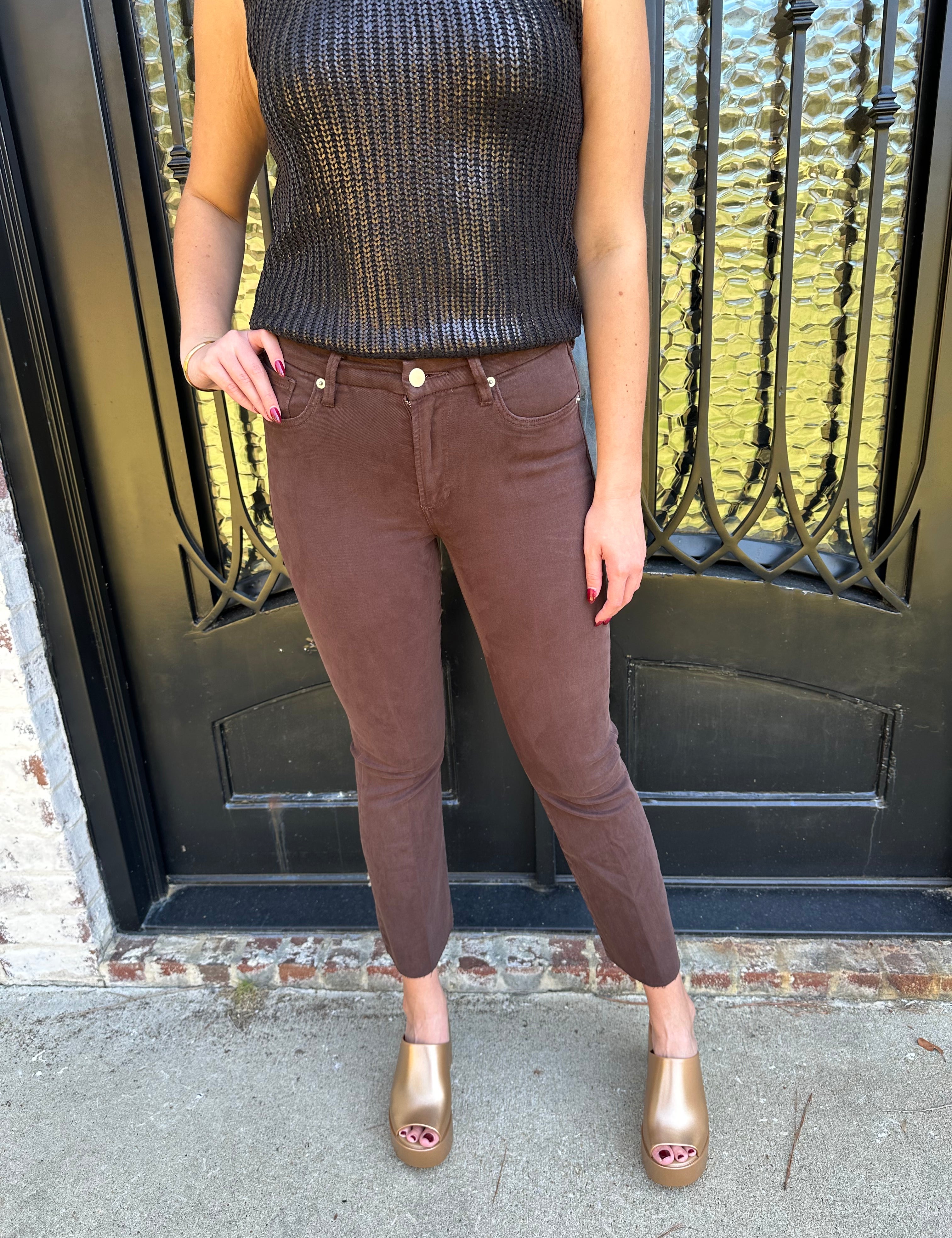 Tractr High Rise Coated Ankle Crop Flare in Cognac