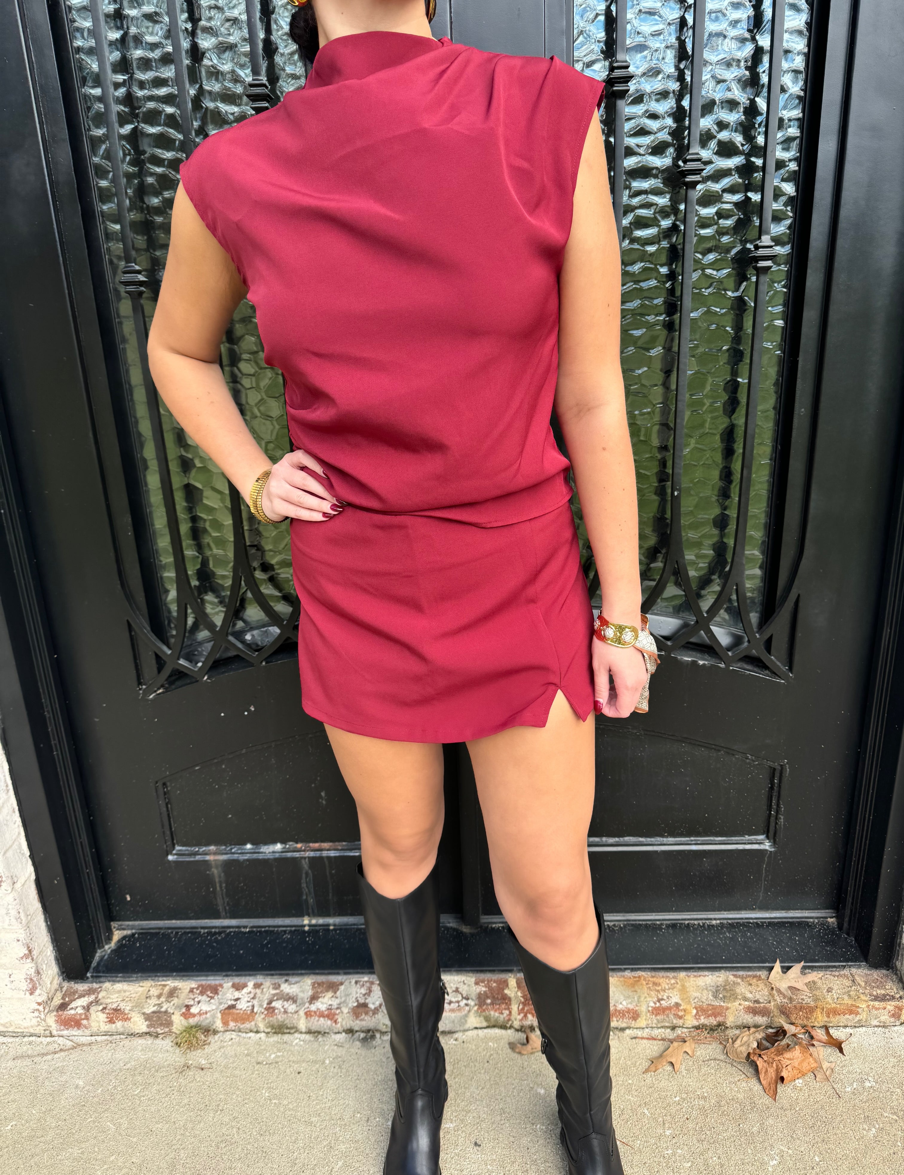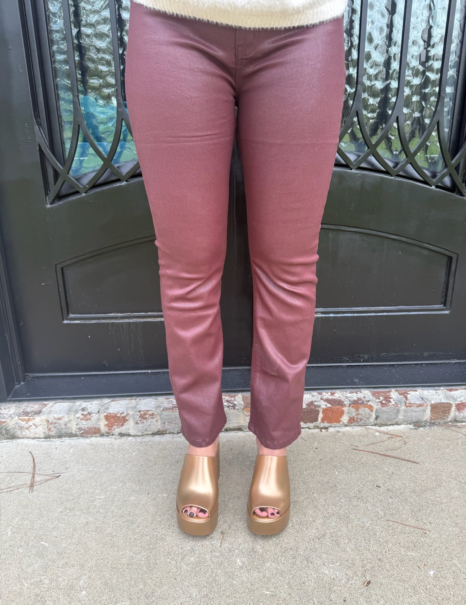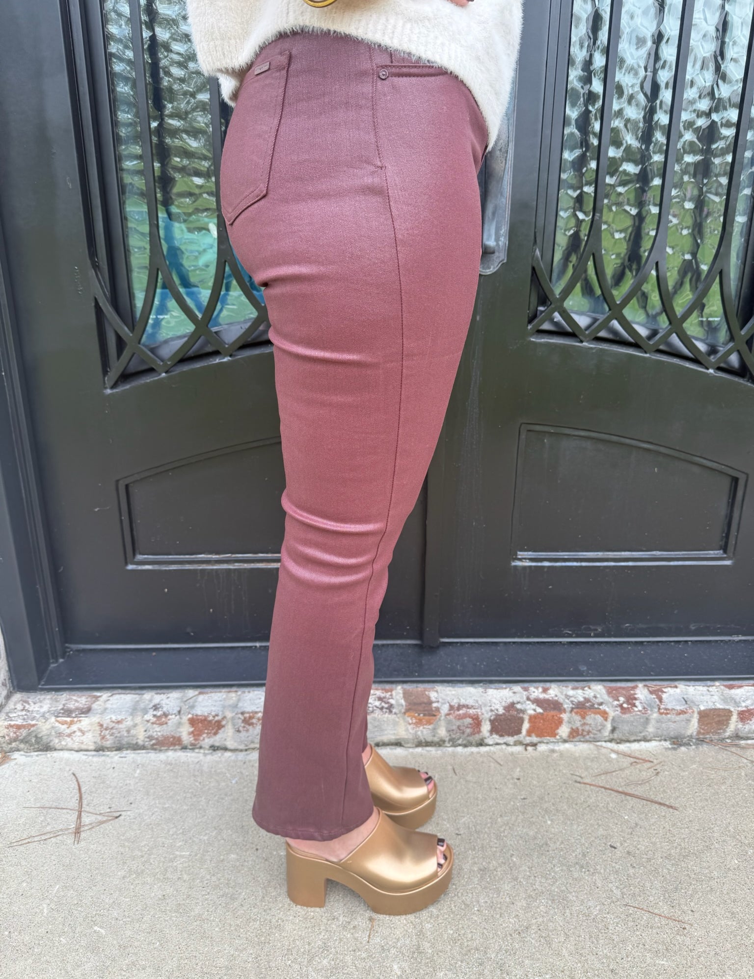 Tractr High Rise Coated Ankle Crop Flare in Dark Cherry