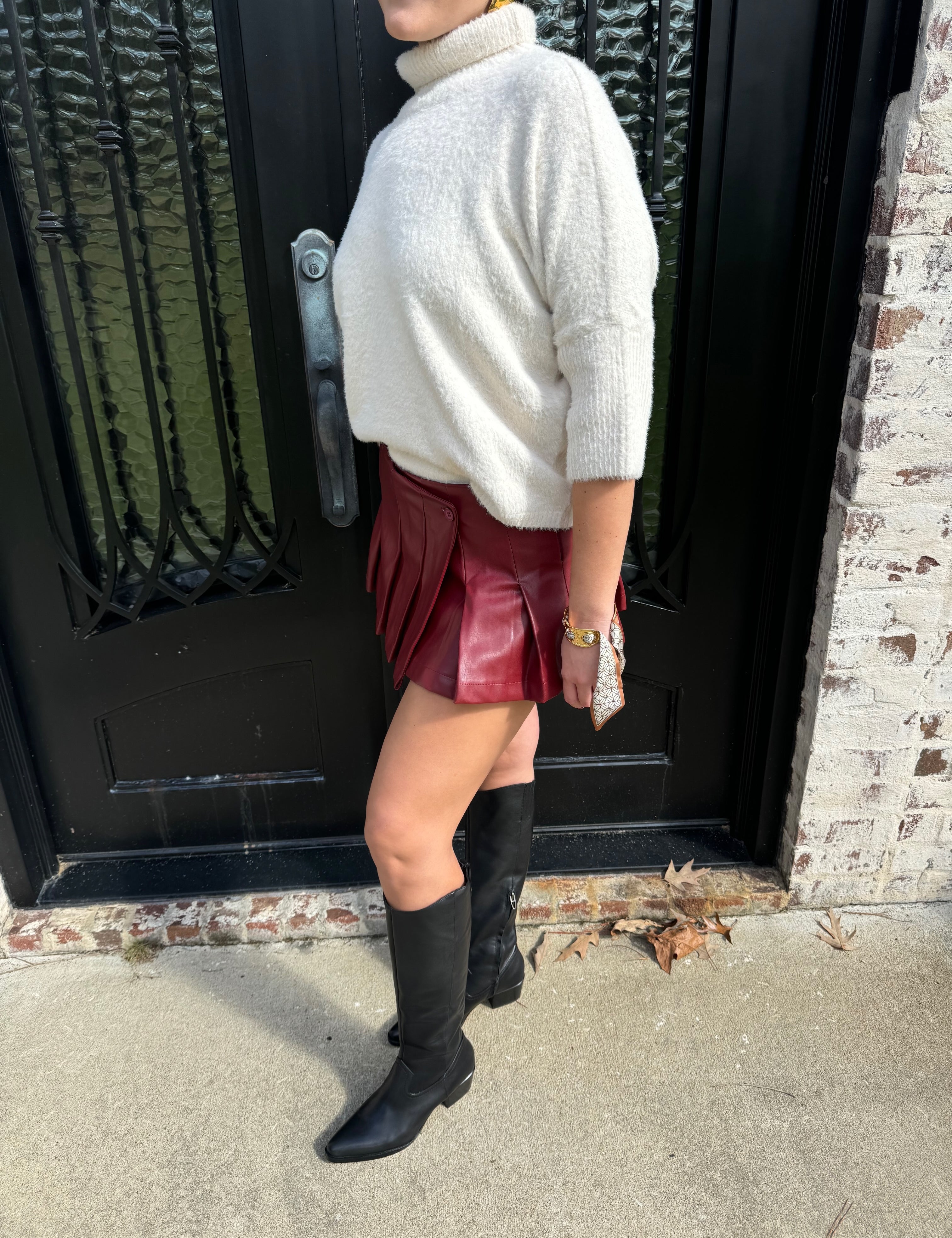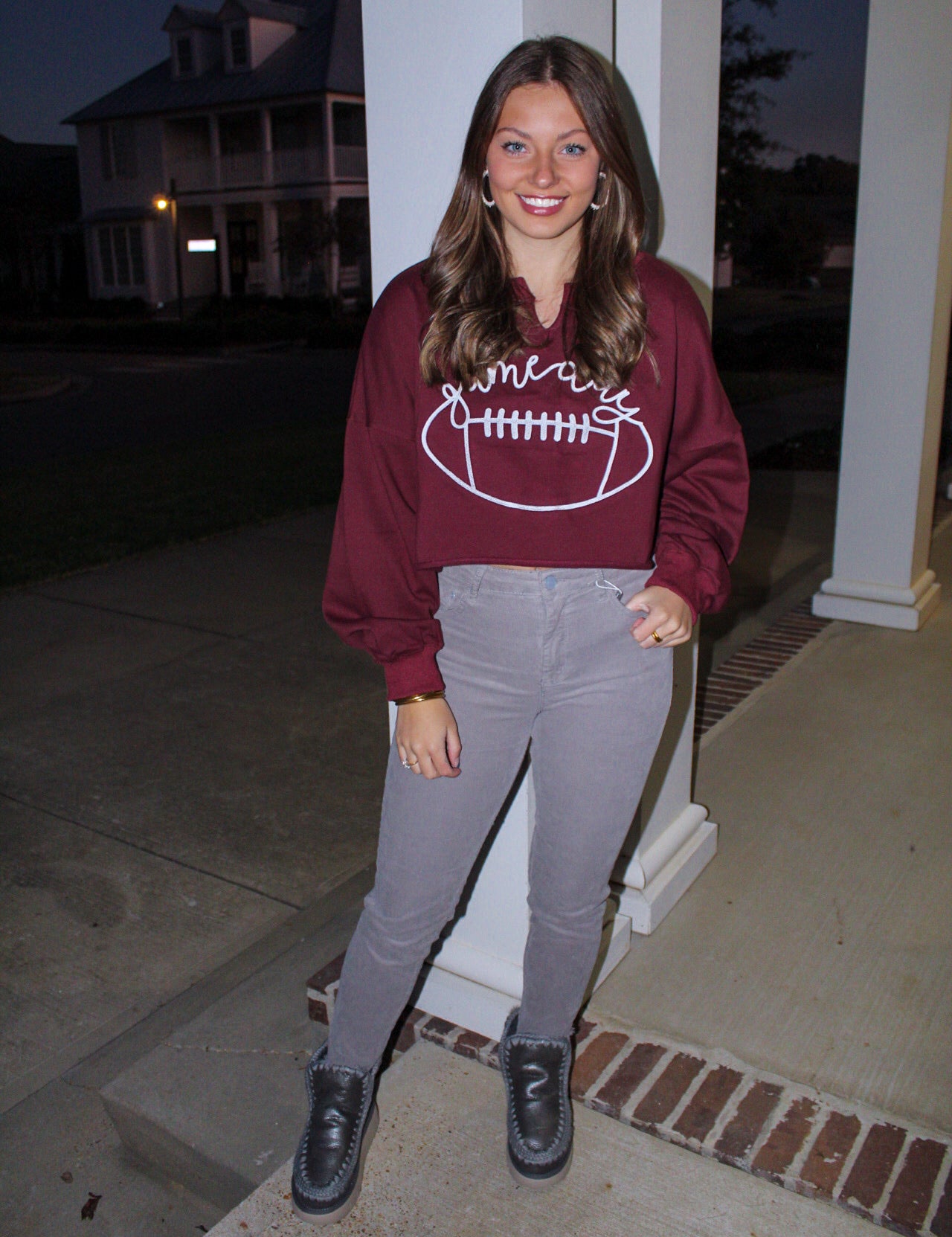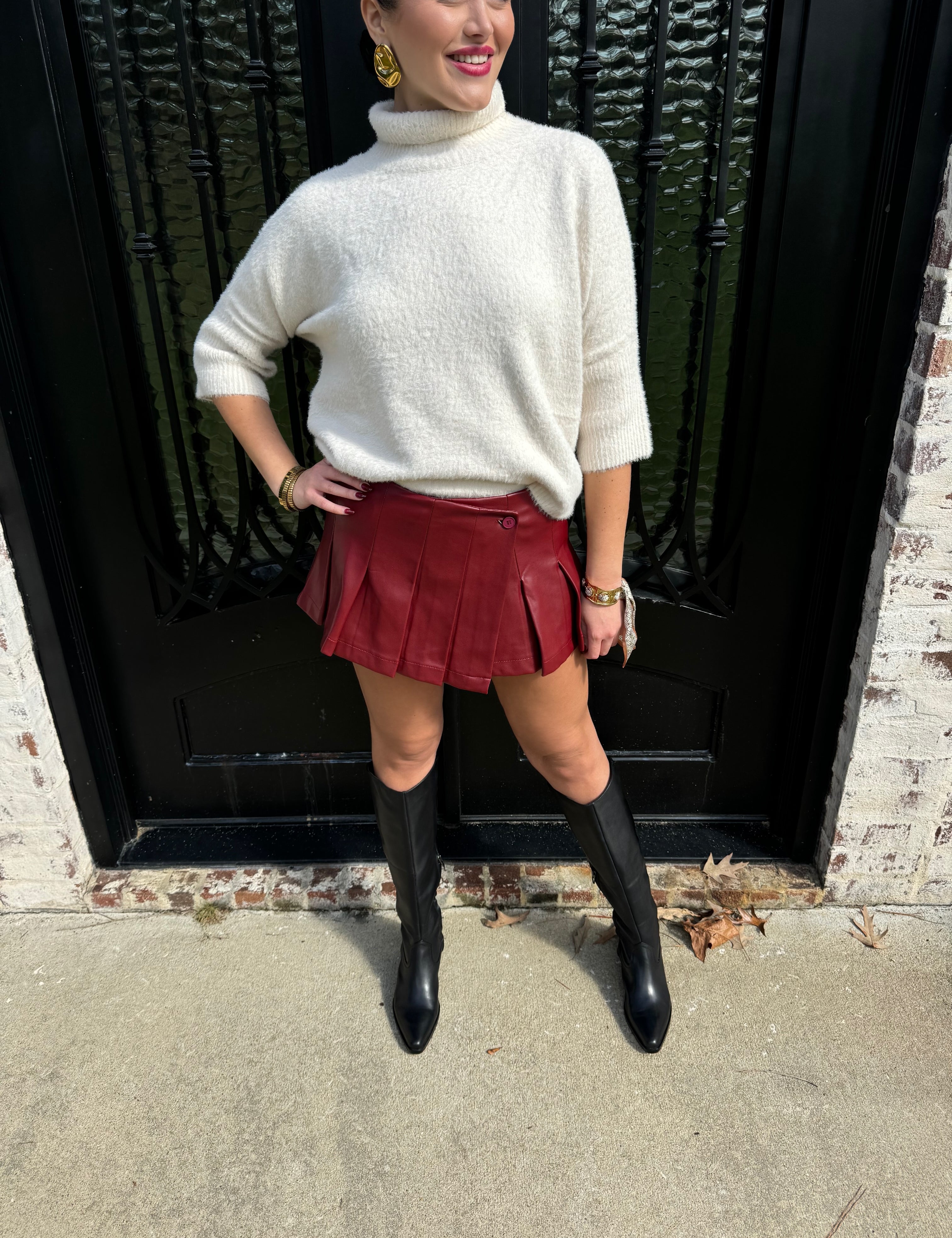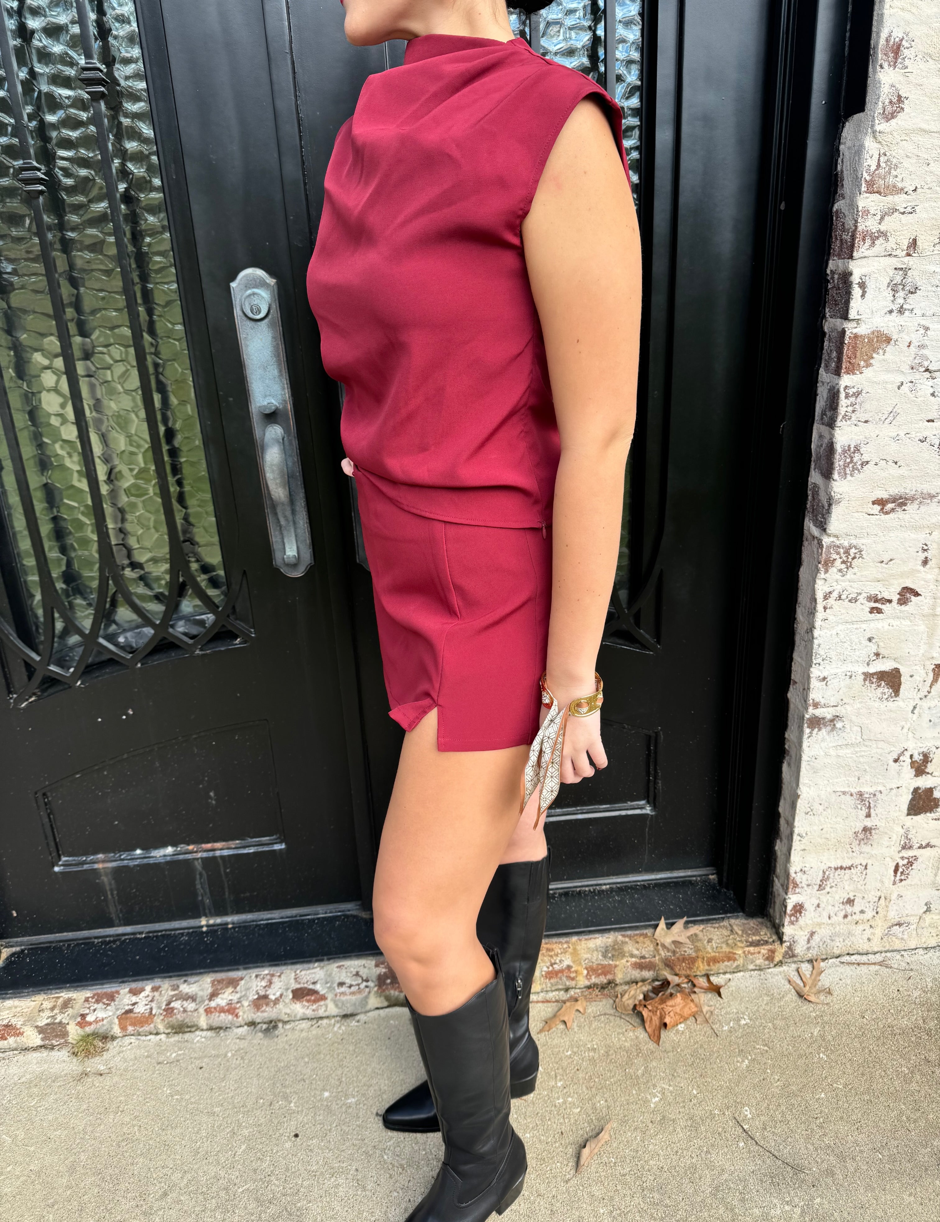 Tractr High Rise Coated Ankle Crop Flare in Dark Cherry