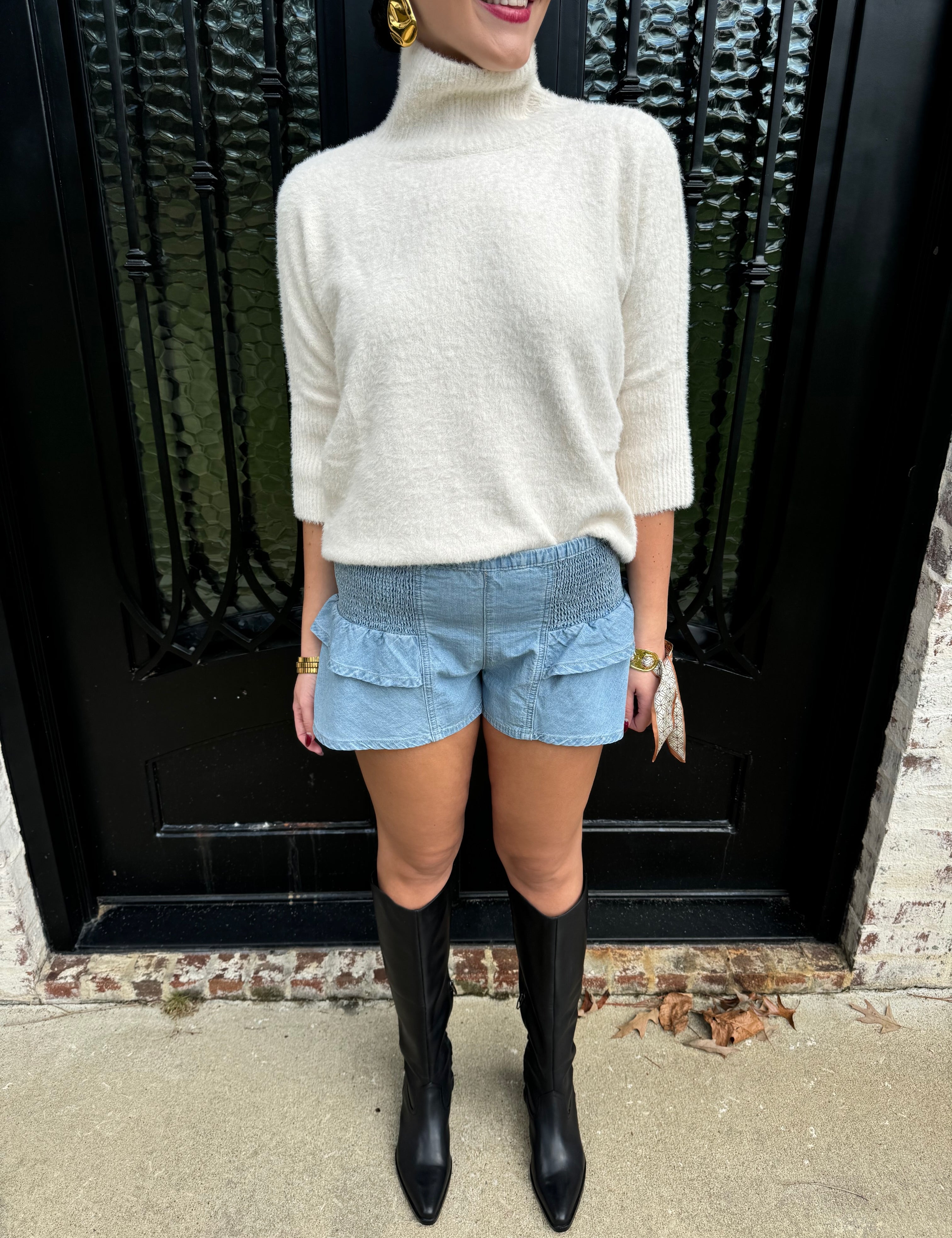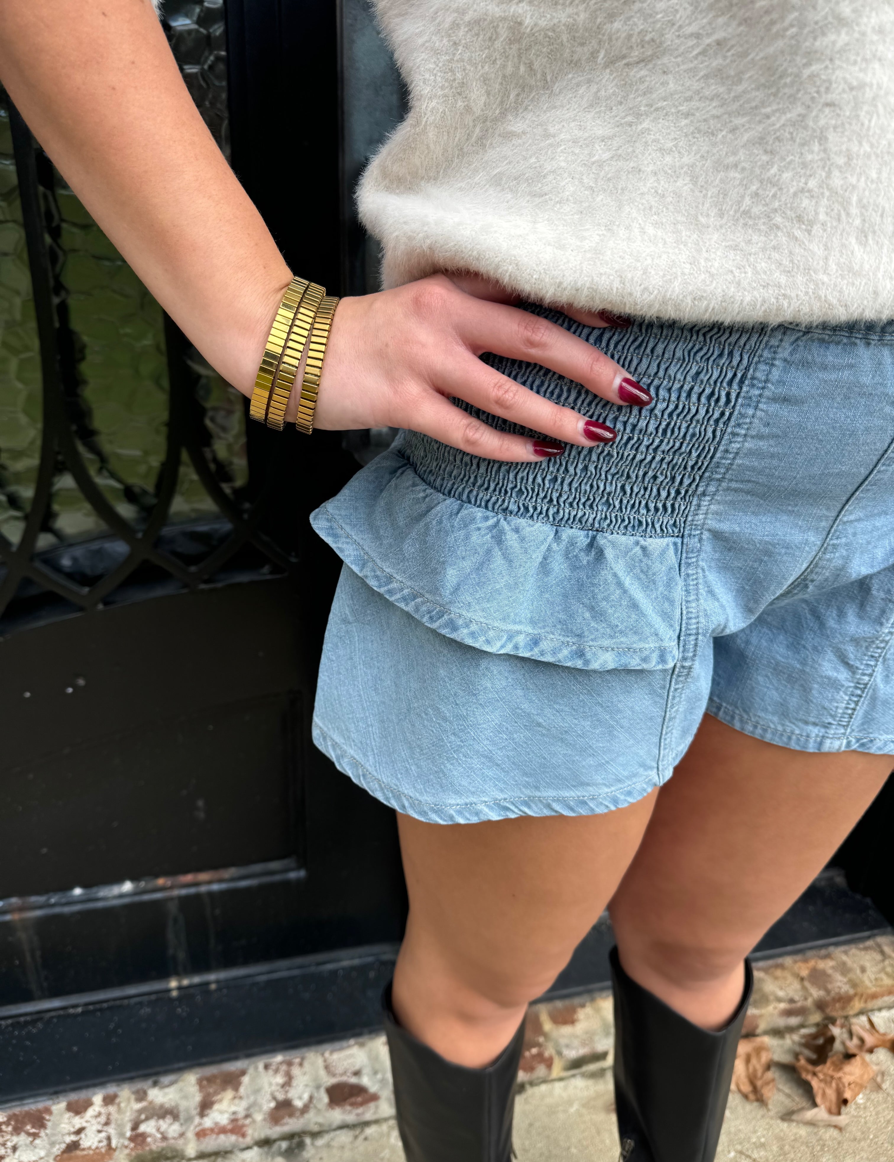 Langley Ruffle Mini Denim Shorts in Mineral Wash