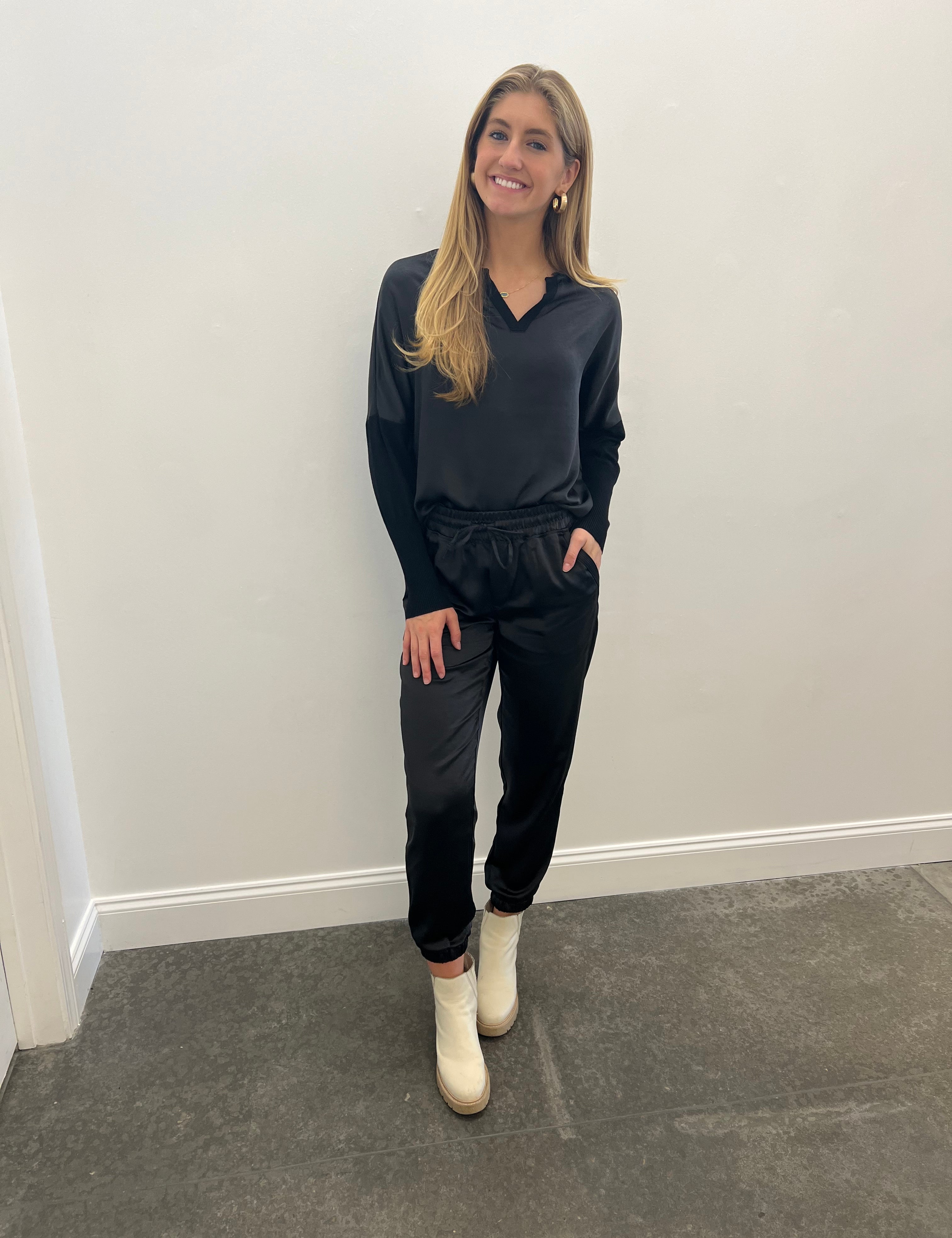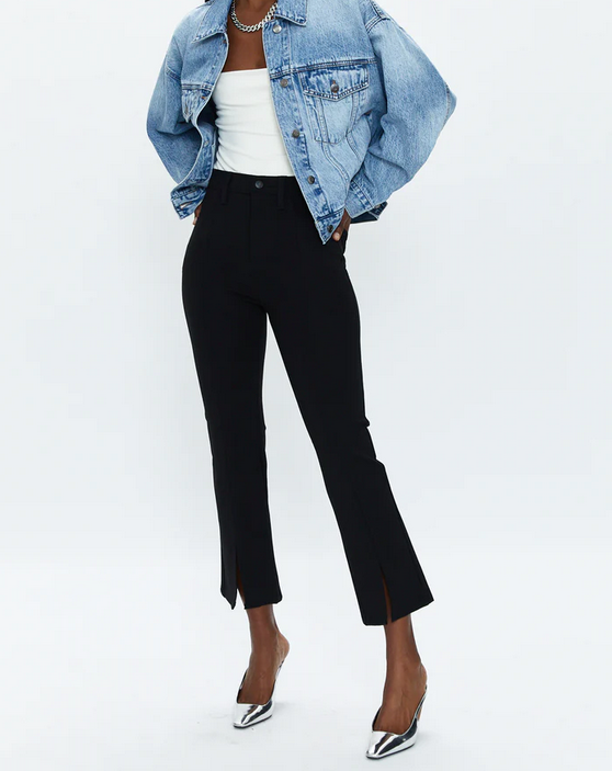 Pistola Lennon High Rise Crop Boot Cut with Front Slit in Black Ponte Knit