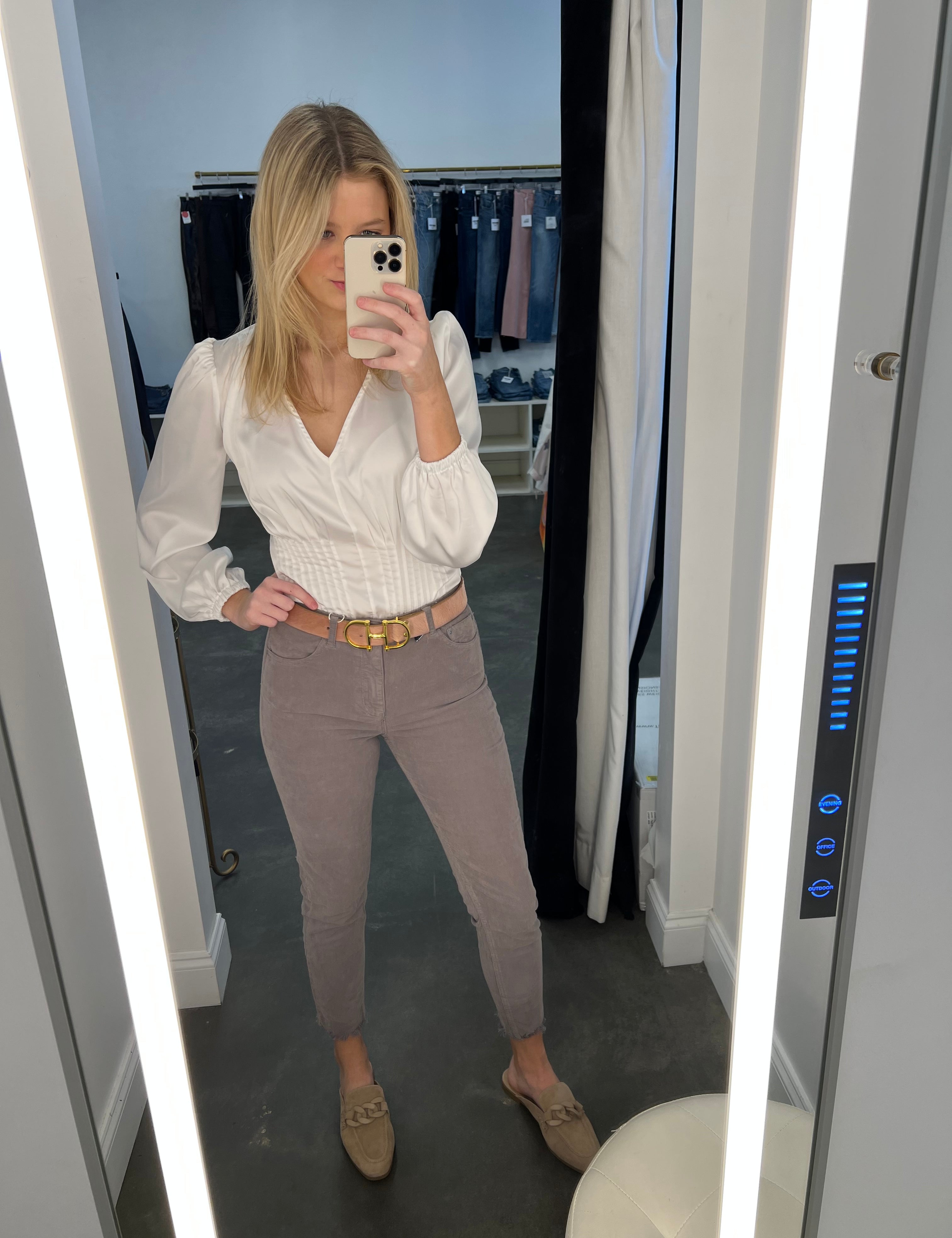 Tractr Mona Corduroy Raw Hem Skinny Grey Jeans