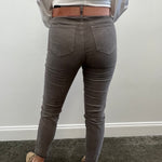 Tractr Mona Corduroy Raw Hem Skinny Grey Jeans