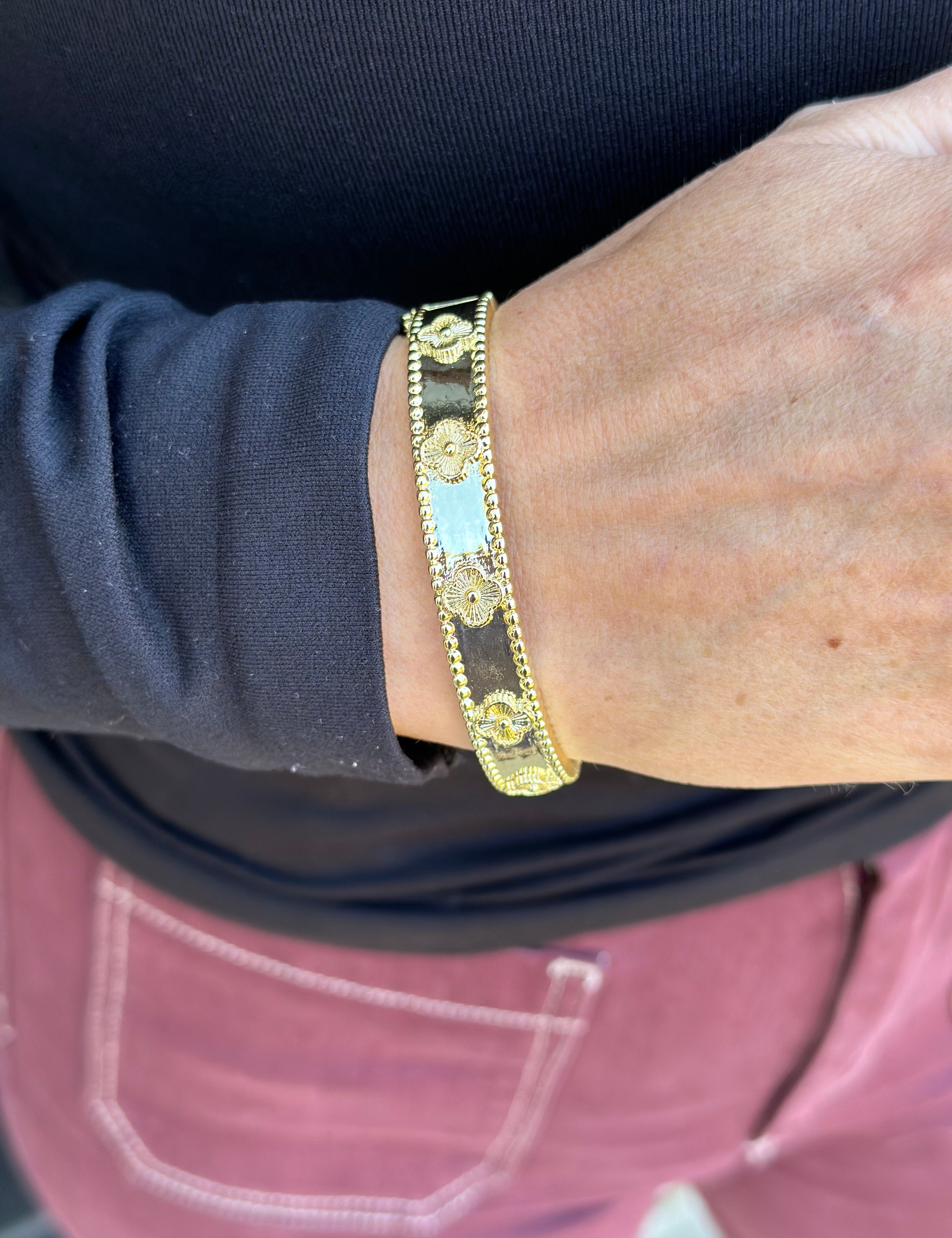 Color Clover Cuff Bracelet in Black, Green, White, and Red