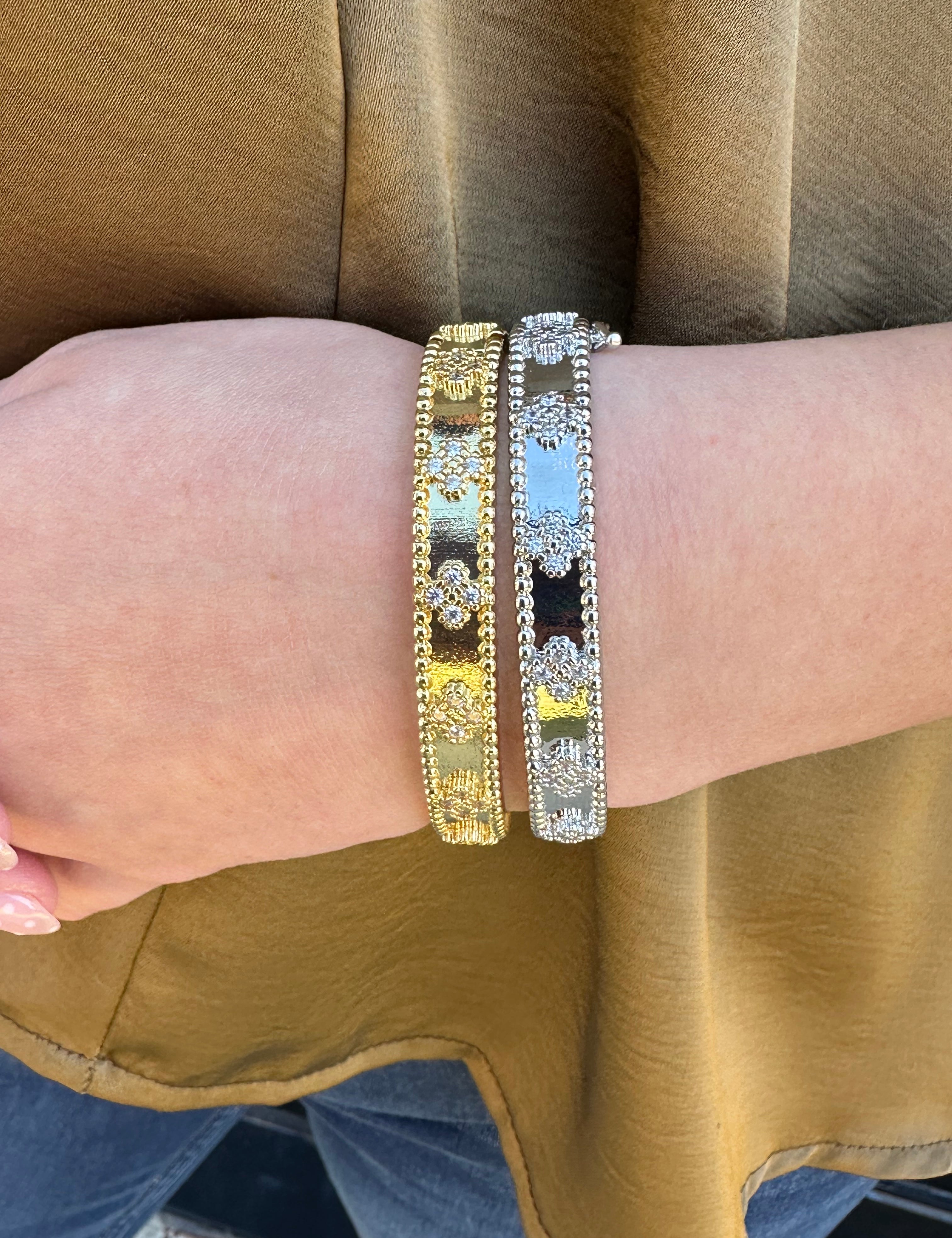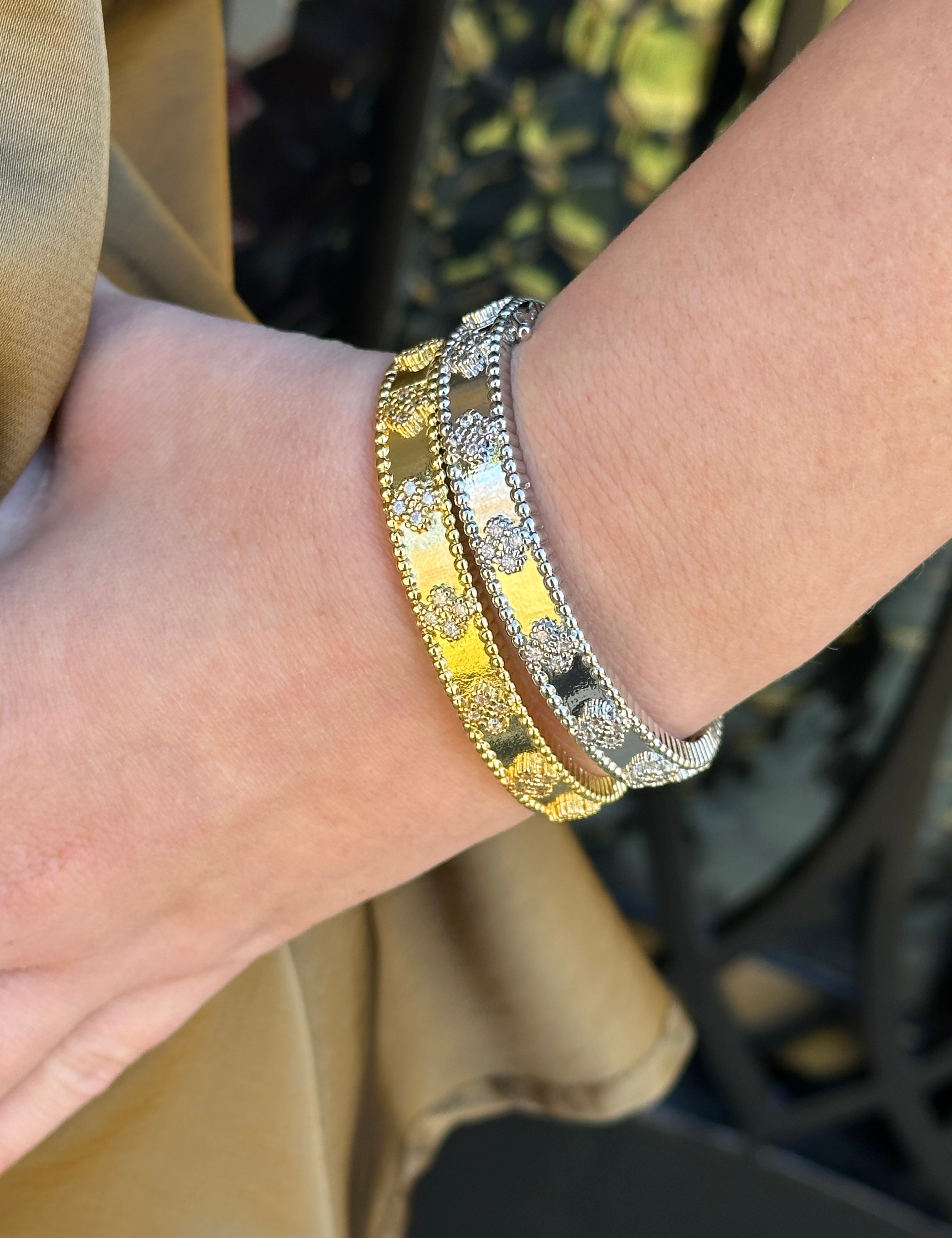 Clover Cuff Bracelet in Silver and Gold