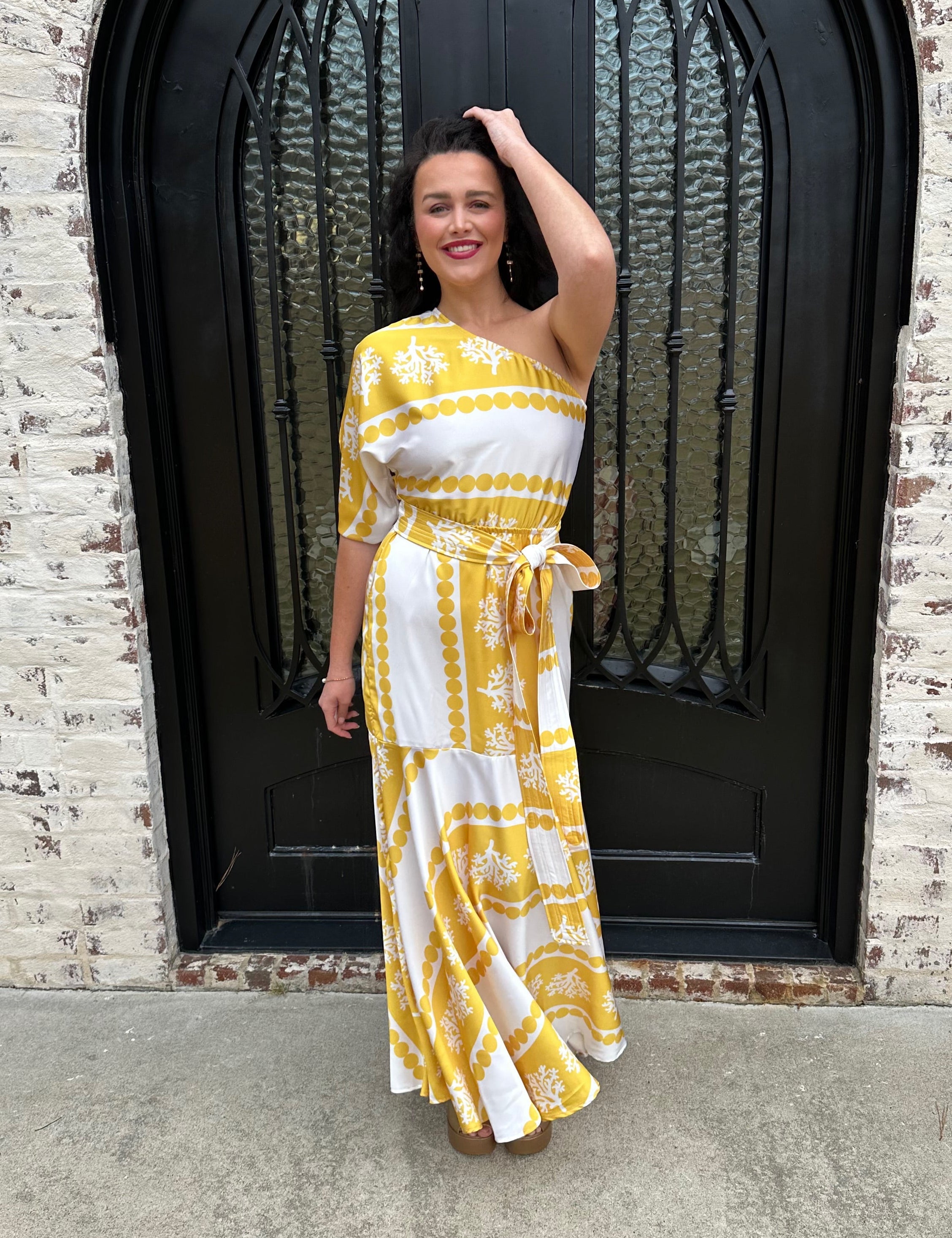 Lavi Isabella One Shoulder Maxi Dress in Yellow