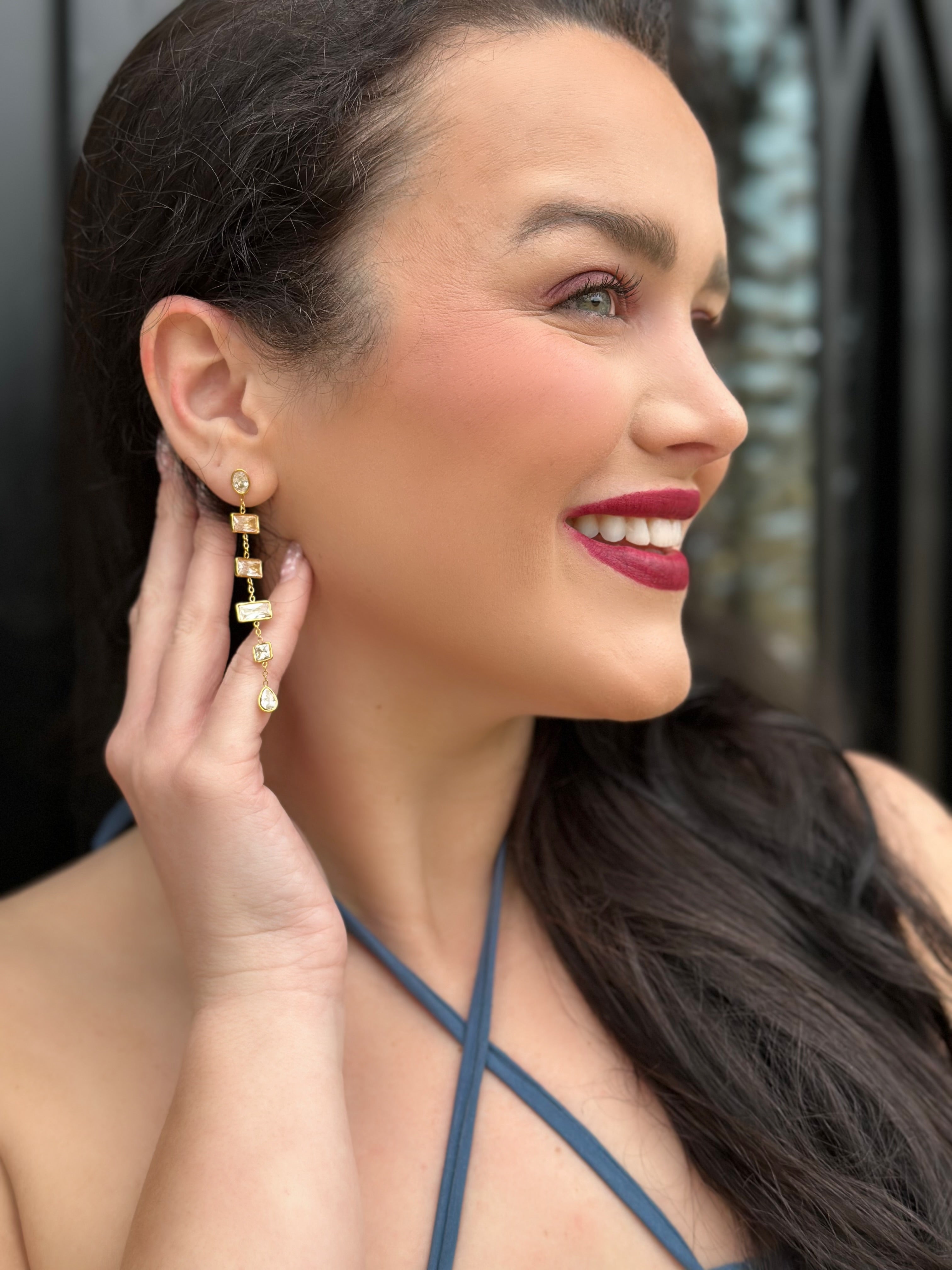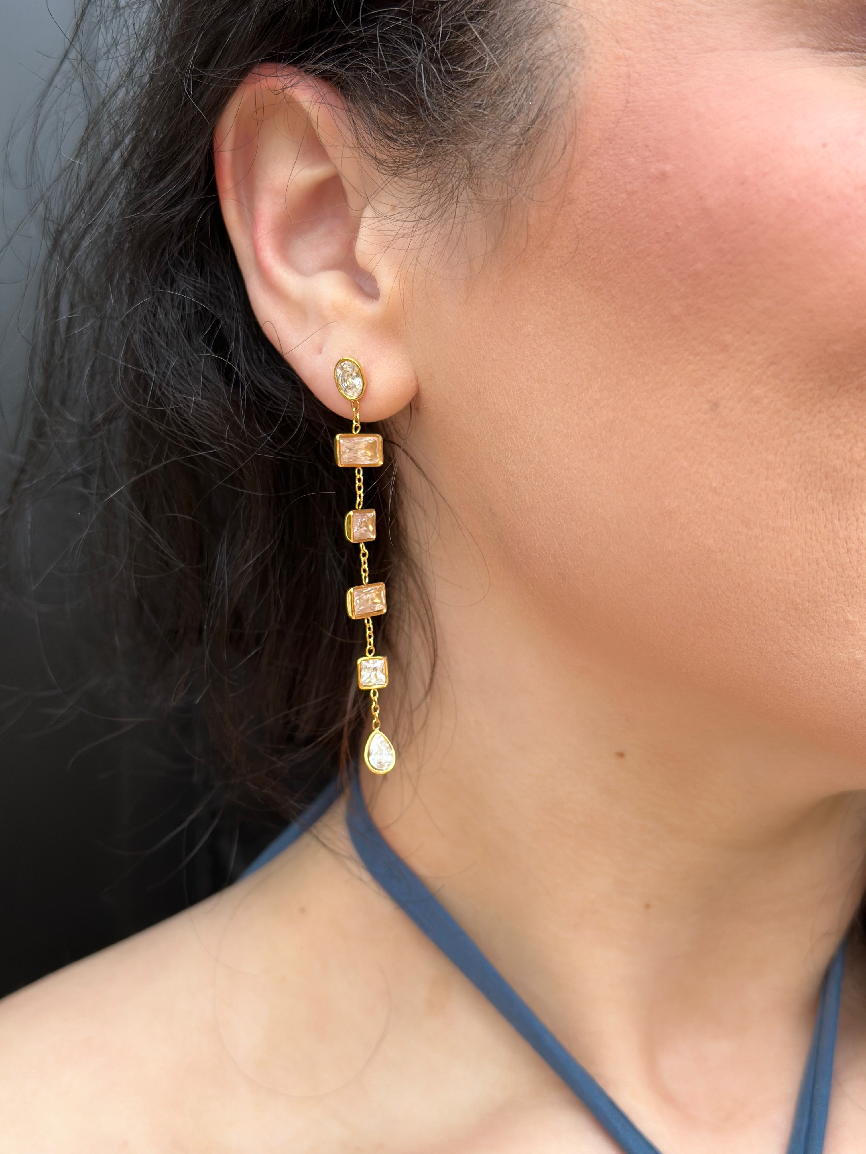 Make a refined impression with the Chansutt Layla Earrings, where crystalline rectangles dangle gracefully to frame your face with understated luxury. These drop earrings deliver versatile sophistication—equally at home during boardroom meetings or evening celebrations.