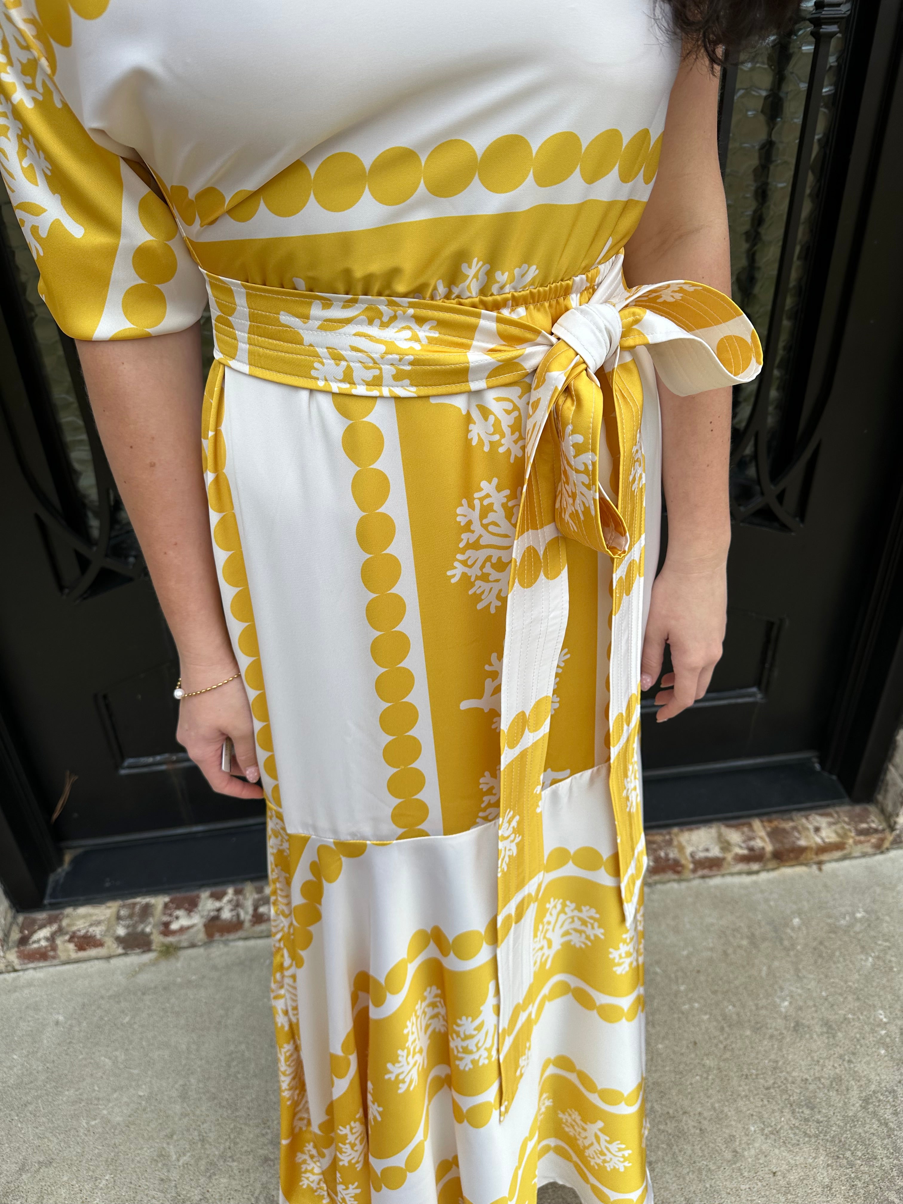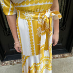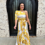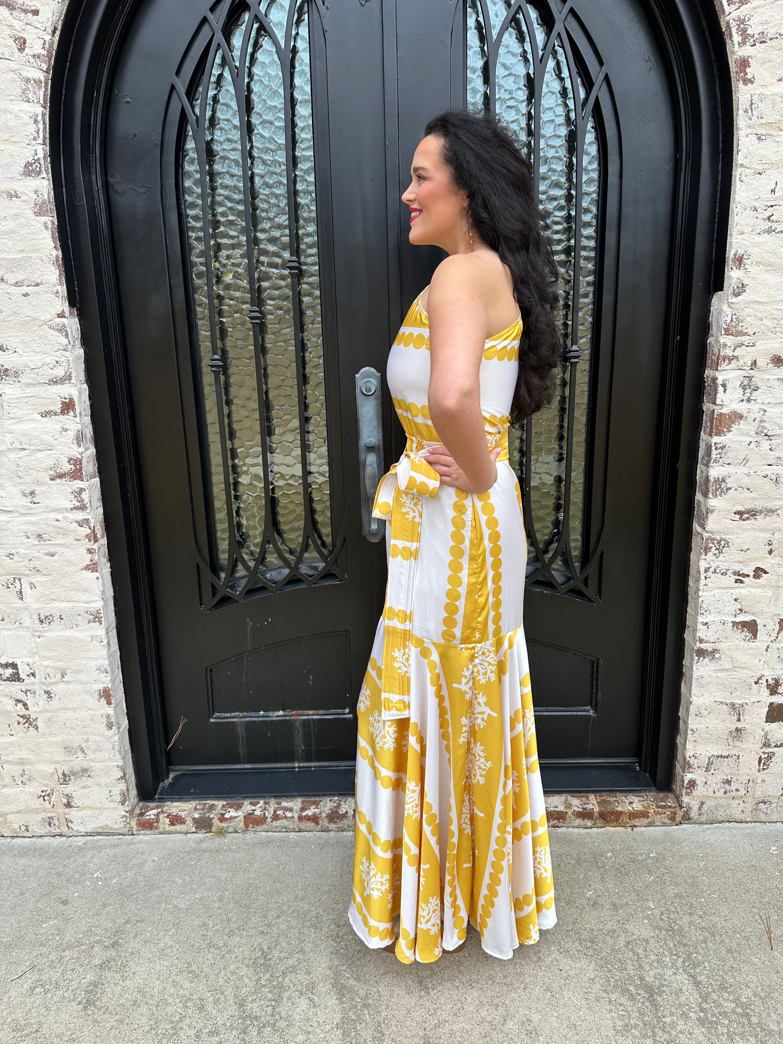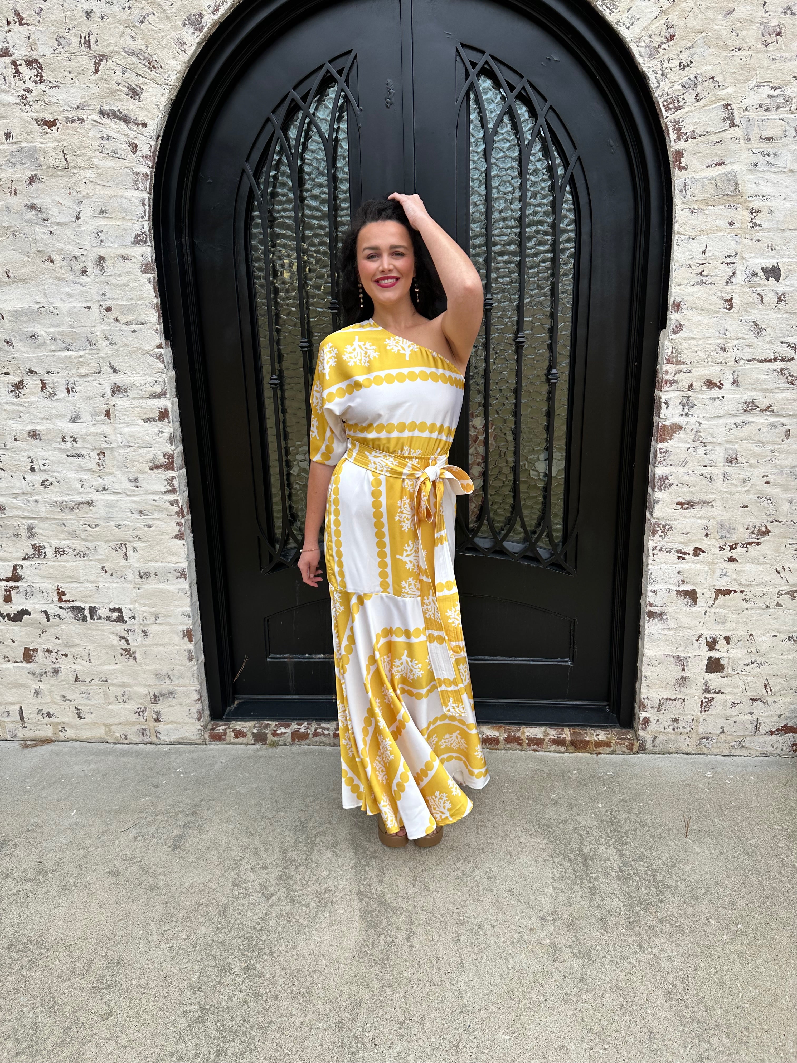 Step into the spotlight with the Lavi Isabella One Shoulder Maxi Dress, where contemporary design meets timeless elegance. The vibrant yellow and white pattern creates an unforgettable first impression, while the one-shoulder cut delivers a modern, fashion-forward edge. Control your look with dual styling options—fasten the optional tie waist for a sculpted, defined silhouette, or embrace the elastic waist for unrestricted comfort and ease. Perfect for weddings, galas, date nights, or any occasion demanding sophistication, this maxi dress transitions seamlessly from season to season. Invest in a piece that celebrates your individuality and ensures you'll always feel poised, powerful, and utterly captivating.