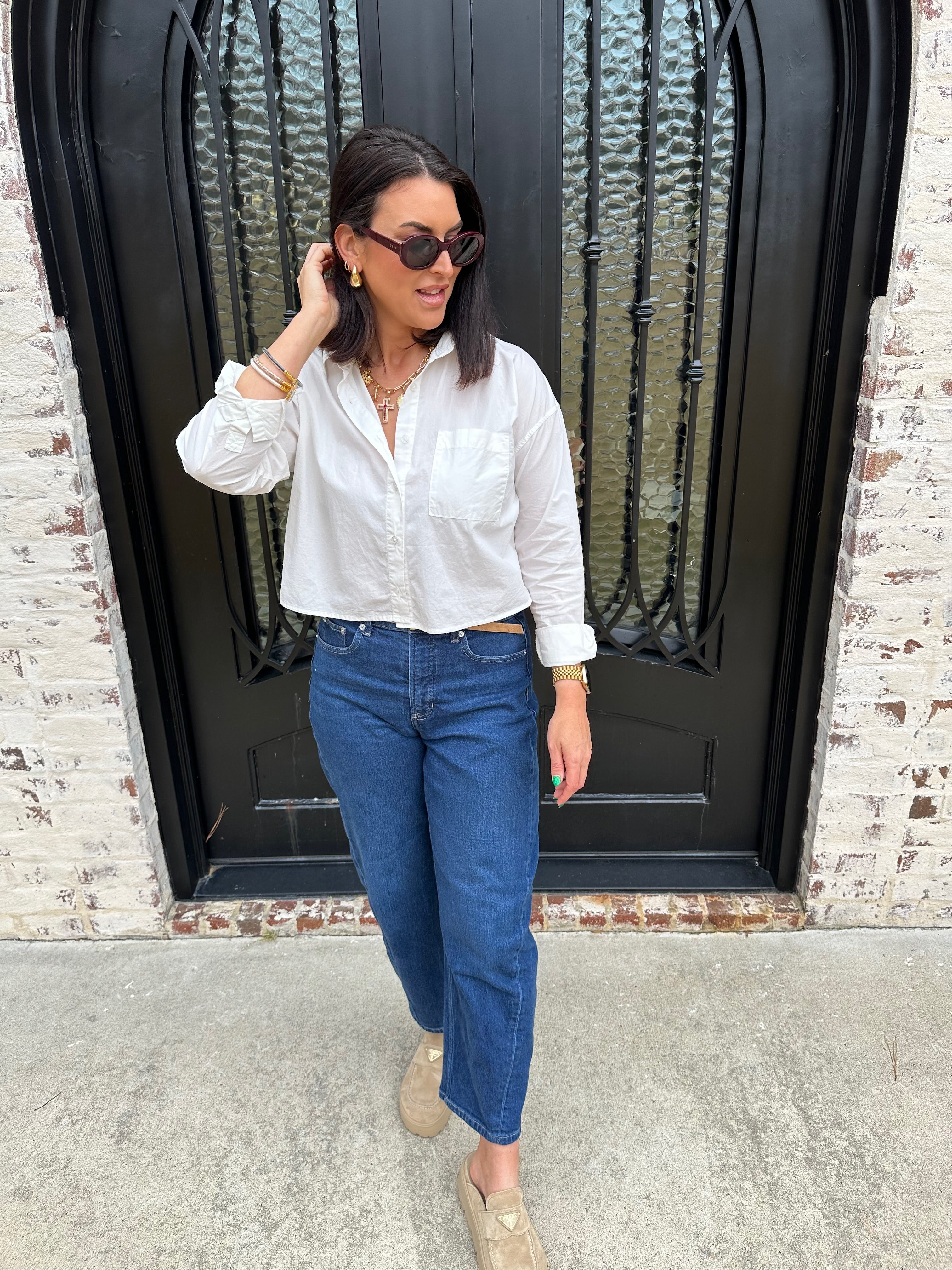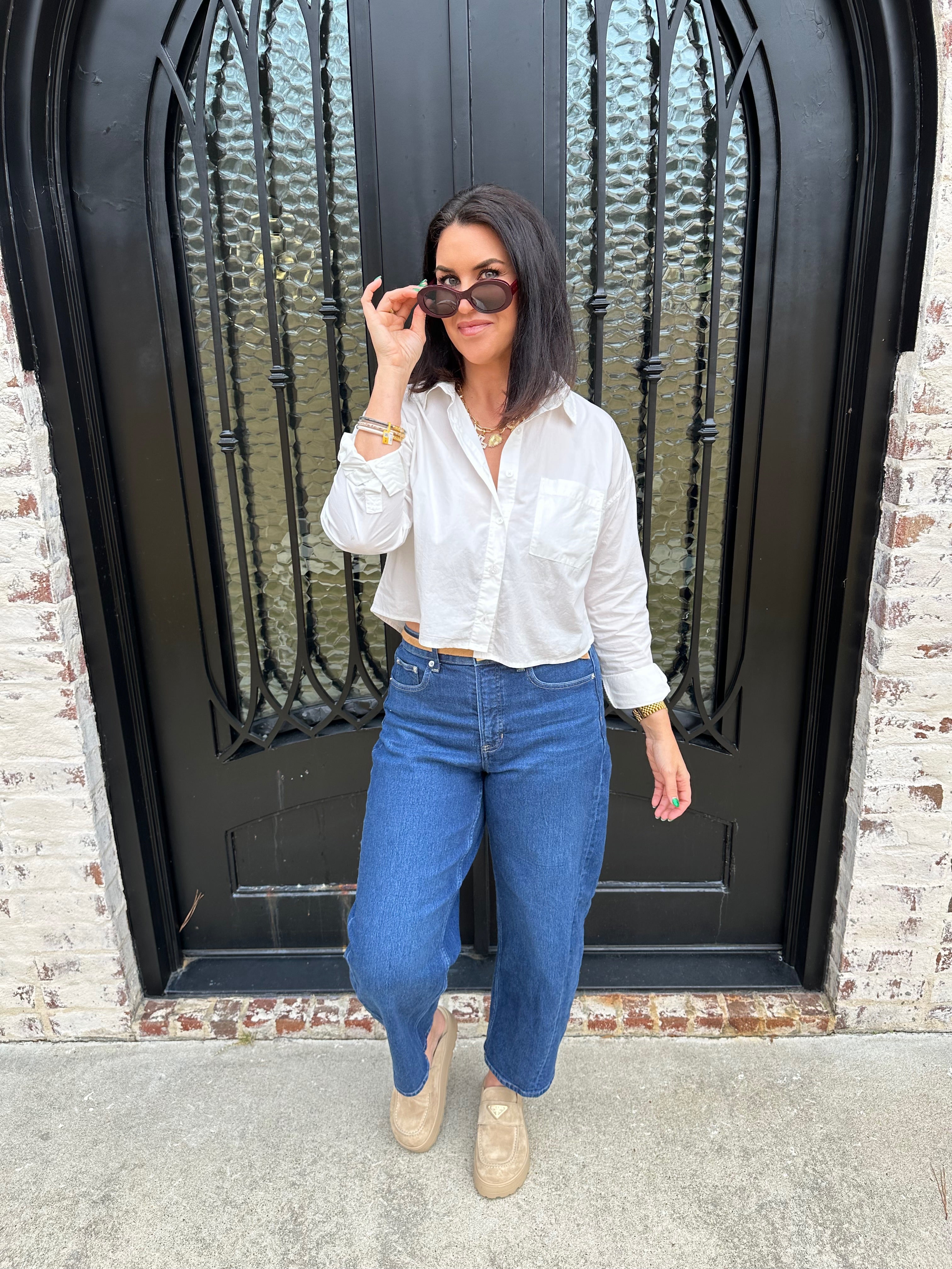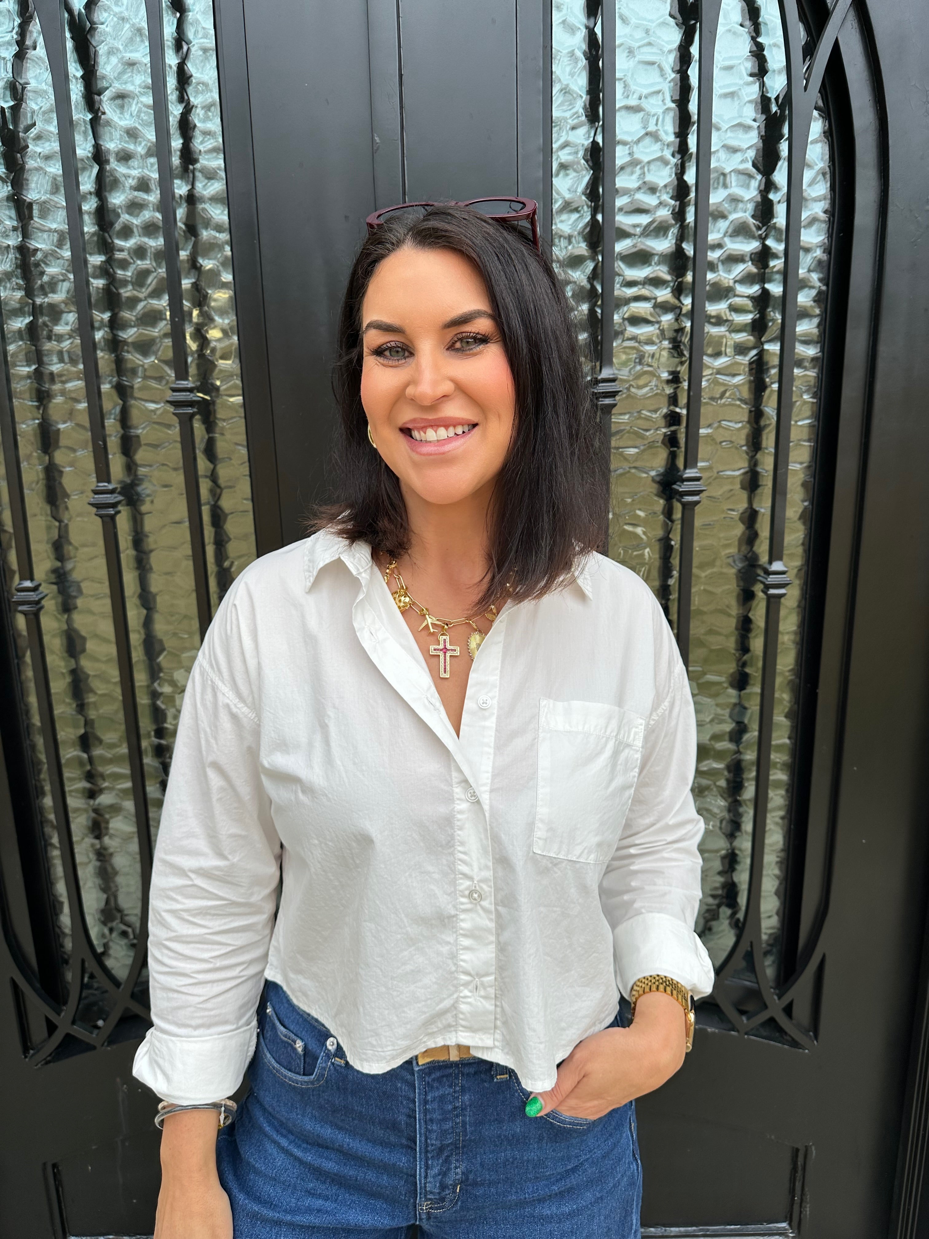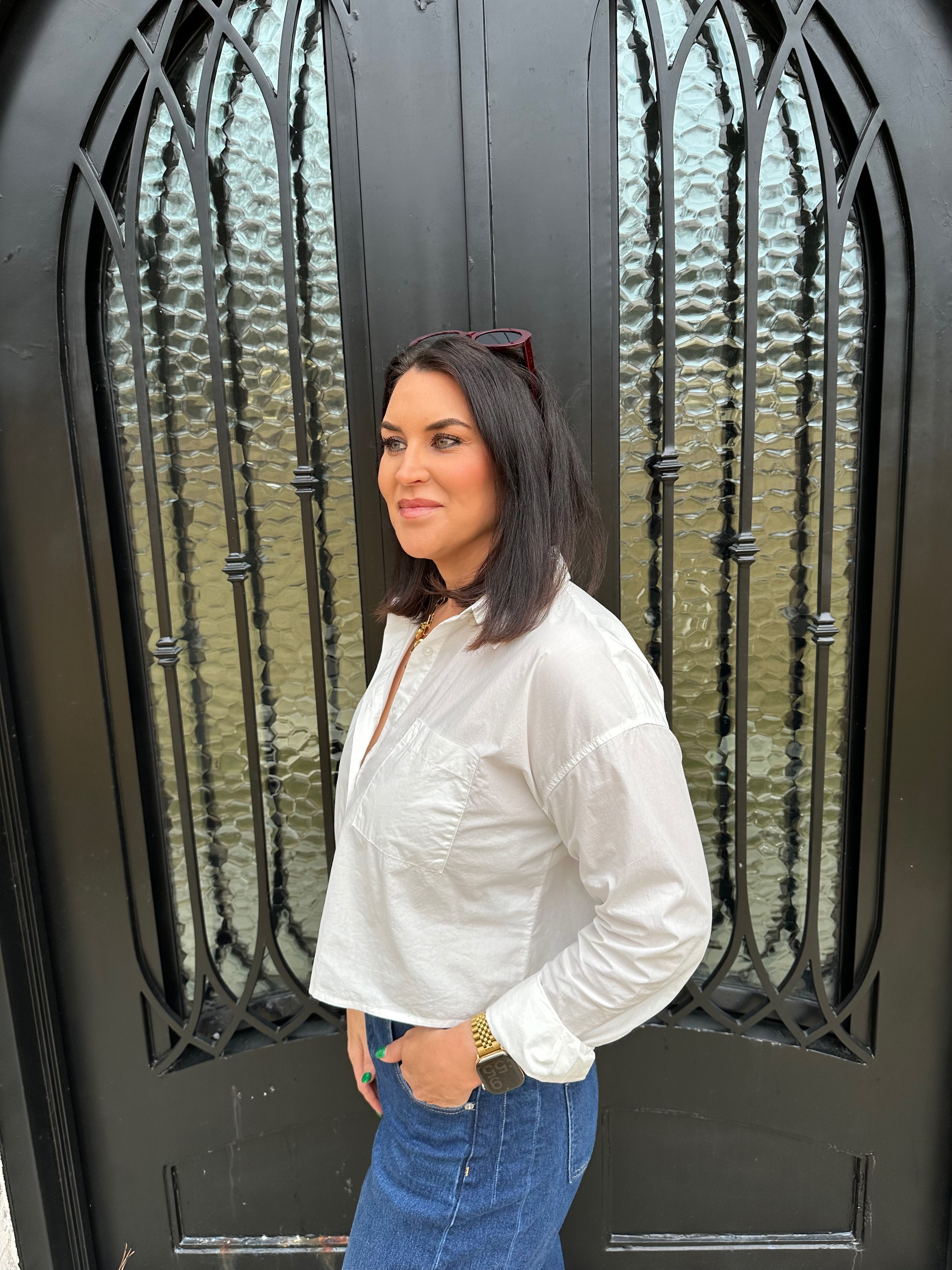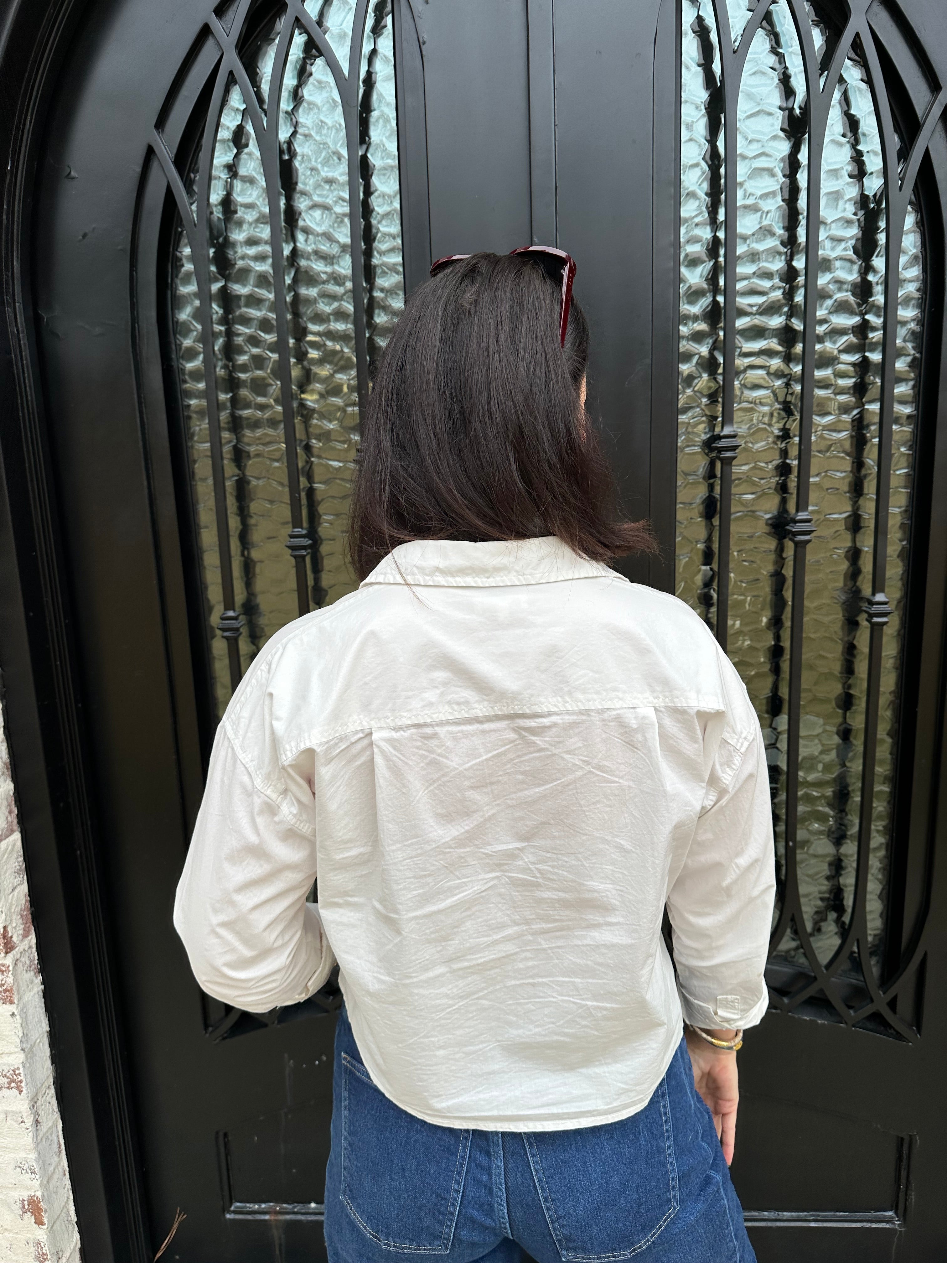 Crisp and lightweight, this cotton poplin button-up instantly elevates any outfit. Designed with a meet-and-greet fit and straight hemline, it feels modern and easy to style with denim, skirts, or tailored pants for a refined everyday look.