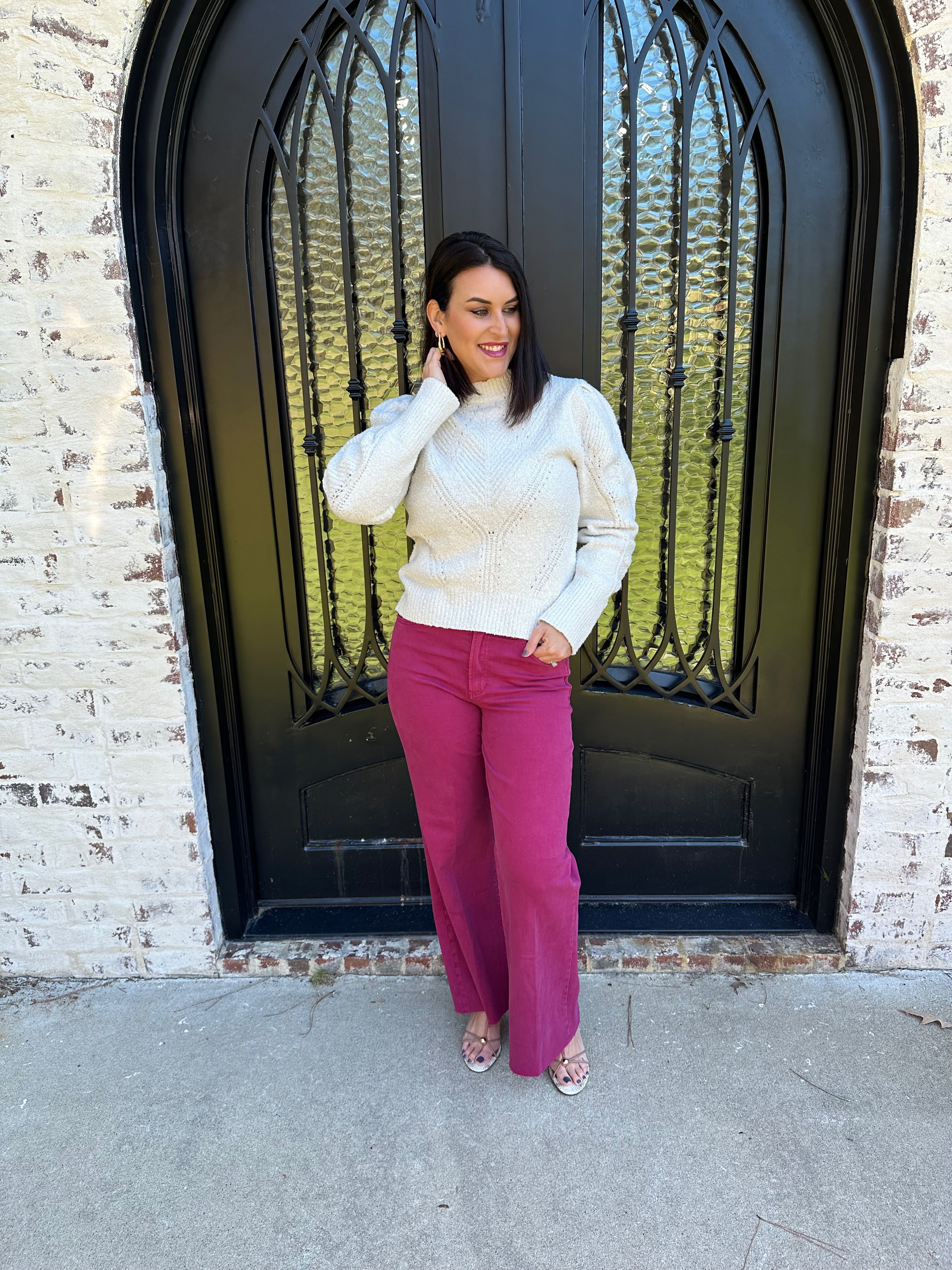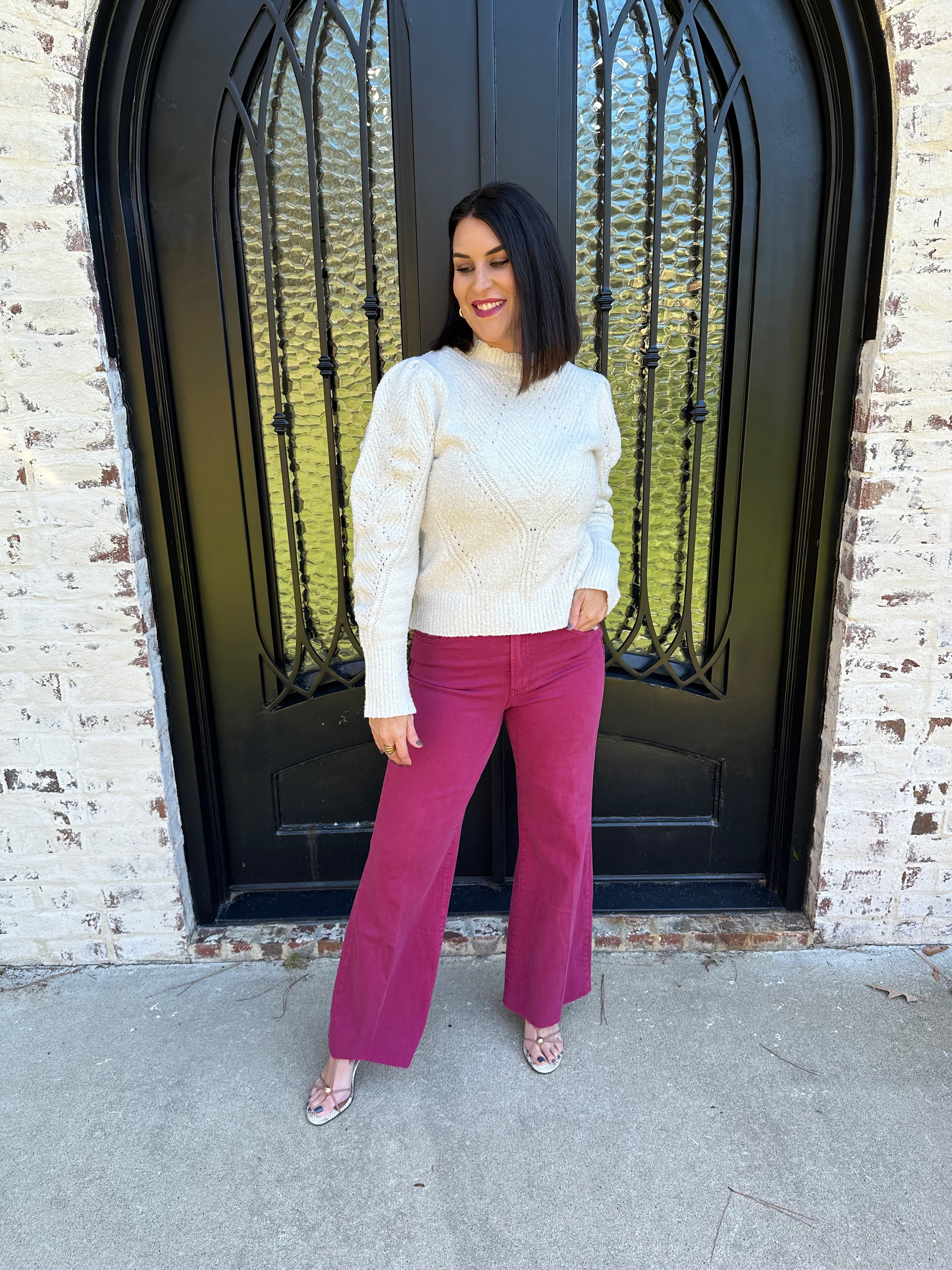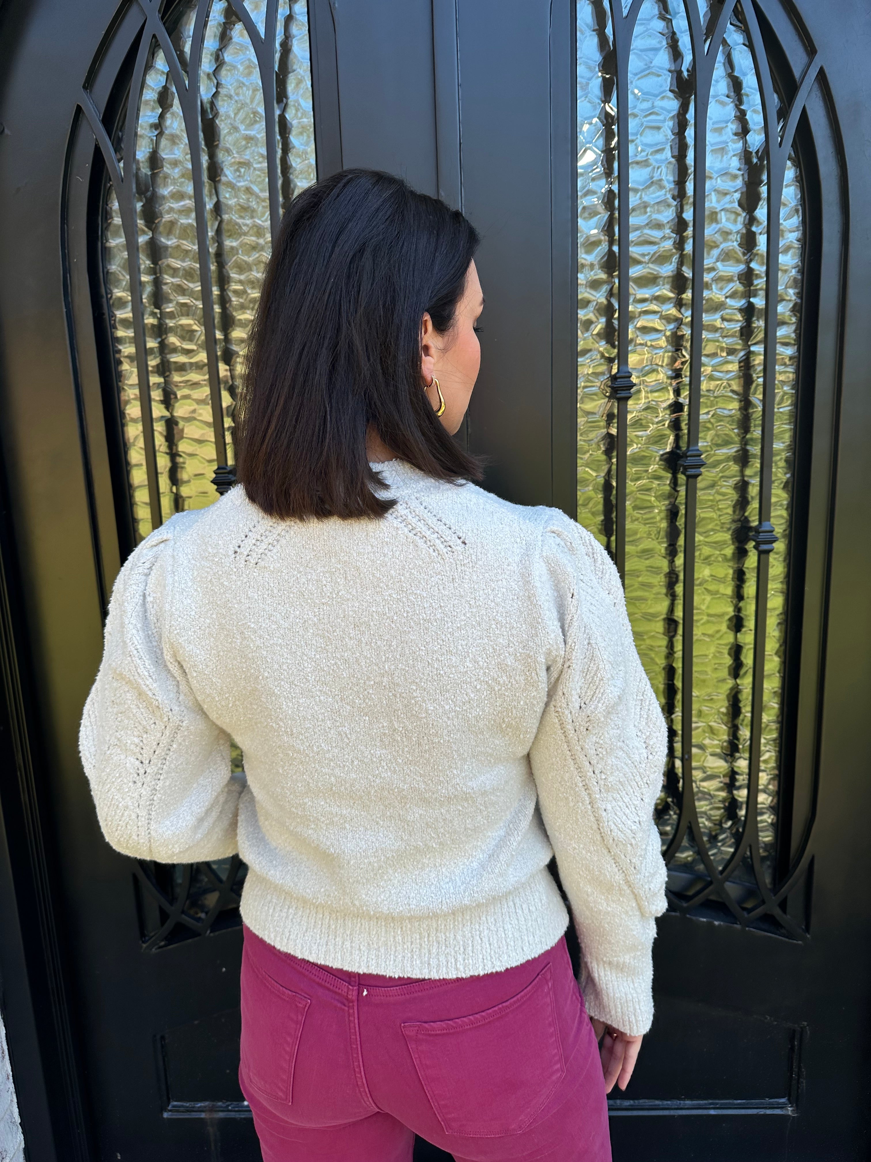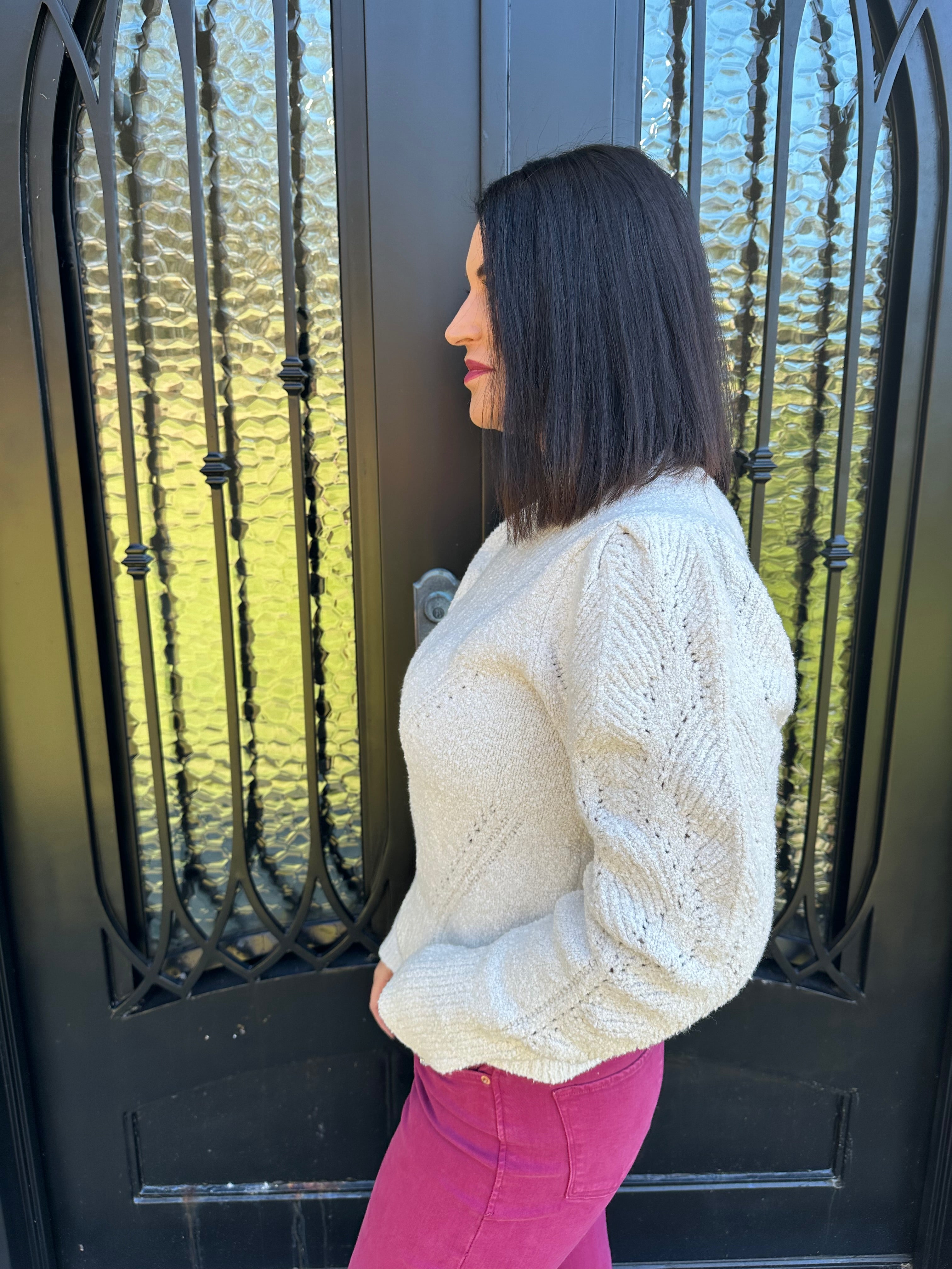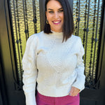 Aliza with puff sleeve is style and comfort with our long sleeve drop needle design sweater.