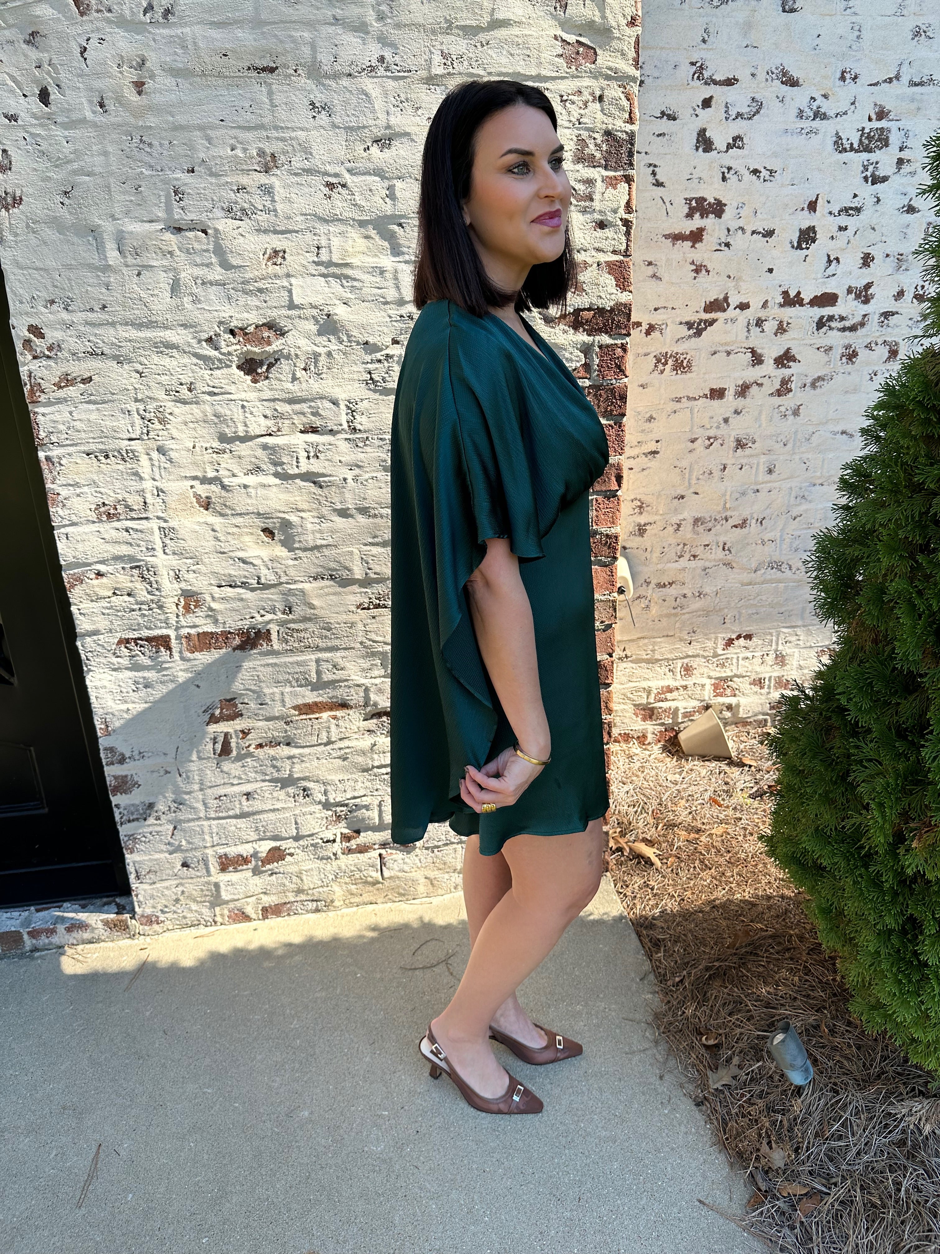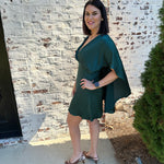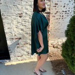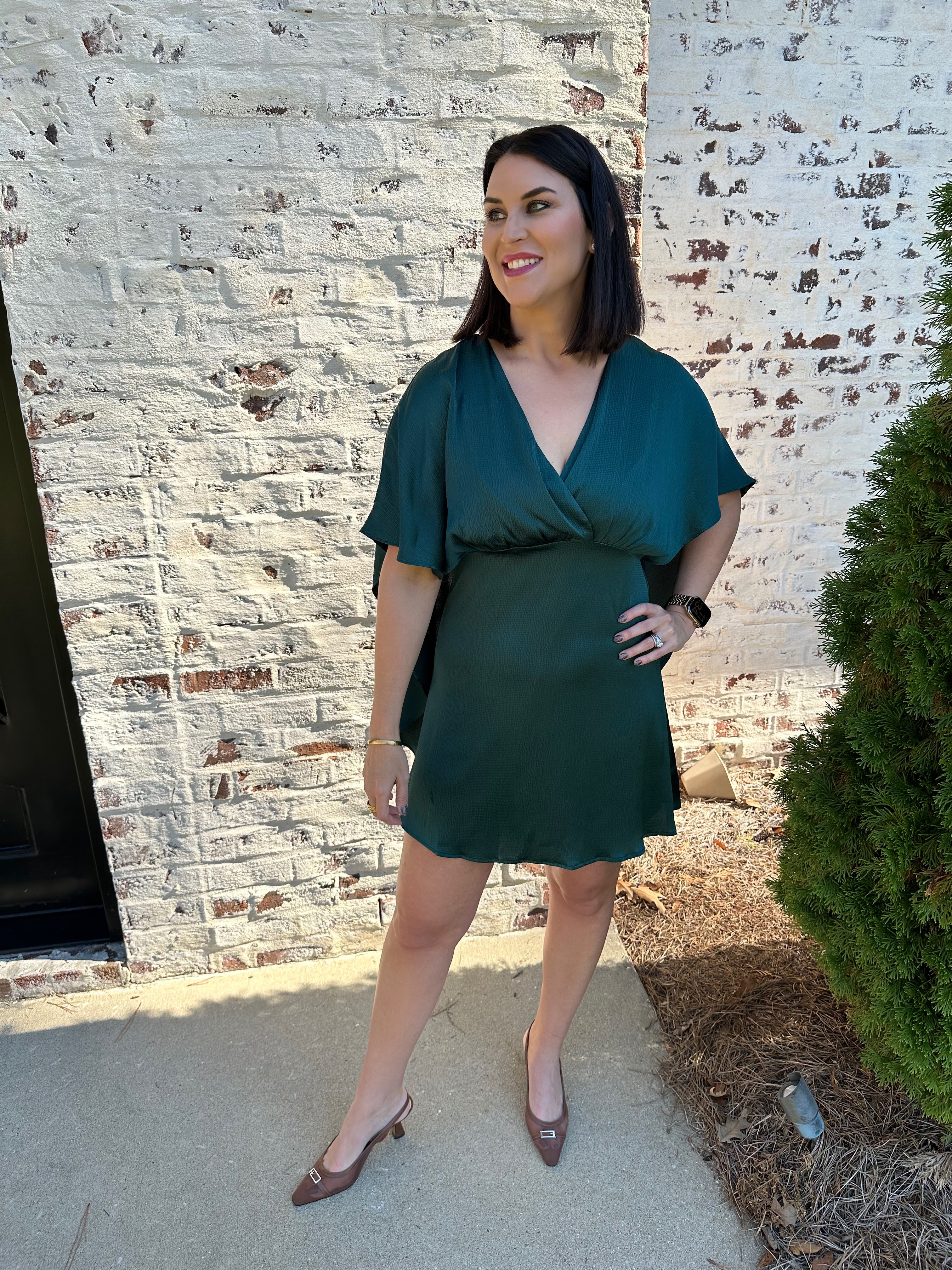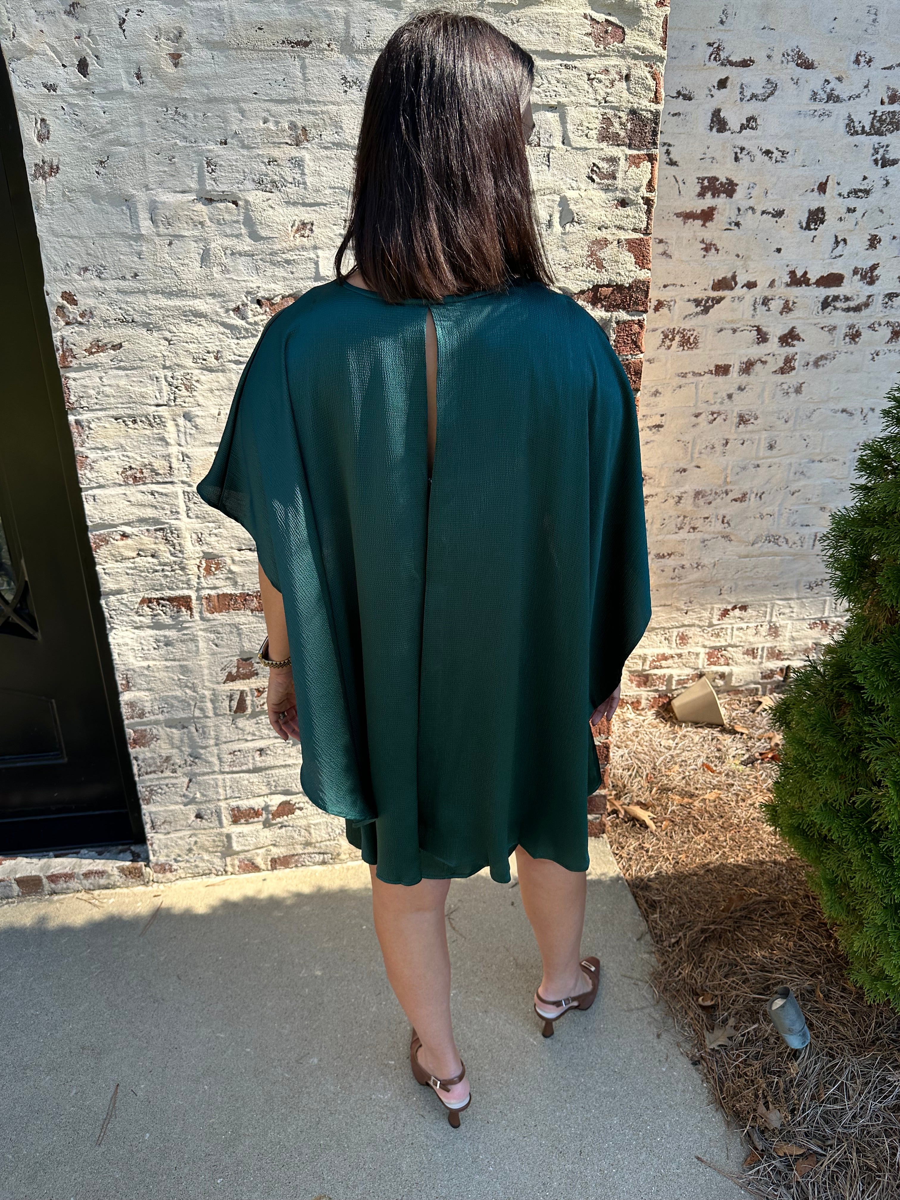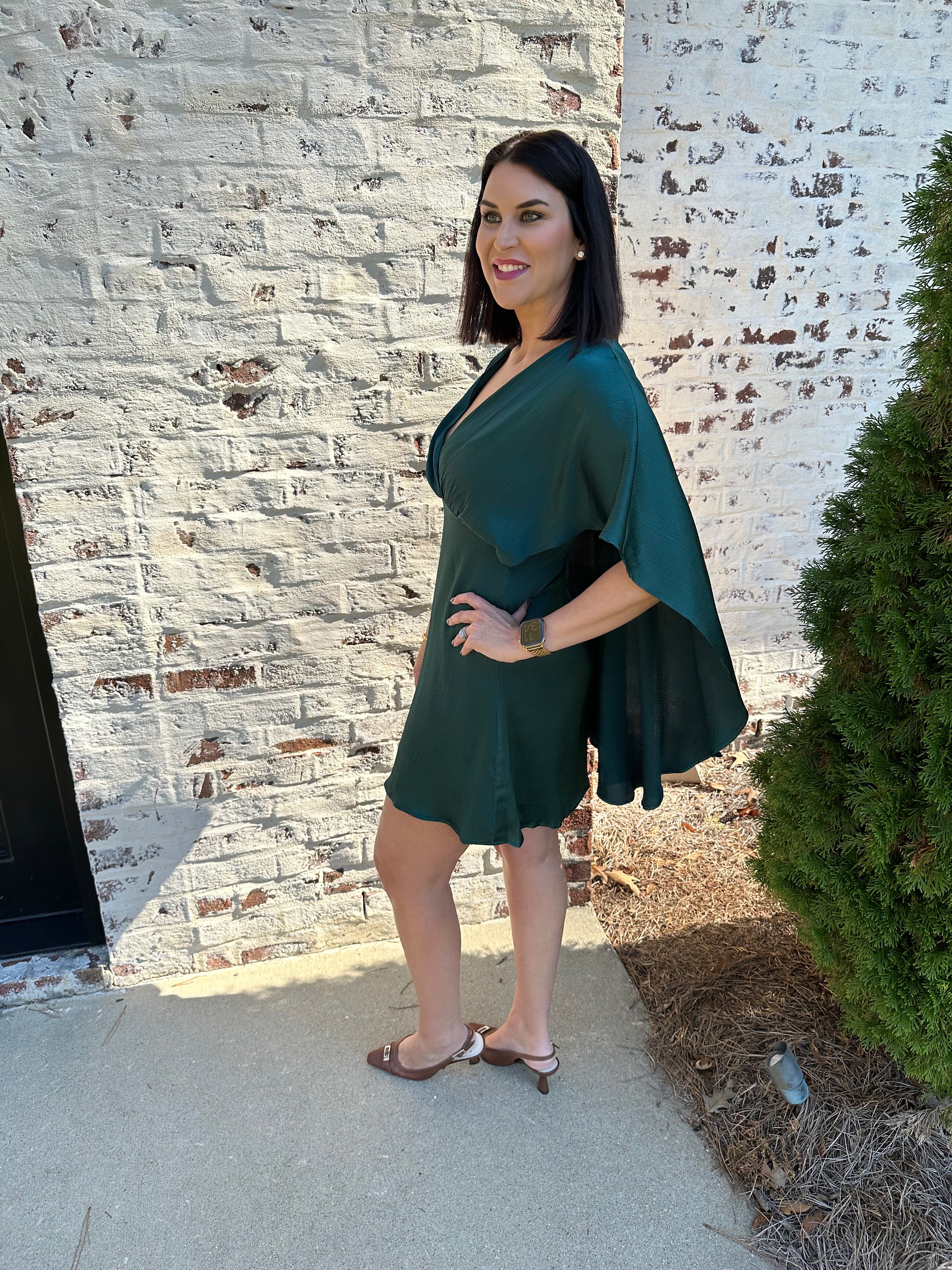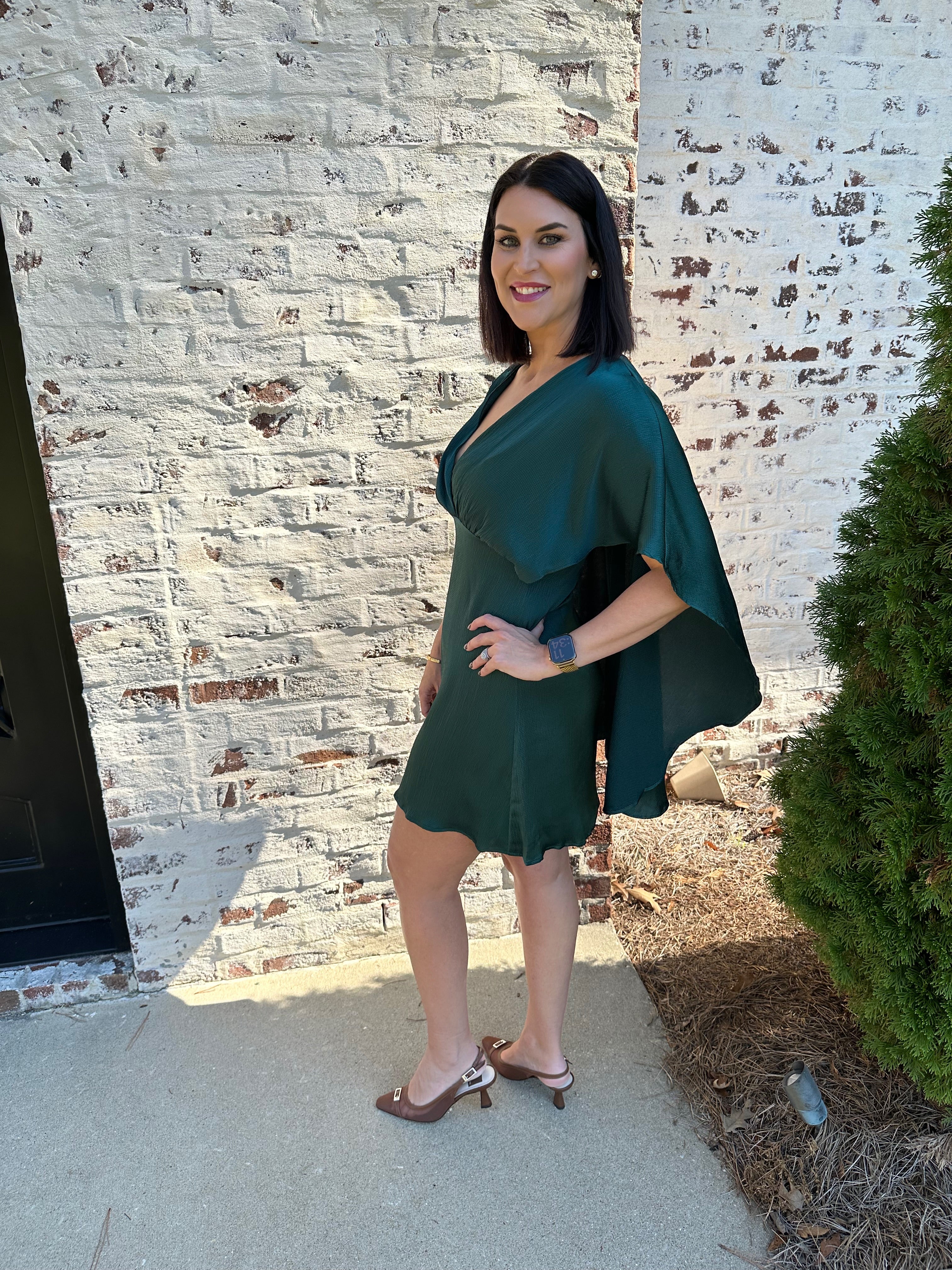 Turn heads at your next celebration in the Aria Satin Cape Dress in Dark Teal. This sophisticated mini dress showcases premium satin construction with a graceful cape that flows from the short sleeves, creating an instantly polished silhouette. The discreet back zipper ensures a seamless fit, while the jewel-toned dark teal shade brings understated luxury to any occasion. Whether you're attending a wedding, holiday cocktail party, or upscale gathering, this dress delivers the perfect balance of elegance and contemporary style. The effortless drape of the cape adds movement and dimension, ensuring you'll feel confident and radiant all evening long.