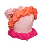 The Remembrance top adds a playful twist to your day to day with this off the shoulder top. It features bold ruffles in shades of pink and orange. Structured and dynamic design, which pairs perfectly with our Remembrance skirt.