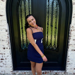 Show off your team spirit in style with the Game Color Block Dress in Navy. This eye-catching dress features bold navy and white color blocking that captures attention, while the mesh detailing adds a trendy, breathable element for all-day comfort. Perfect for game day or casual outings, its sleek design ensures you stay both comfortable and confident. Make a bold statement and cheer in fashion with this must-have dress.