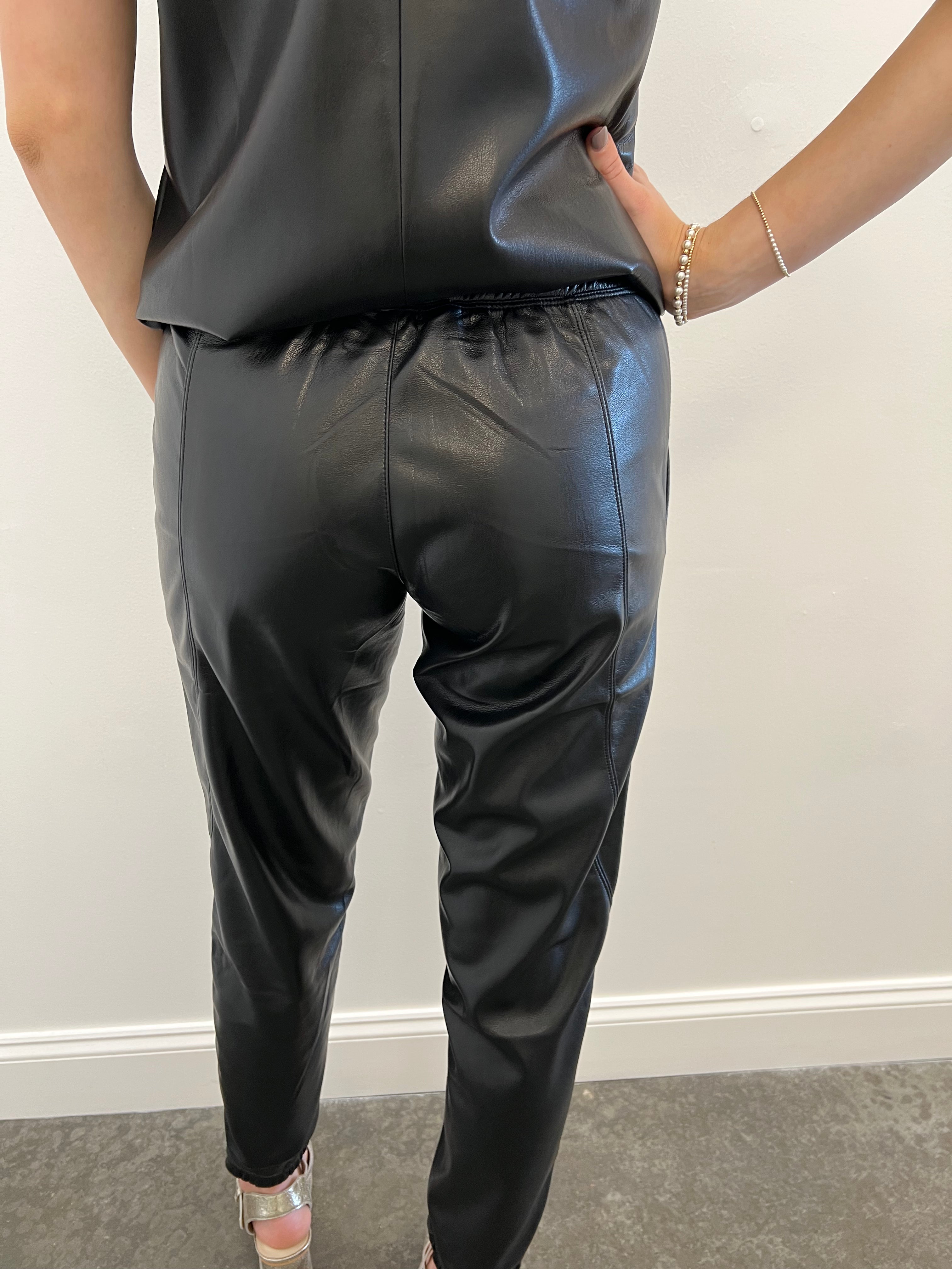 A playful take on a casual essential, our Faux Leather Jogger has a slim, tapered fit.