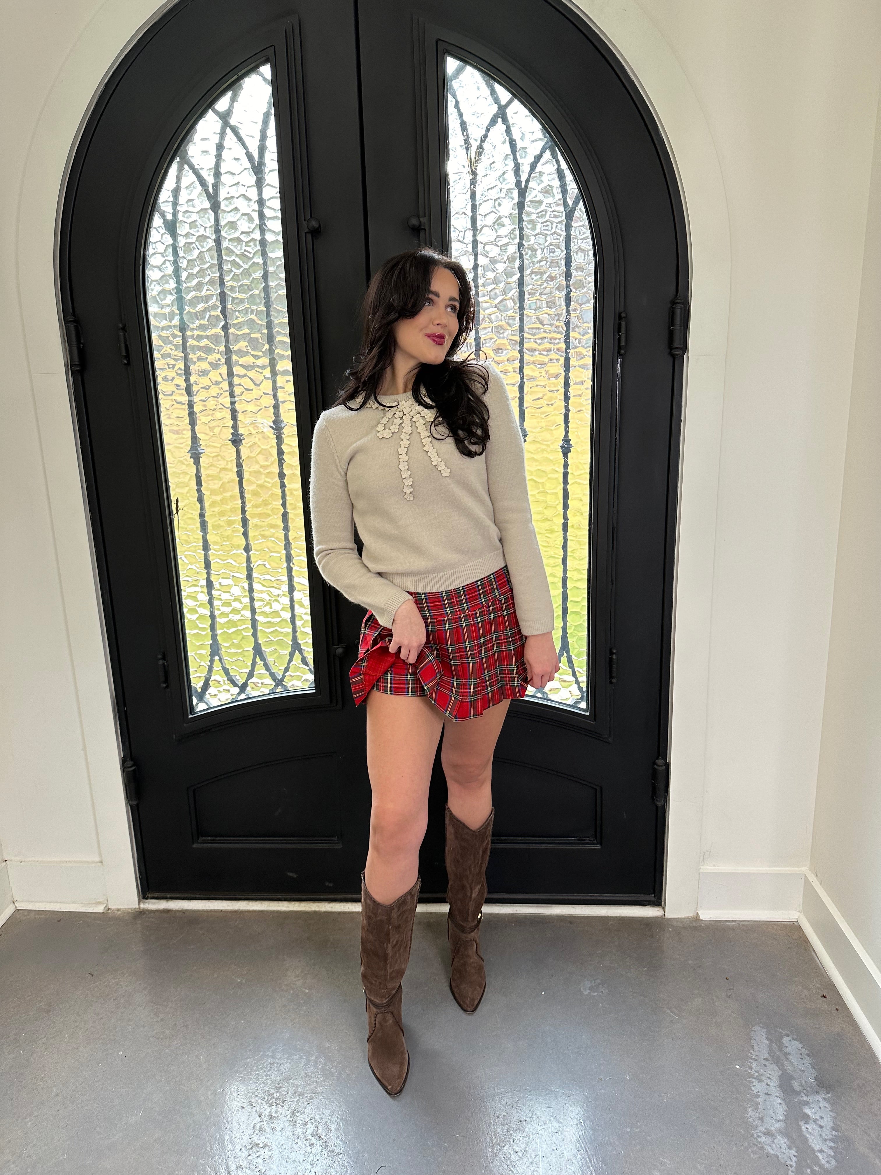 Pair with our Audrey Chocolate jeans for a cool girl aesthetic, or with our Plaid Skort with built in shorts and Jody Boots for the perfect holiday party look!