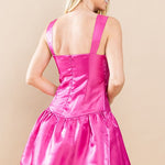 Get ready to turn heads in this Magnolia Dress! This A-line dress boasts a fitted top bodice for a flattering silhouette, while the ruffle hem and wide straps add a touch of whimsy. With a concealed back zipper, you'll feel secure and stylish at any event.