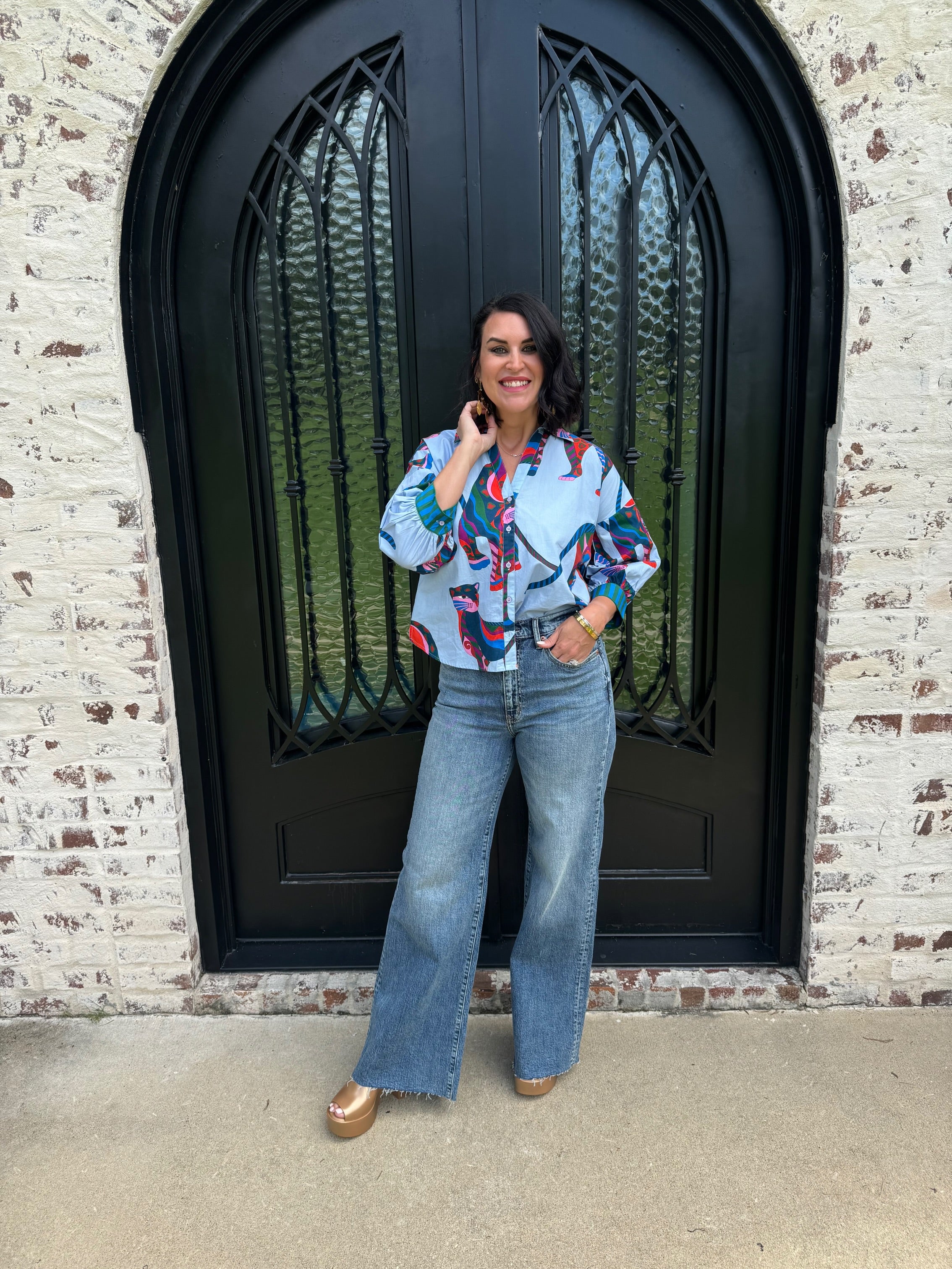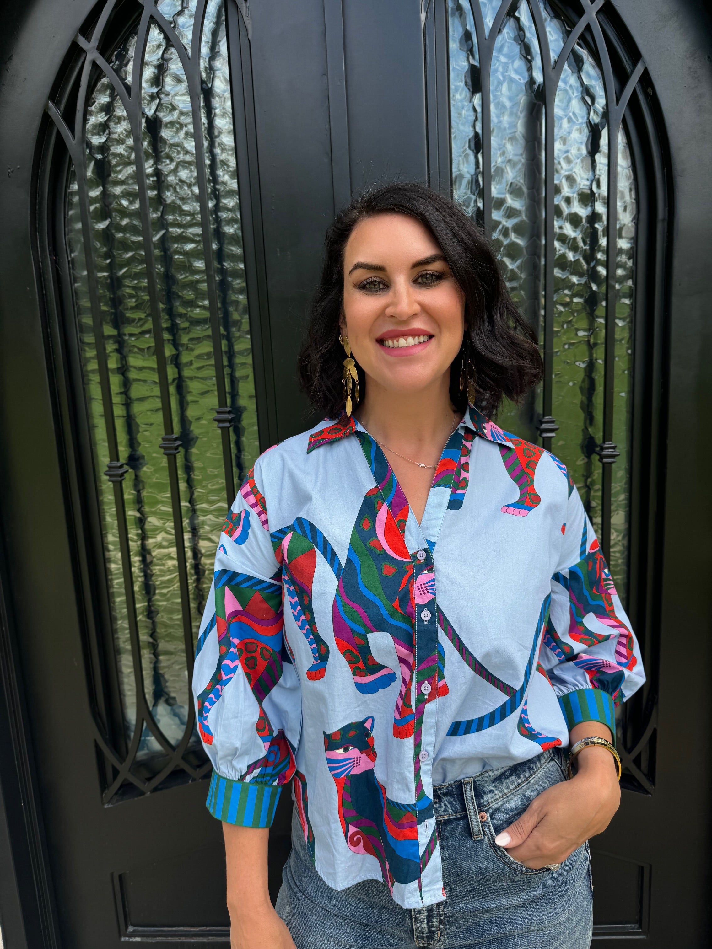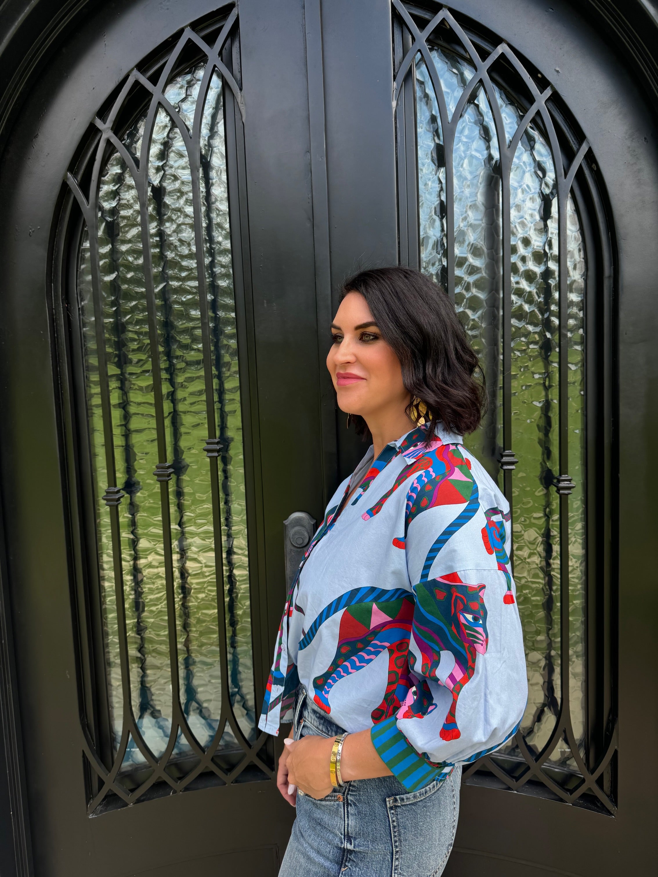 Our Experience a wild and colorful adventure with the Maude Elsa Top in Cheetah Mirage. Made from high-quality fabric, this top features a striking cheetah mirage print that is both vibrant and stylish. Perfect for any occasion, this top is sure to make a statement and elevate your wardrobe.