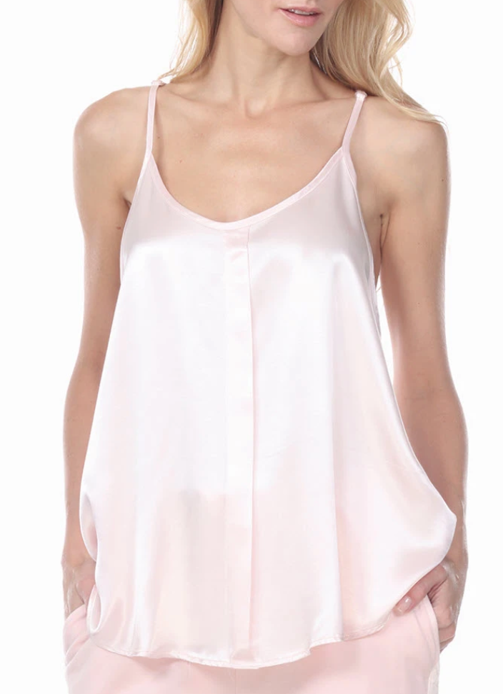 This Cami Has Adjustable Straps, With a Soft Subtle Pleat Running Down The Front. This Slight High-Low Shape Is Not Only Flattering, But Ultra Comfortable As Well! Absolutely The Cutest and Softest Thing You Will Ever Wear