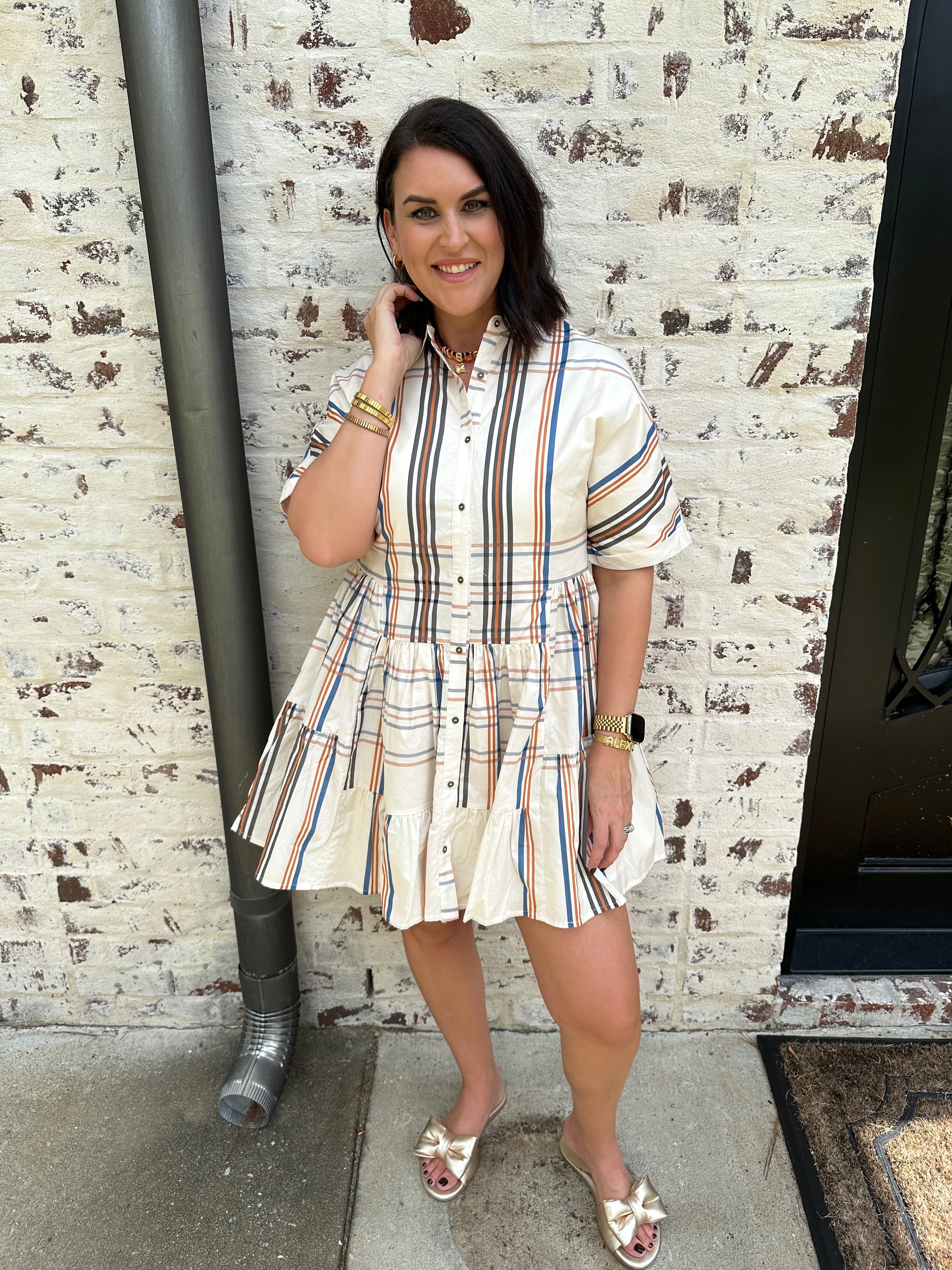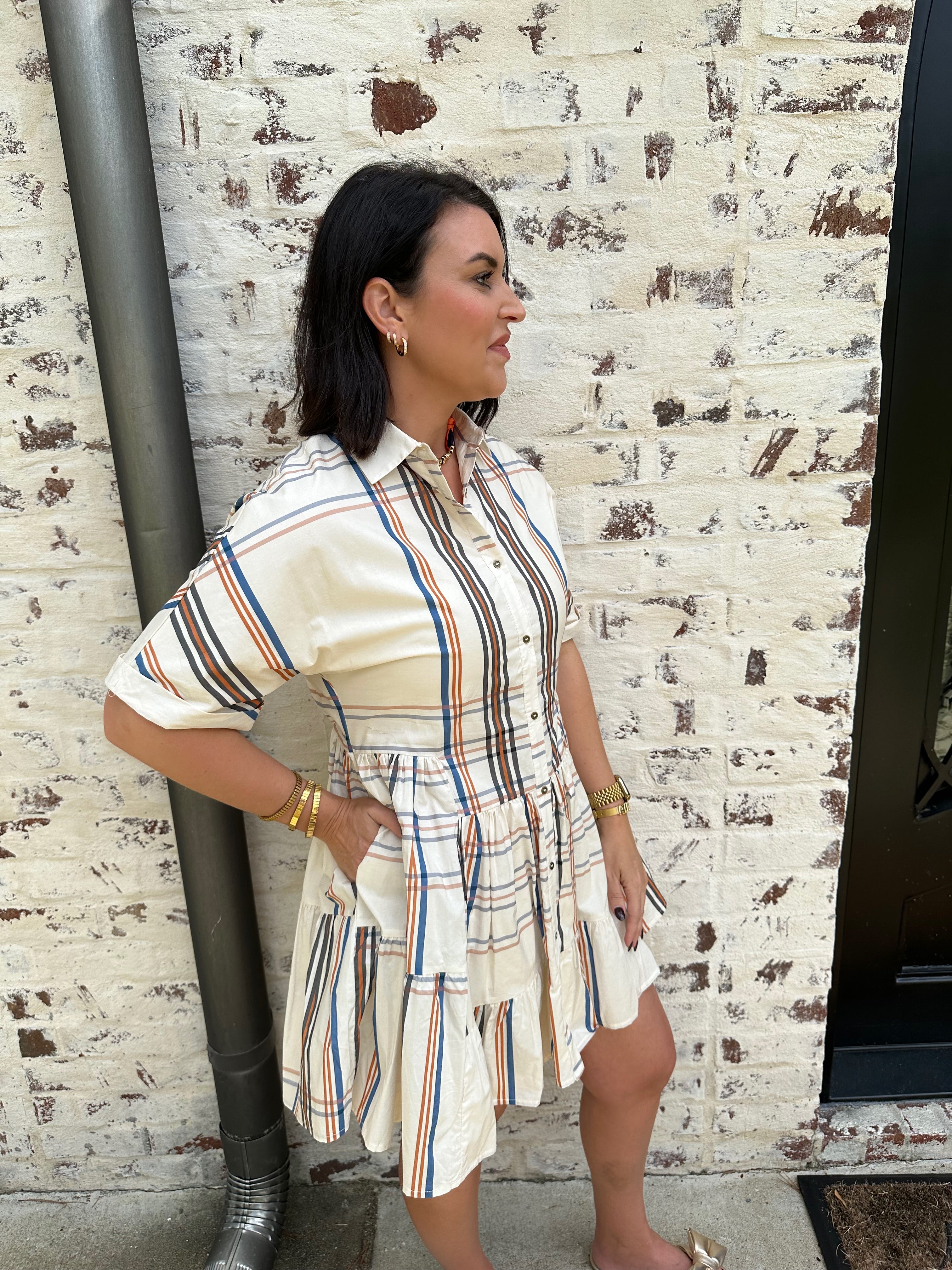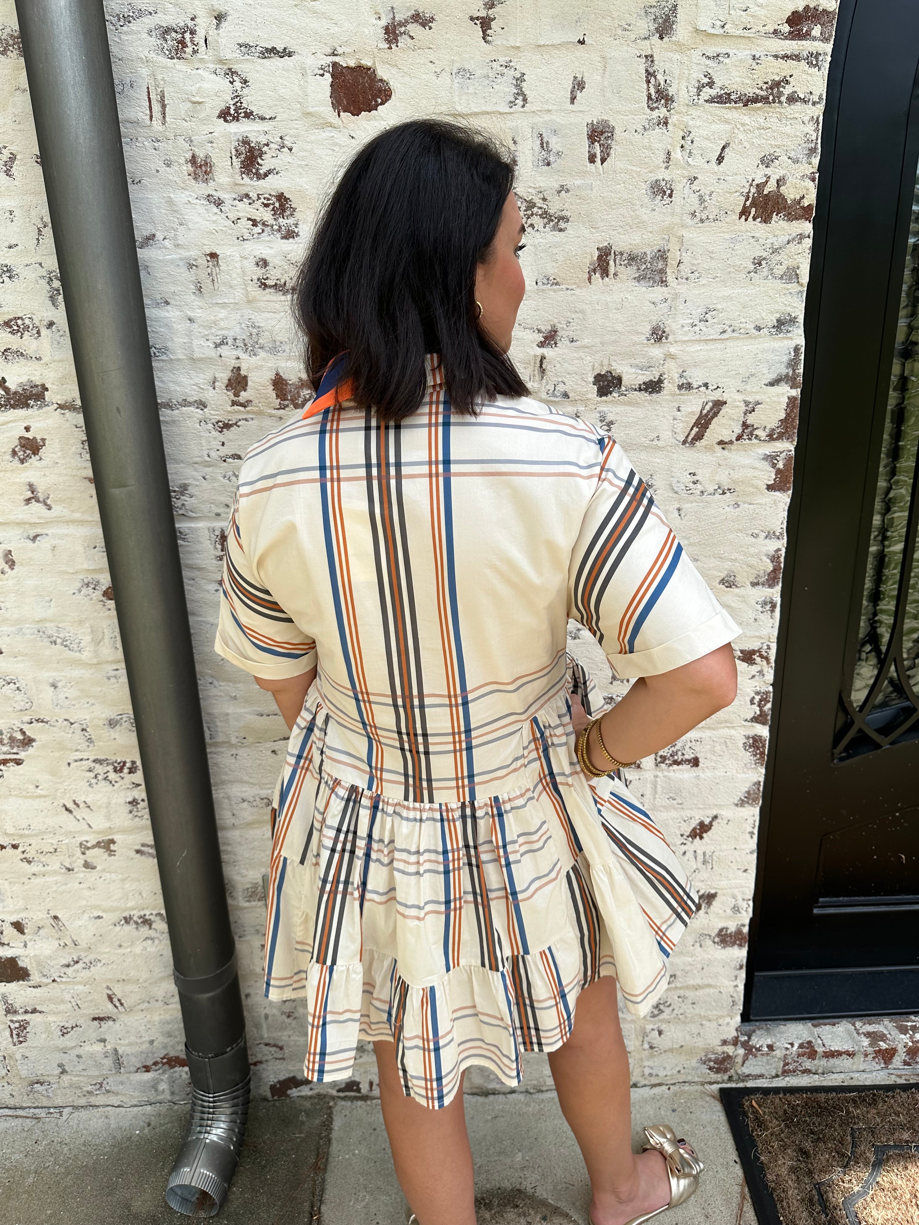 The Aubie Plaid Mini Shirt Dress in Ivory