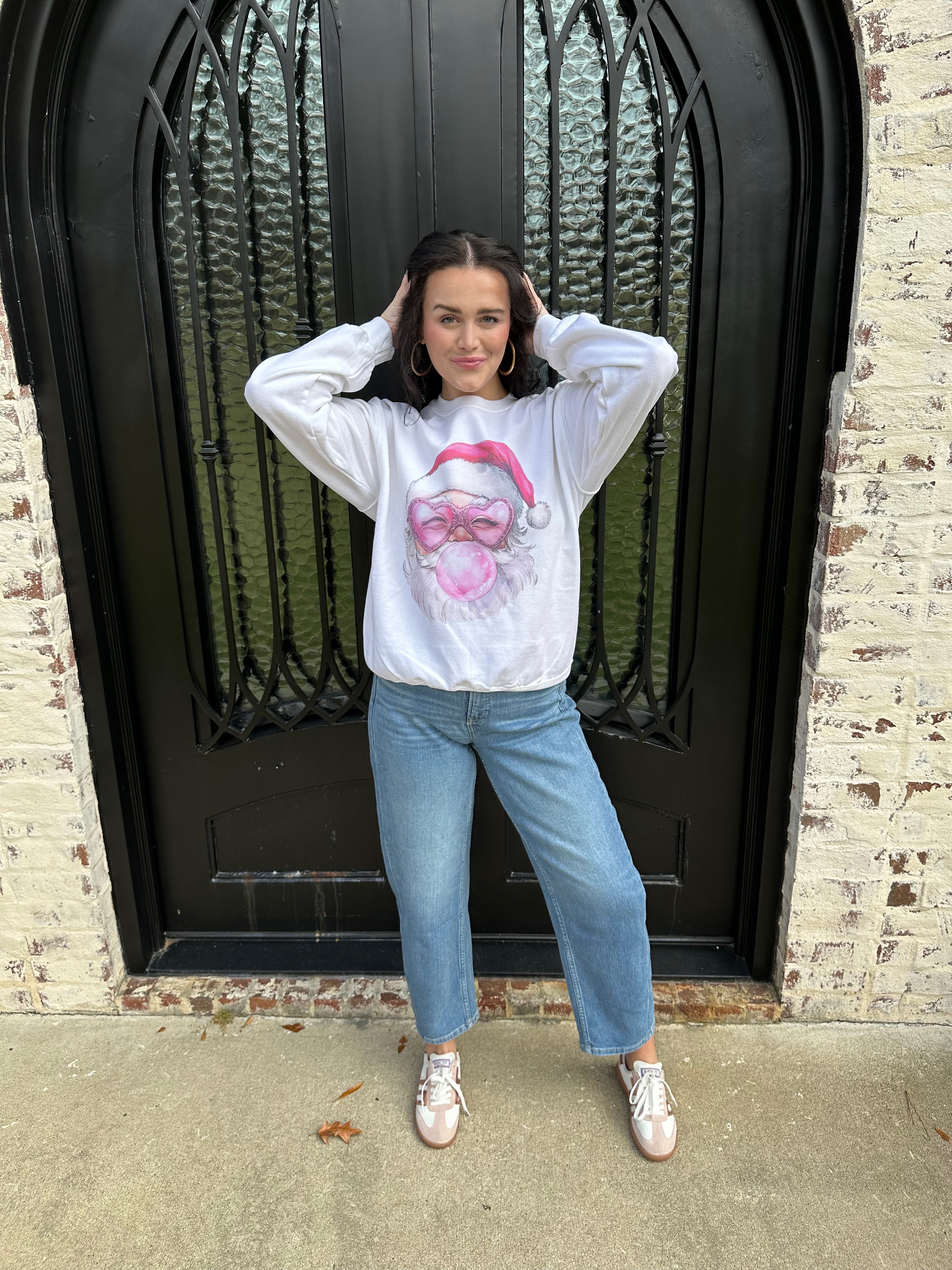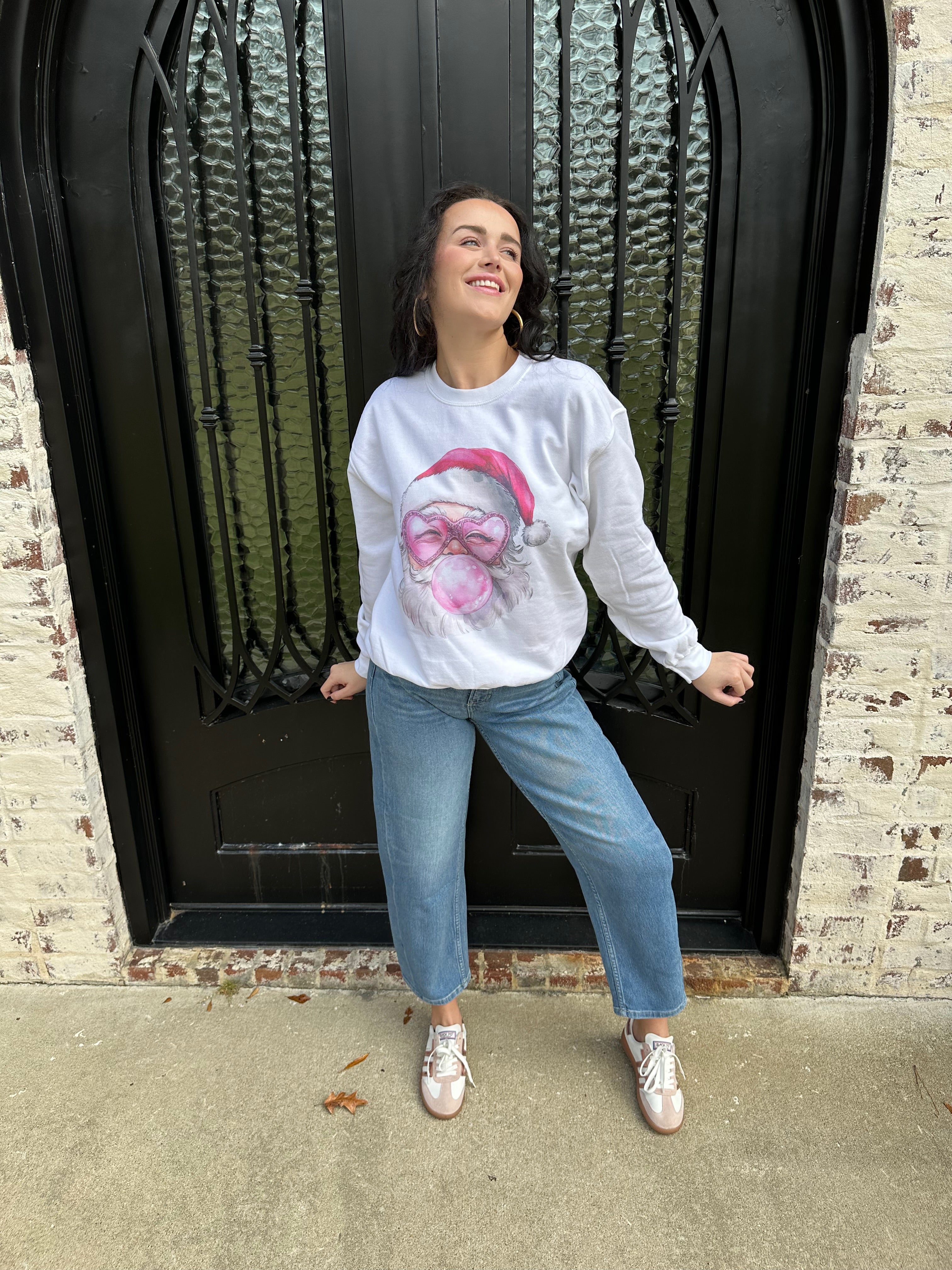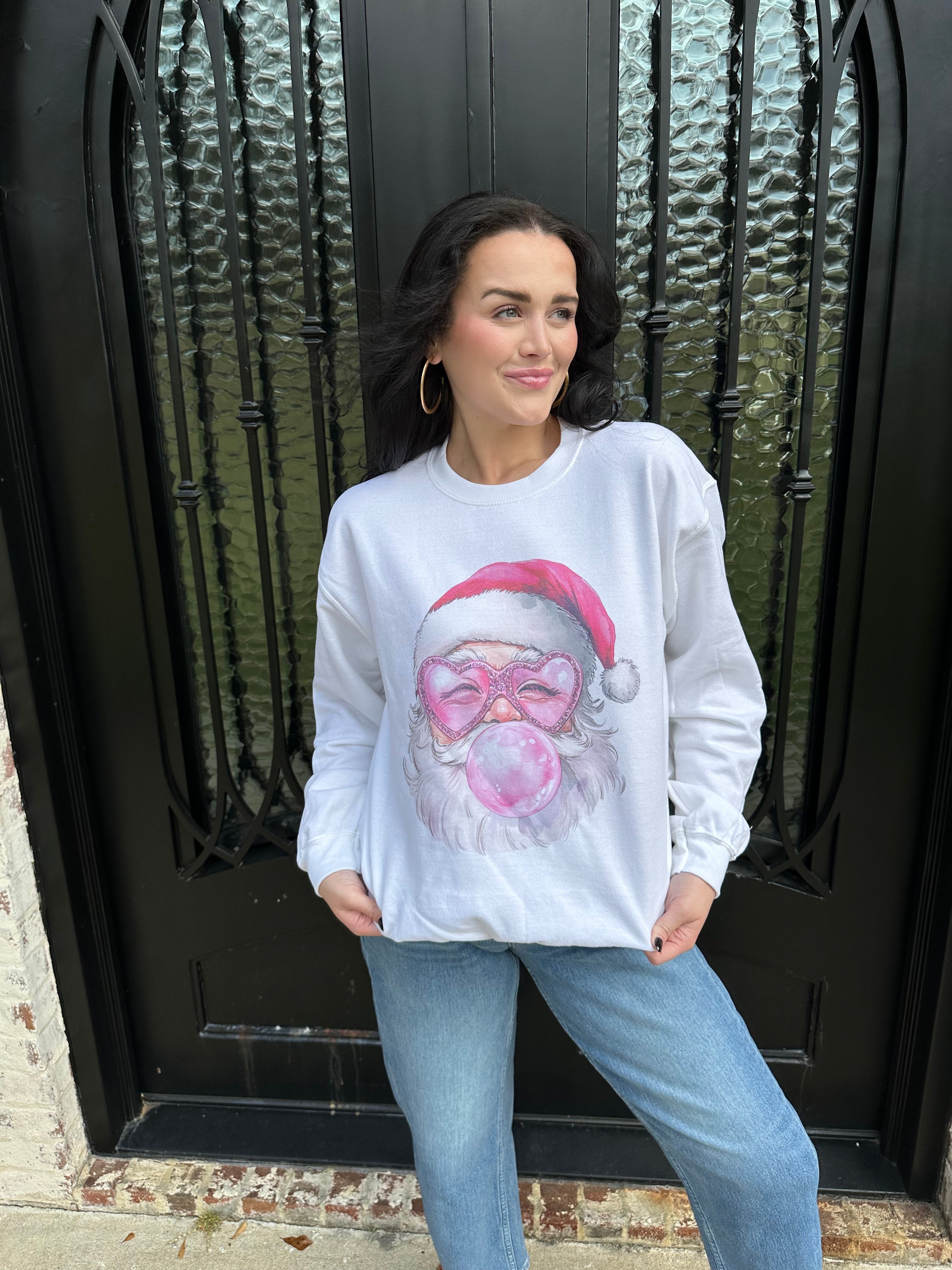 Vintage Santa Blowing Pink Bubble Gum Crewneck