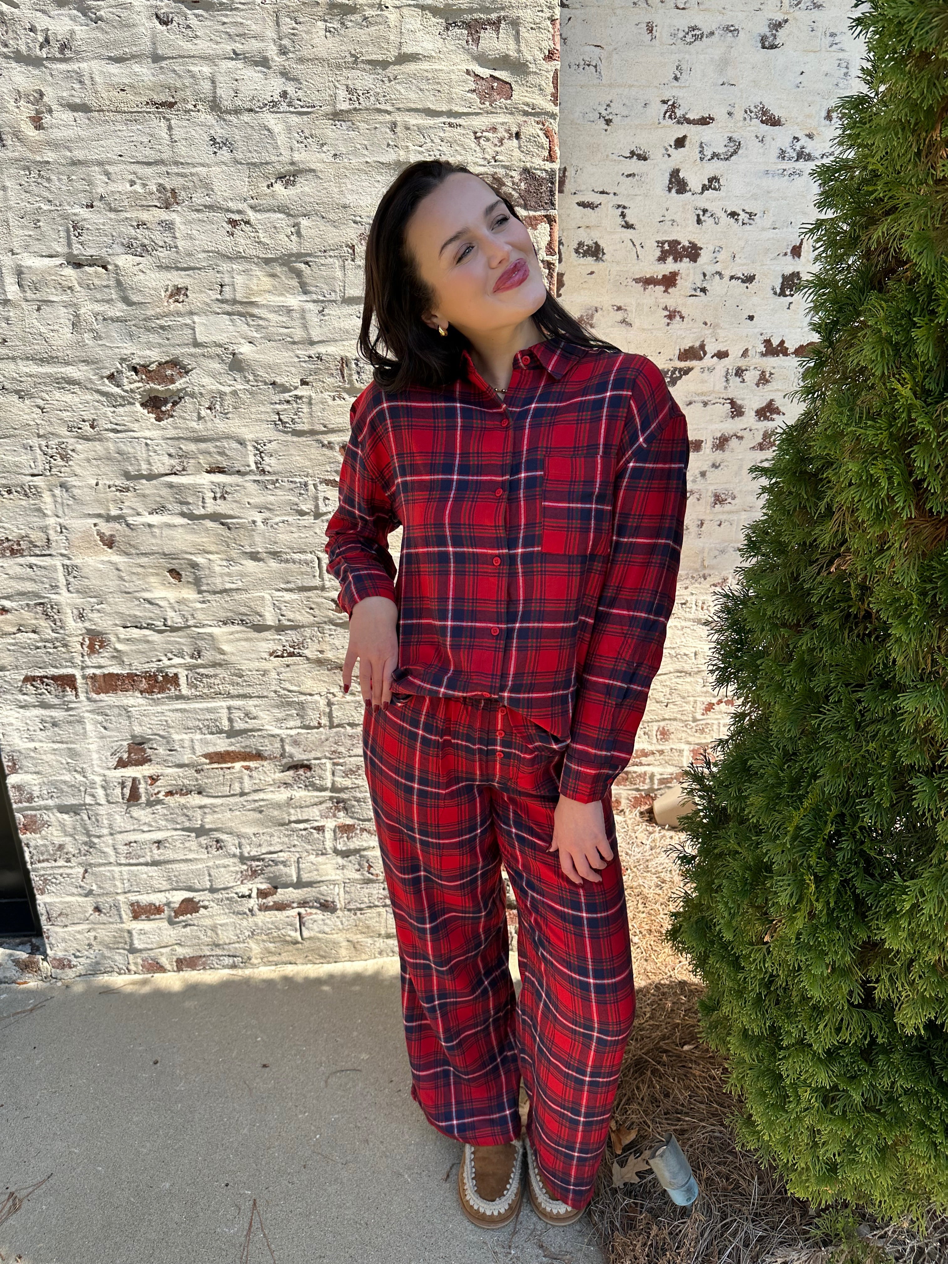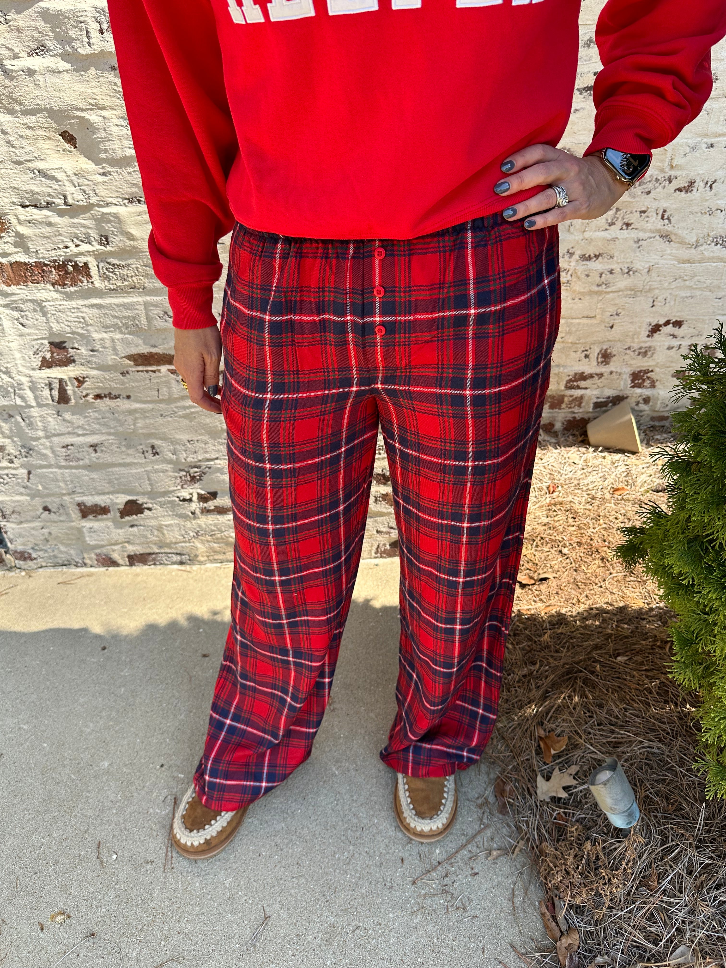 Experience ultimate comfort this holiday season with the Z Supply Hangout River Plaid Pajama Pants in Red. Crafted from ultra-soft fabric, these cozy pants are perfect for relaxing at home or festive gatherings. Pair them effortlessly with a holiday sweater from Z Supply or complete the look with the matching button-down top for a coordinated, stylish ensemble that keeps you warm and festive. Elevate your seasonal loungewear with this must-have plaid pattern designed to bring both comfort and holiday spirit to your wardrobe.