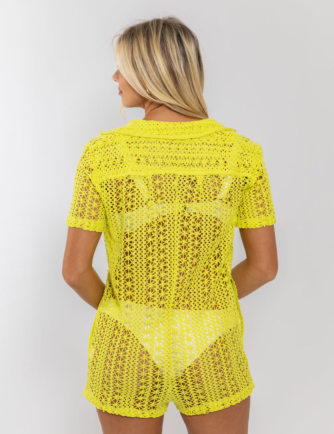 Karlie Crochet Romper Swim Coverup in lime green