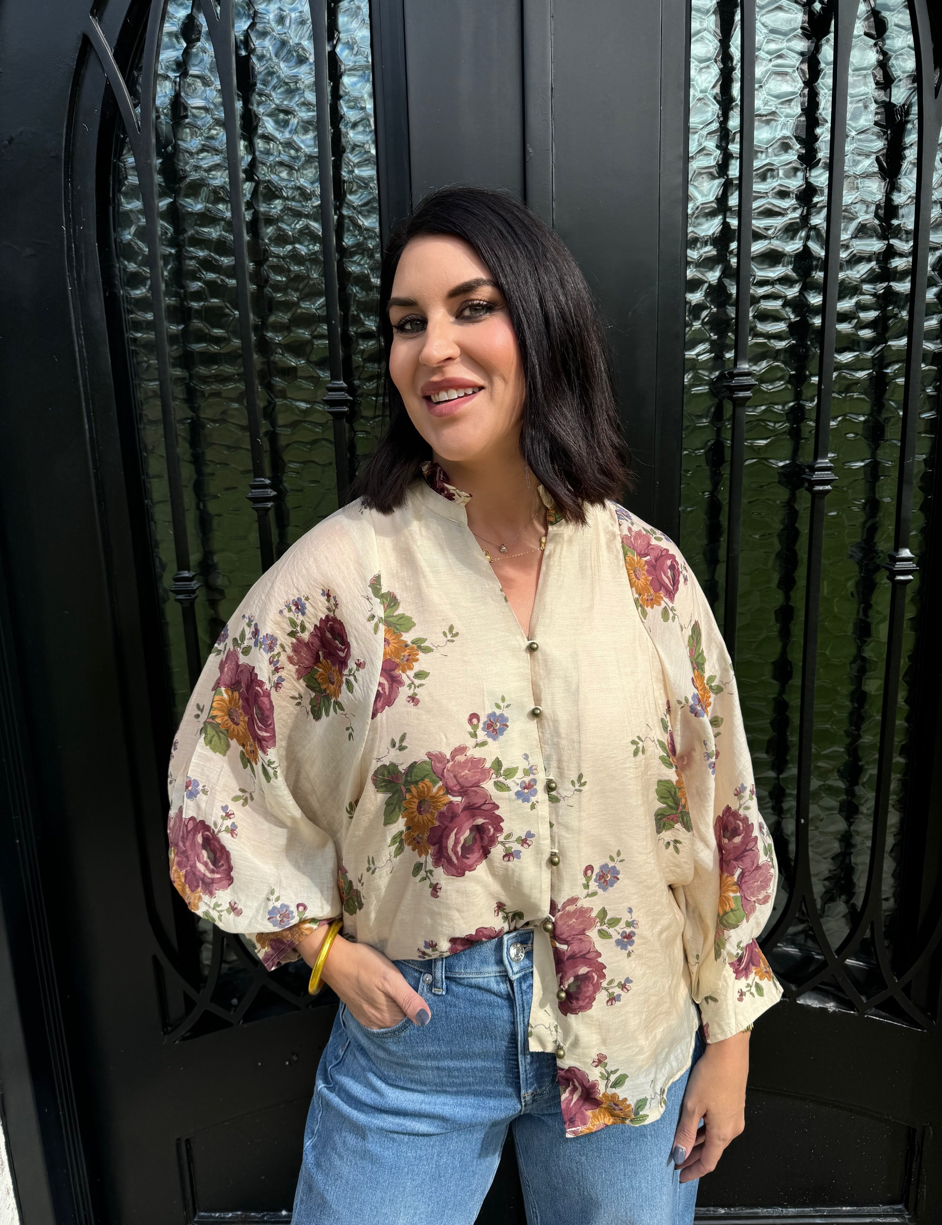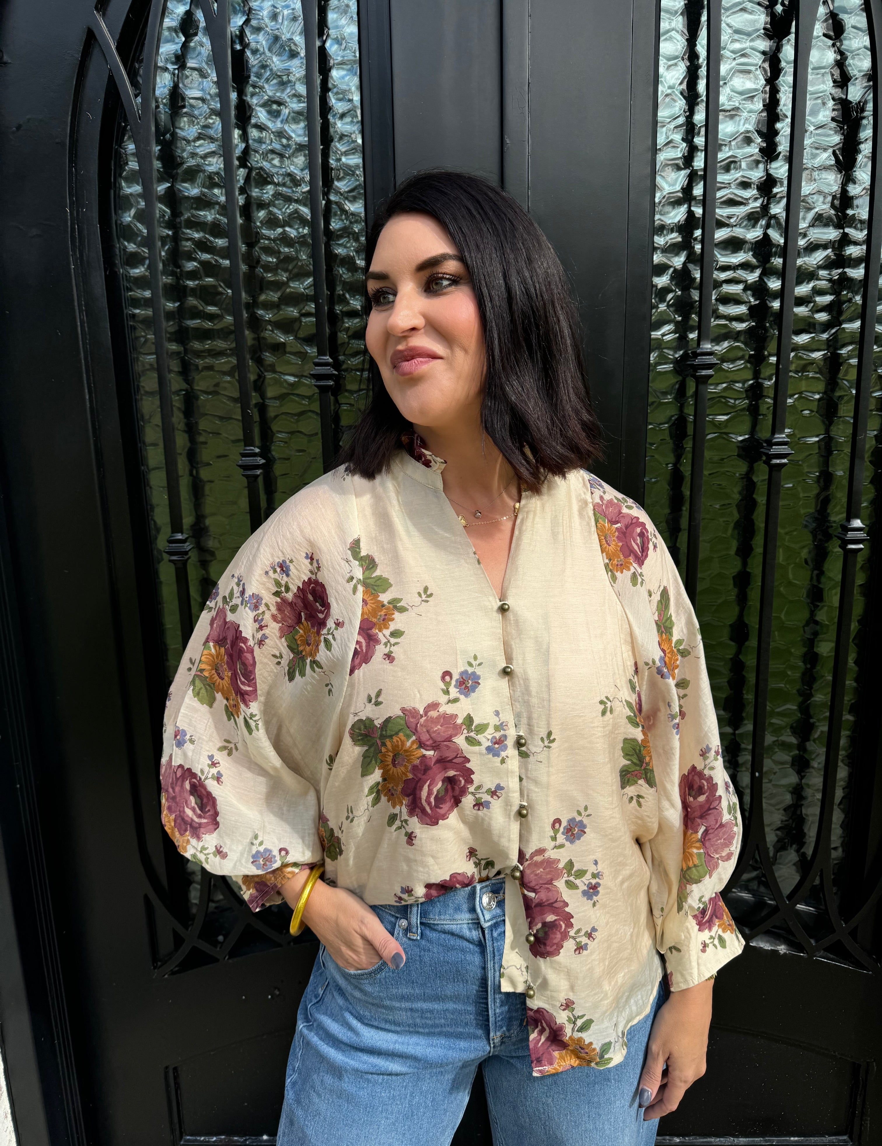 Lyndsey Floral Top in Ecru